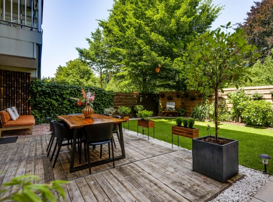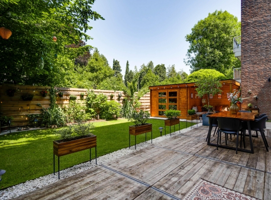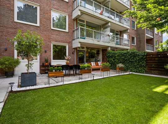 Gelijkvloers, geheel verbouwd appartement op de begane grond met een ruime tuin