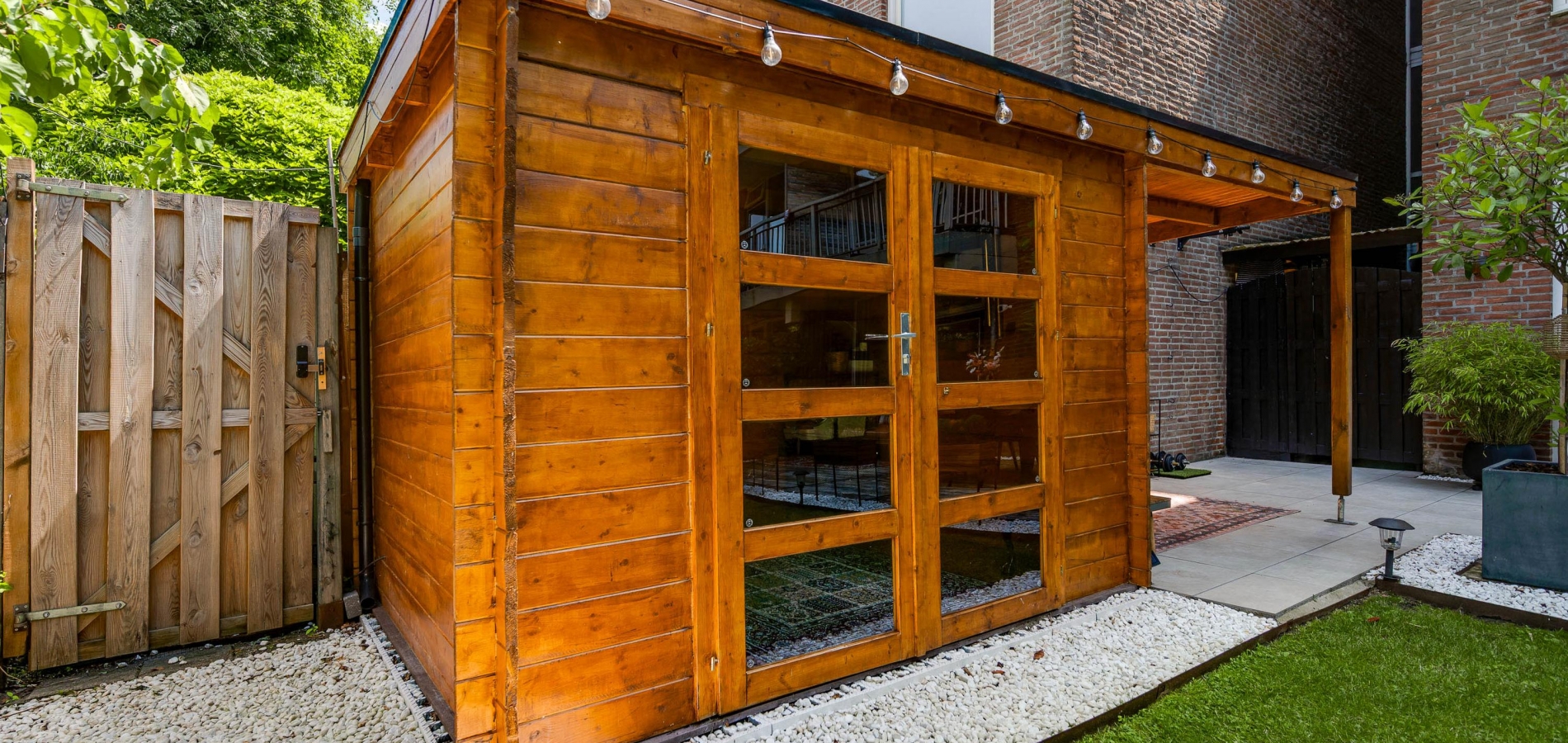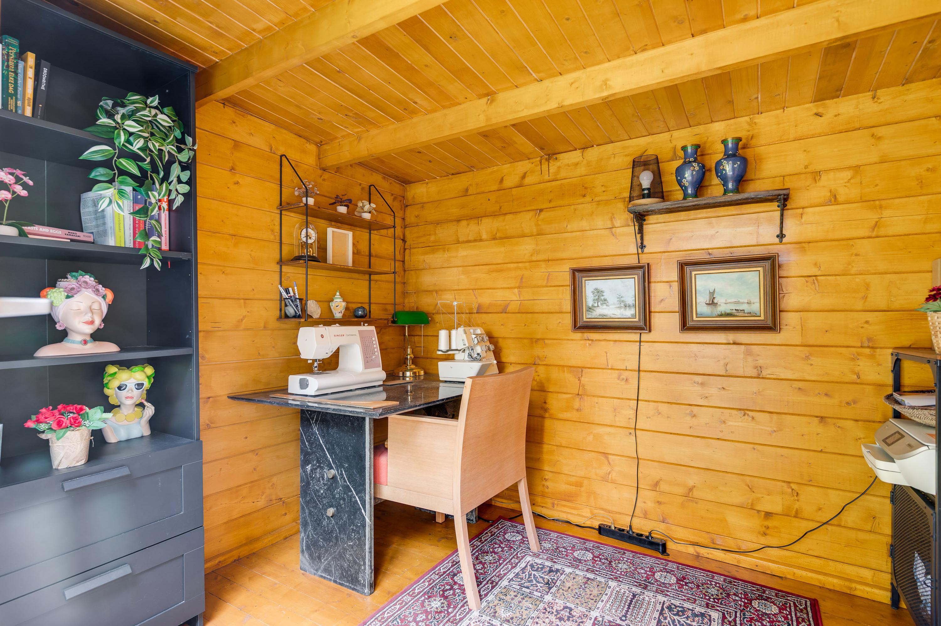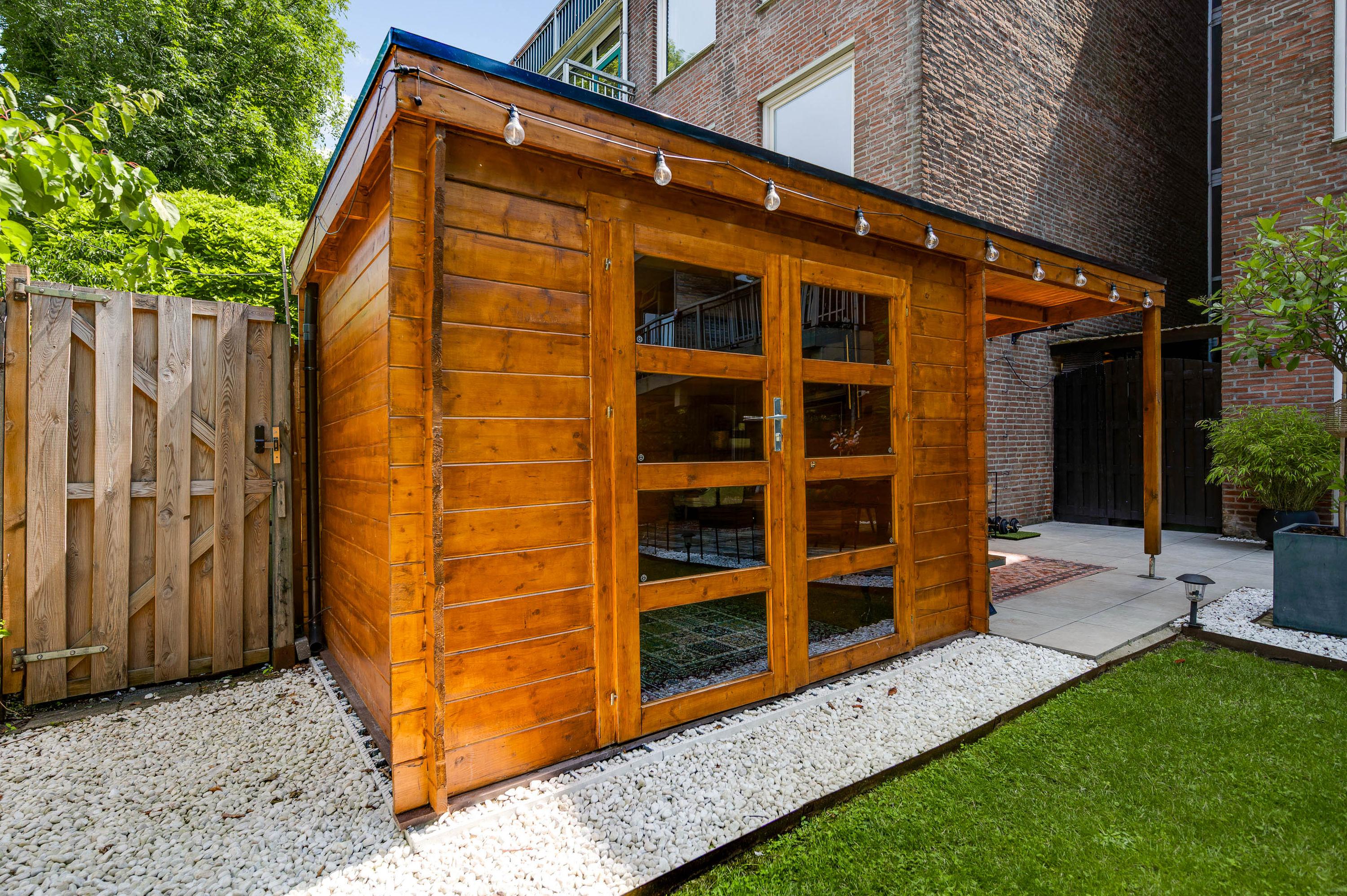 Vrijstaand tuinhuis (in gebruik als hobbyruimte) en een tweede, vanuit de tuin bereikbare berging