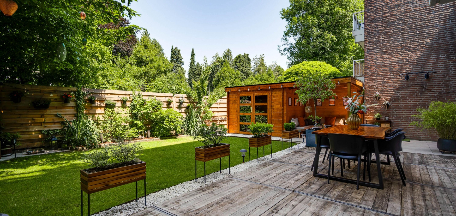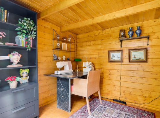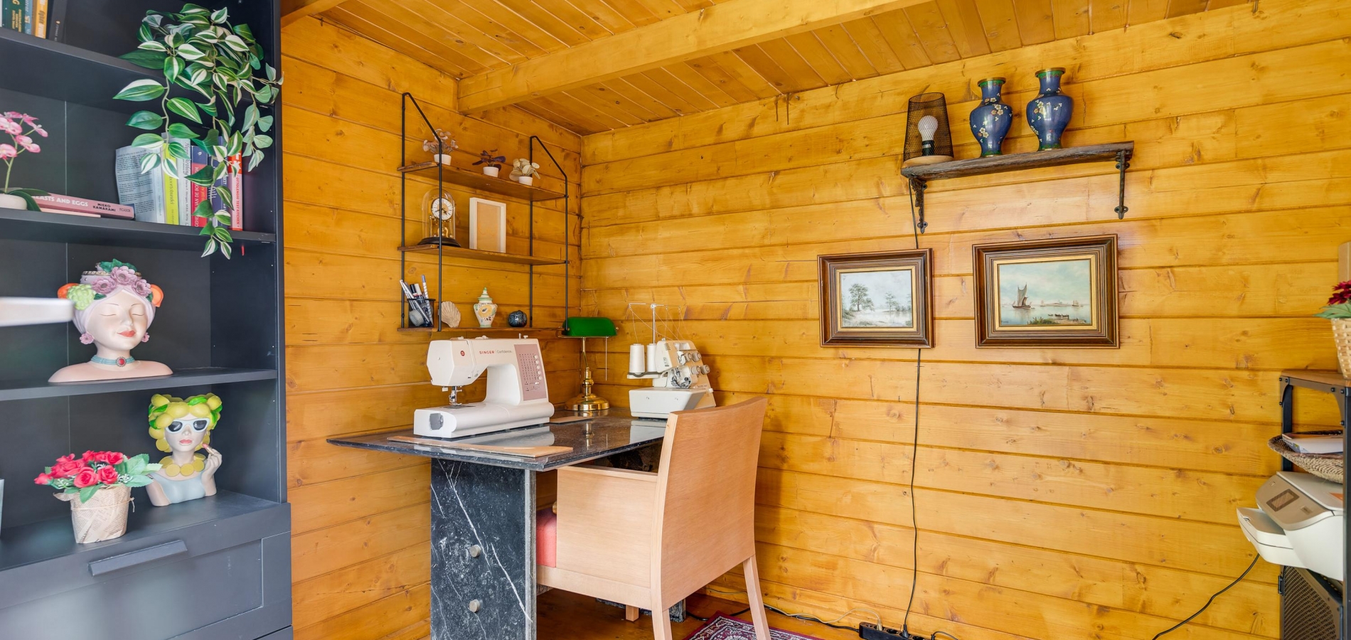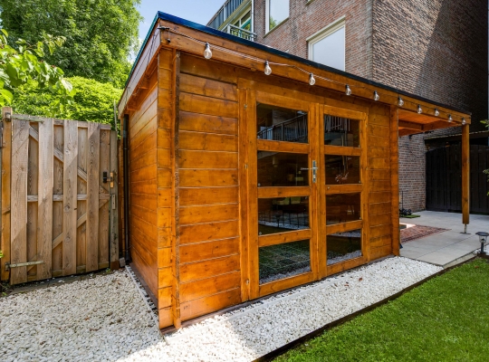 Vrijstaand tuinhuis (in gebruik als hobbyruimte) en een tweede, vanuit de tuin bereikbare berging