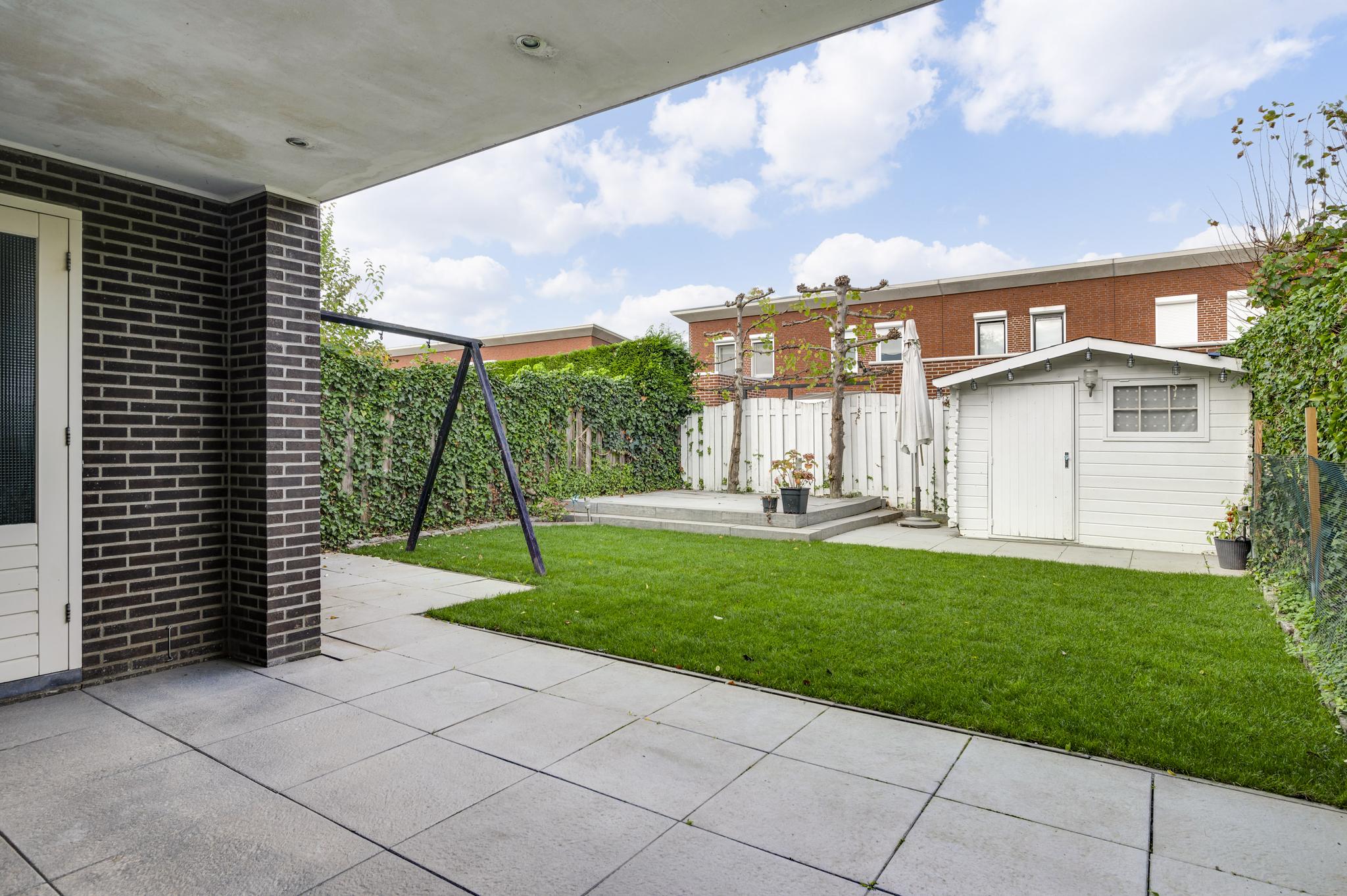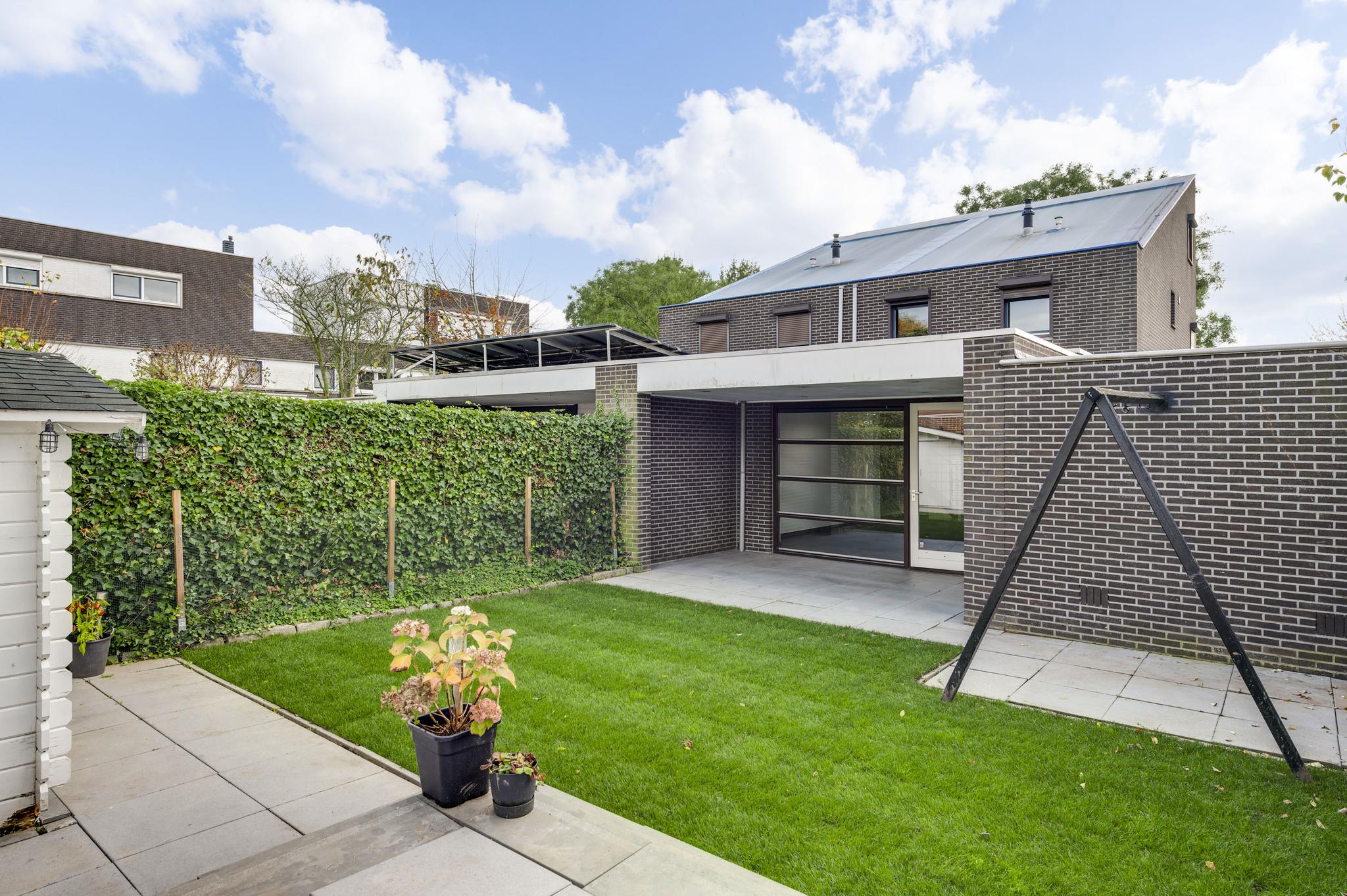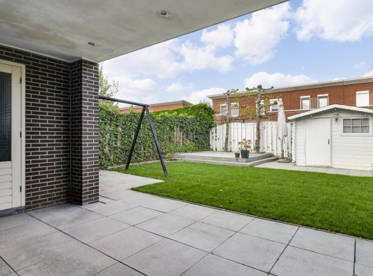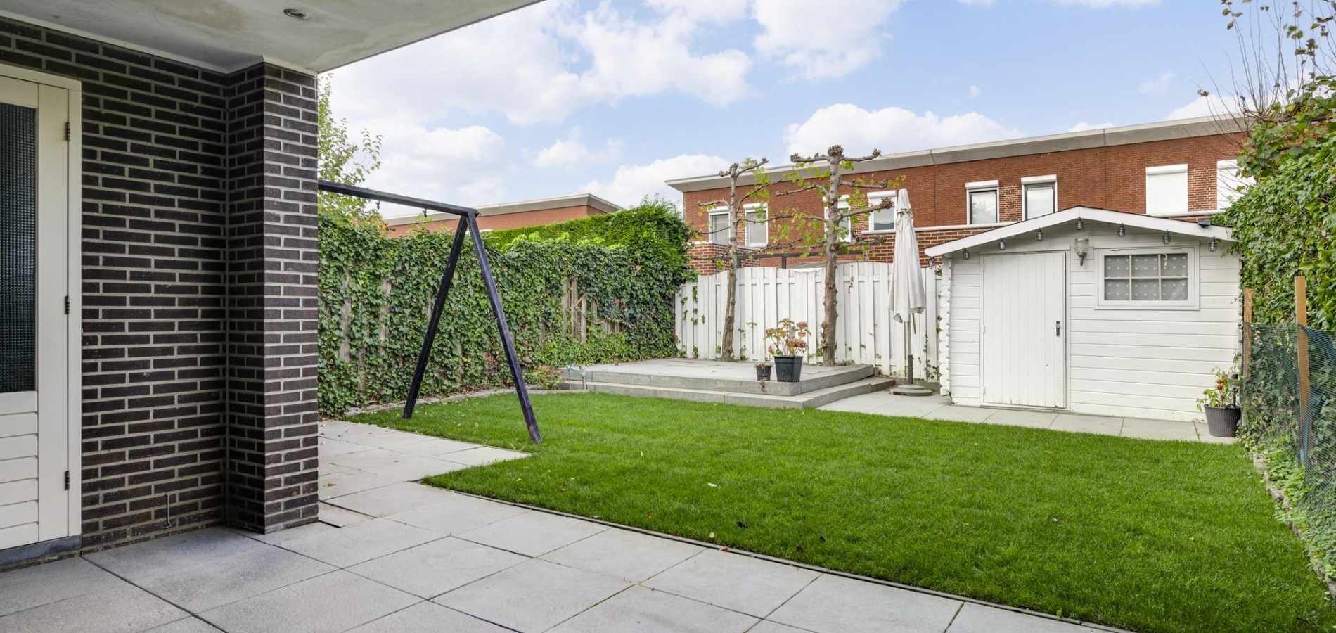 Blikvanger in de achtertuin is het overdekte terras van circa 5,09 x 2,77, voorzien van inbouwverlichting. De rest van de tuin is ingedeeld met een grasveld, een tweede terras met een goede zonligging en een houten berging (circa 2,72 x 1,75).