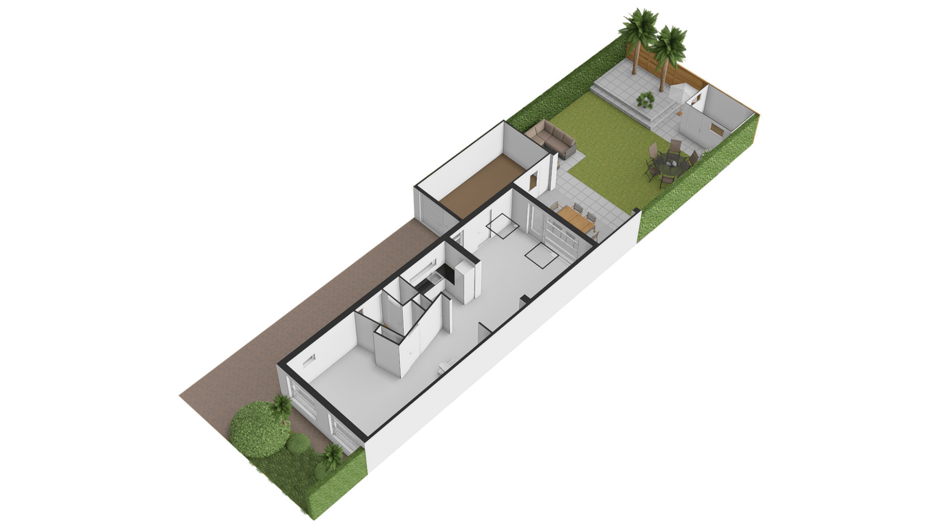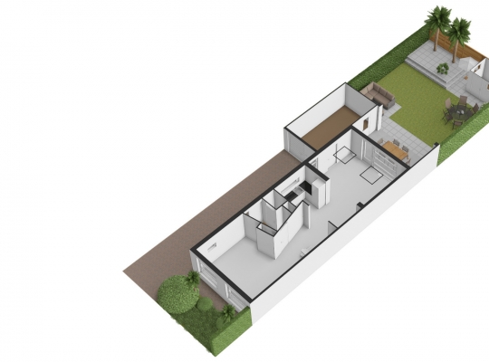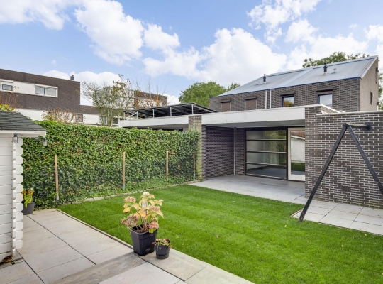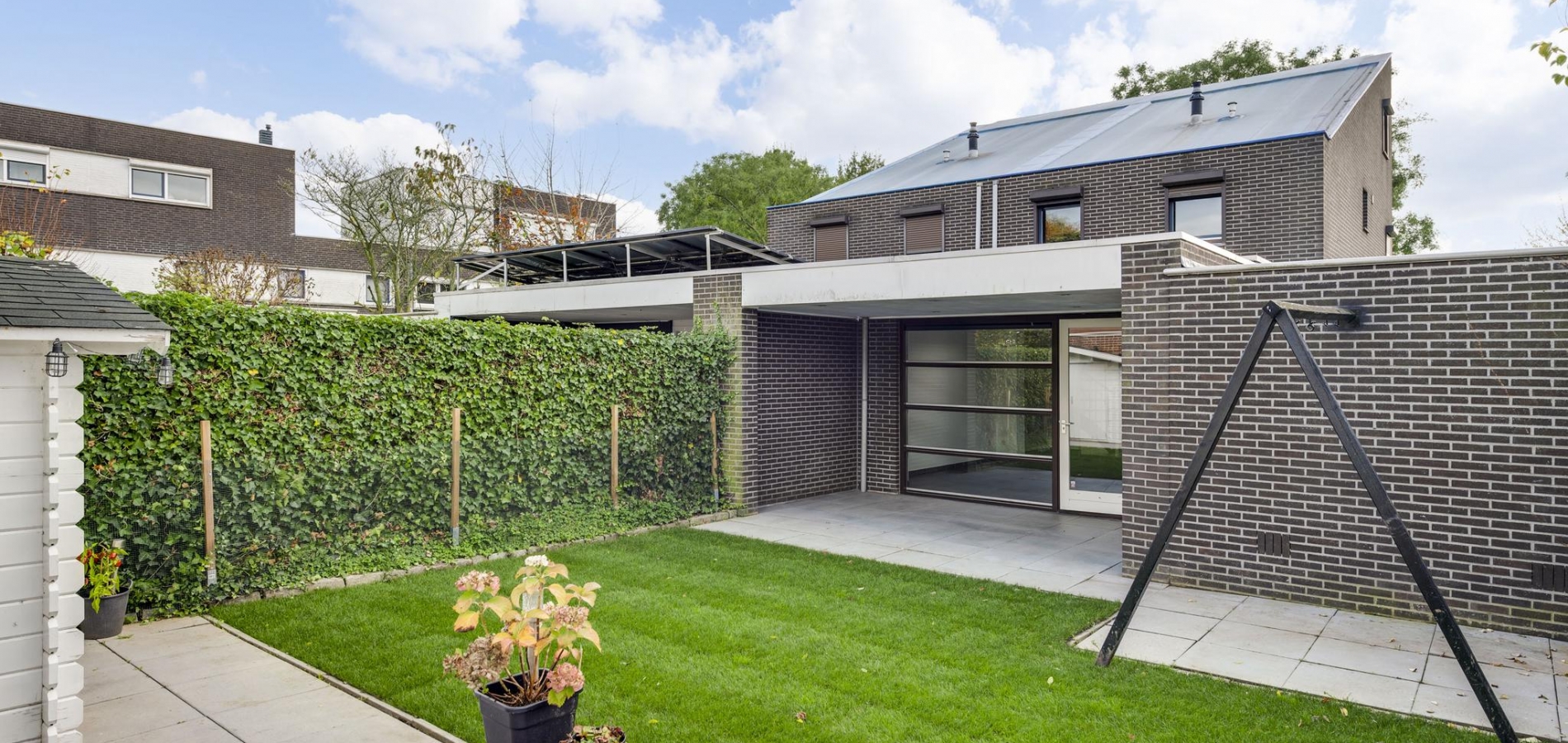Blikvanger in de achtertuin is het overdekte terras van circa 5,09 x 2,77, voorzien van inbouwverlichting. De rest van de tuin is ingedeeld met een grasveld, een tweede terras met een goede zonligging en een houten berging (circa 2,72 x 1,75).