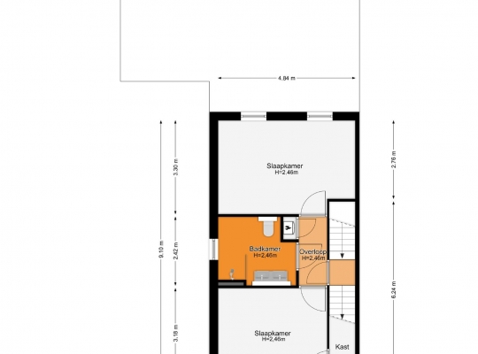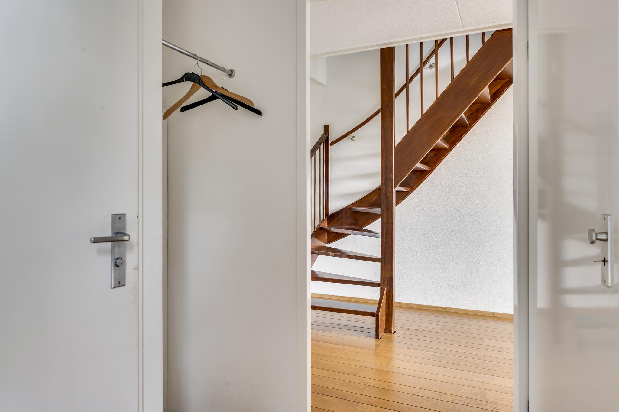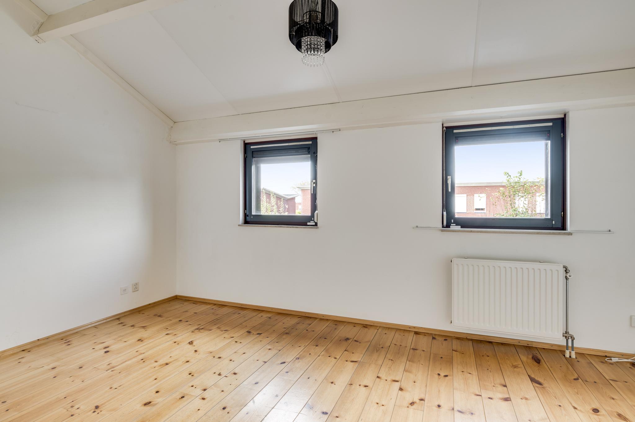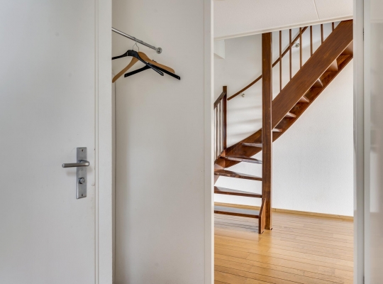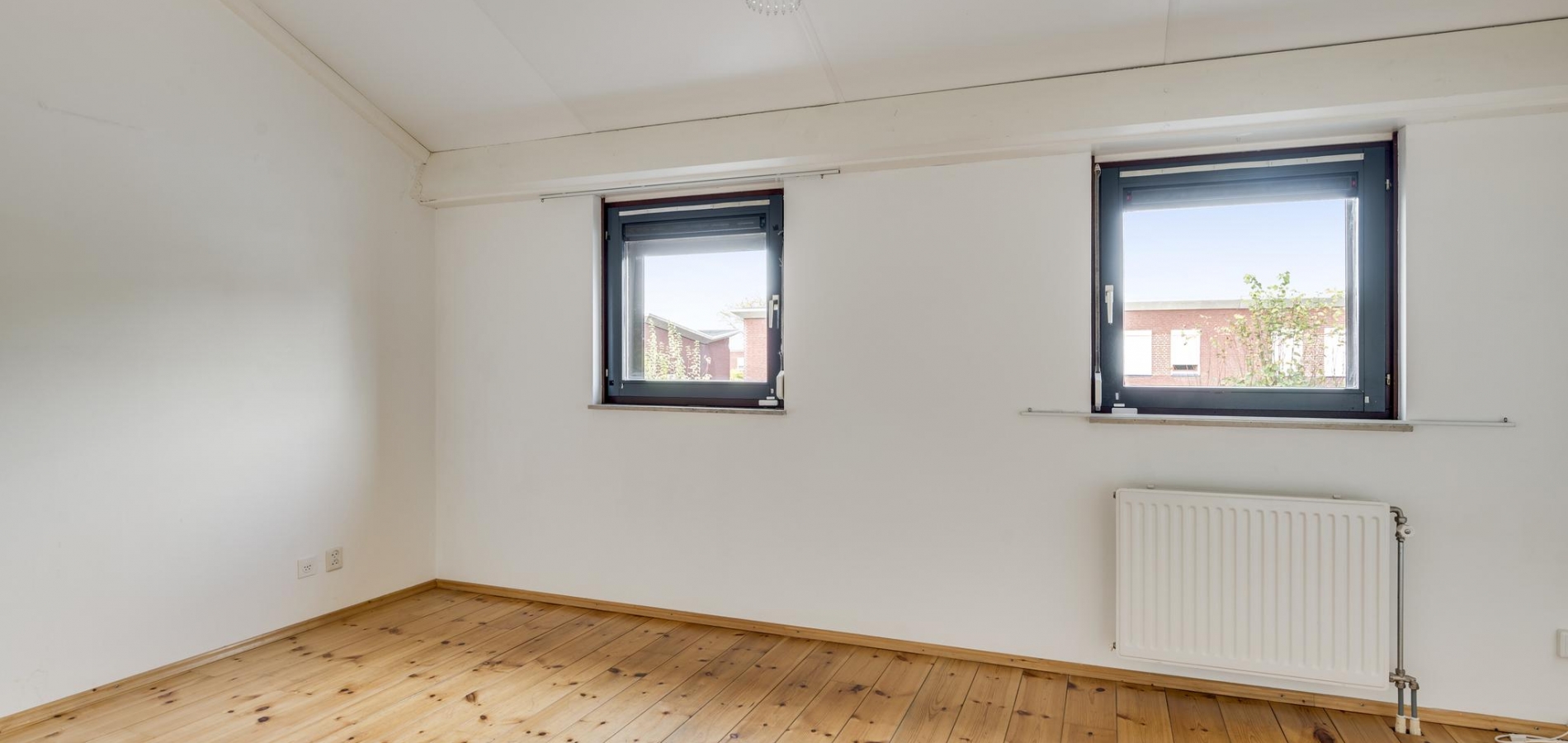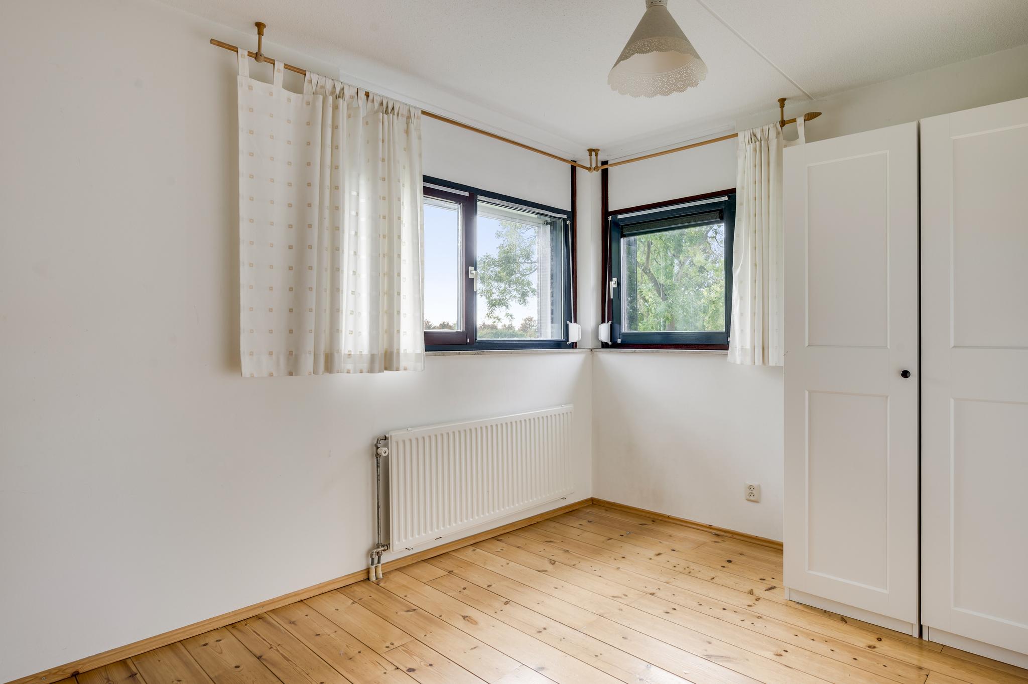 Een vaste trap geeft toegang tot een portaal, met aansluitend slaapkamer III (circa 4,19 x 3,85). Ook in deze kamer ligt een houten vloer en het schuine plafond met hoge nok versterkt het gevoel van ruimte. Als dit een kinderkamer wordt, dan is de hoogte perfect voor een hoogslaper. In het schuine dakvlak is een praktische berging van ruim 1.40 meter diep.