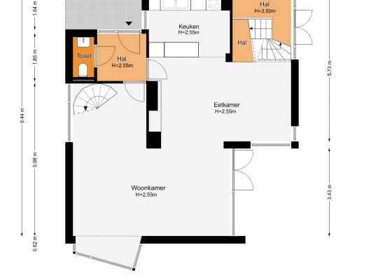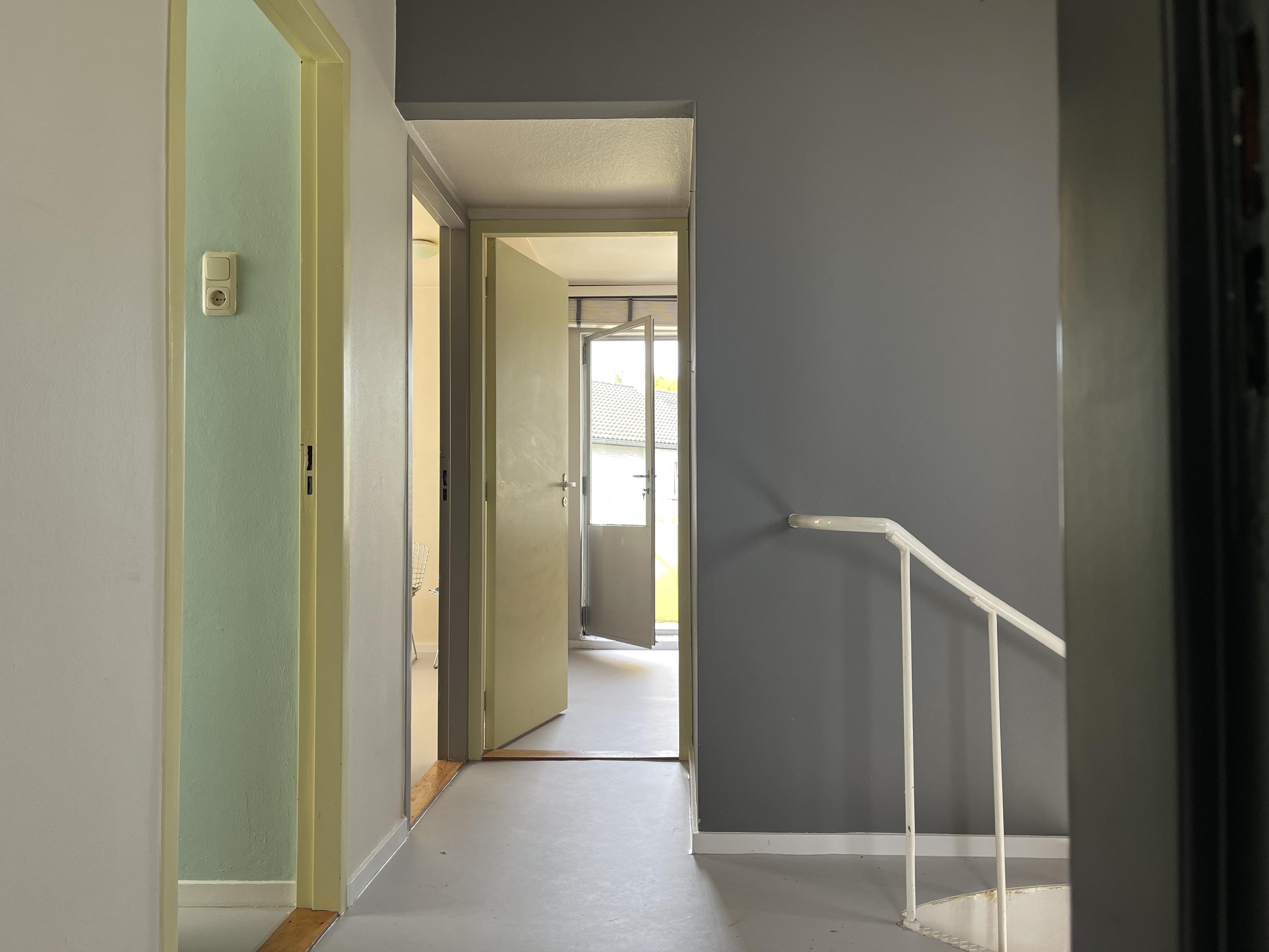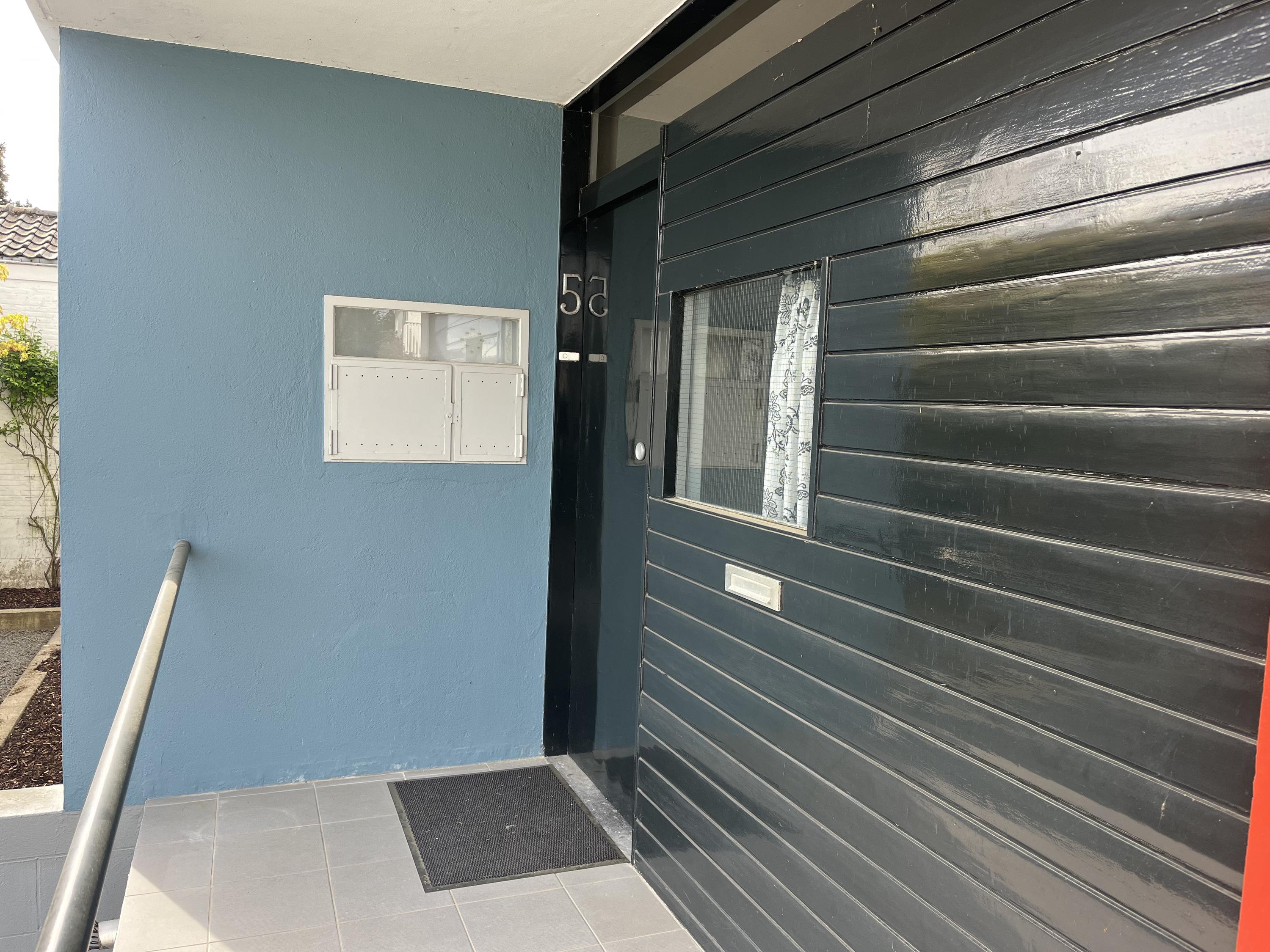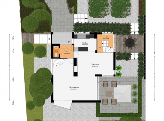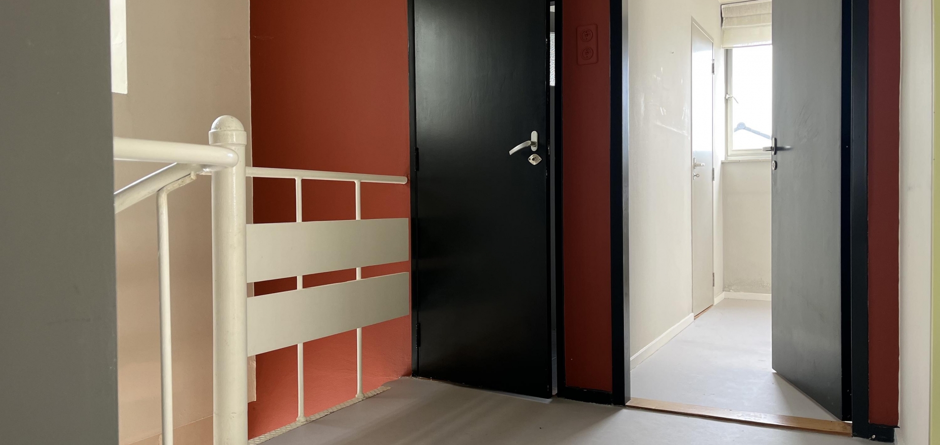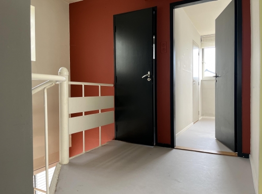Via de monumentale buitentrap bereikt u de fraaie overdekte entree. Achter de voordeur geeft de hal toegang tot de woonkamer, de keuken en een moderne toiletruimte met wandcloset en fonteintje. In de hal vindt u eveneens de meterkast.