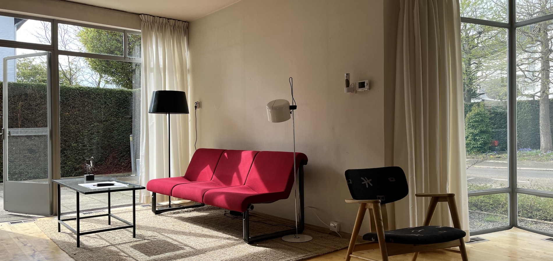 Deze villa is in 1955 gebouwd. De oorspronkelijke kenmerken van het ontwerp van architect Claessens, waaronder het kleurgebruik aan de binnen- en buitenzijde, zijn gelukkig behouden. Via de grote authentieke raampartijen wordt de villa overgoten met natuurlijk licht in het verrassend ruimtelijke interieur met die speelse indeling. De windrichtingen en het verloop van het zonlicht zijn als uitgangspunten genomen voor de indeling van de gevels.