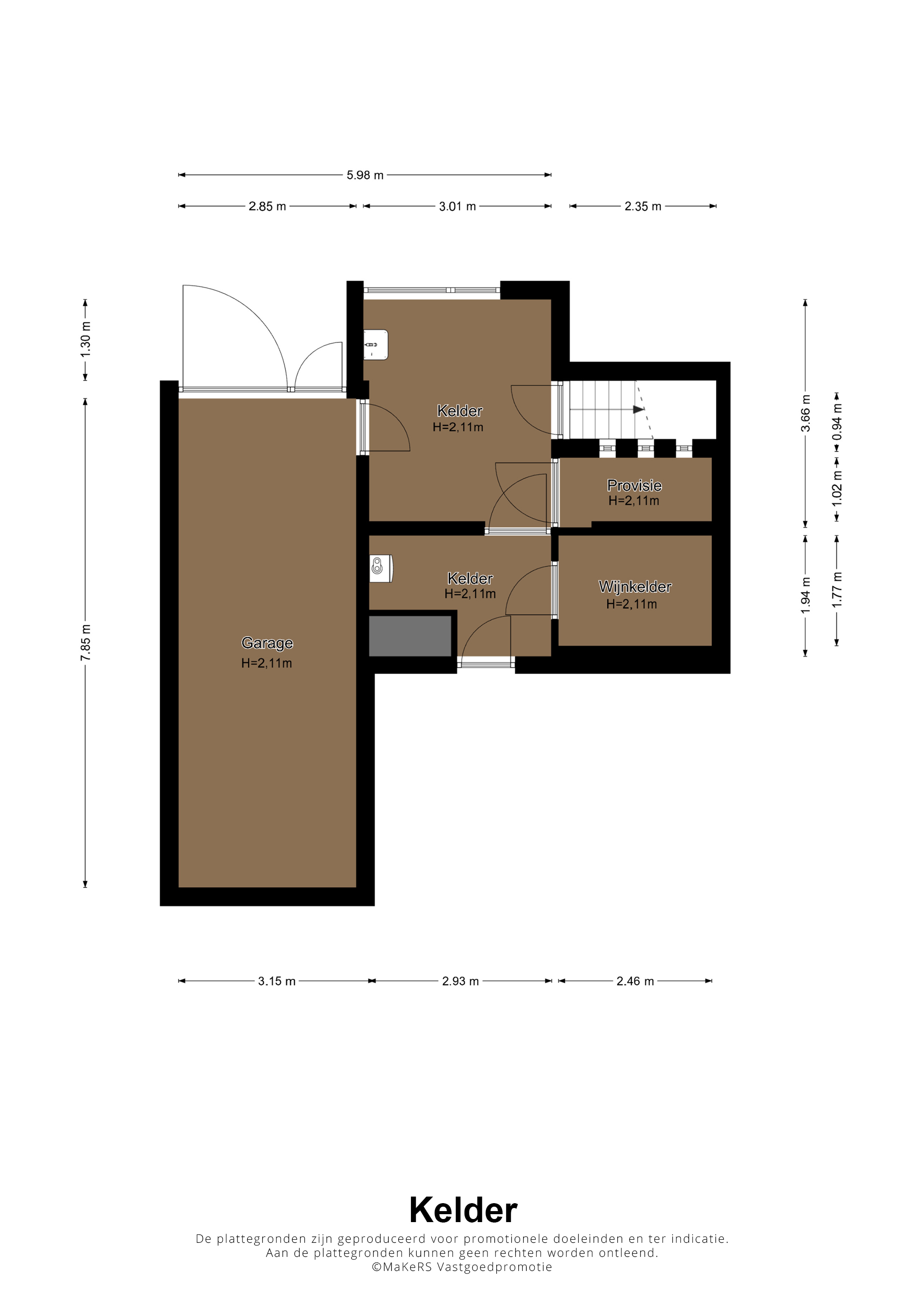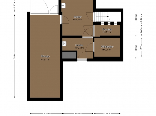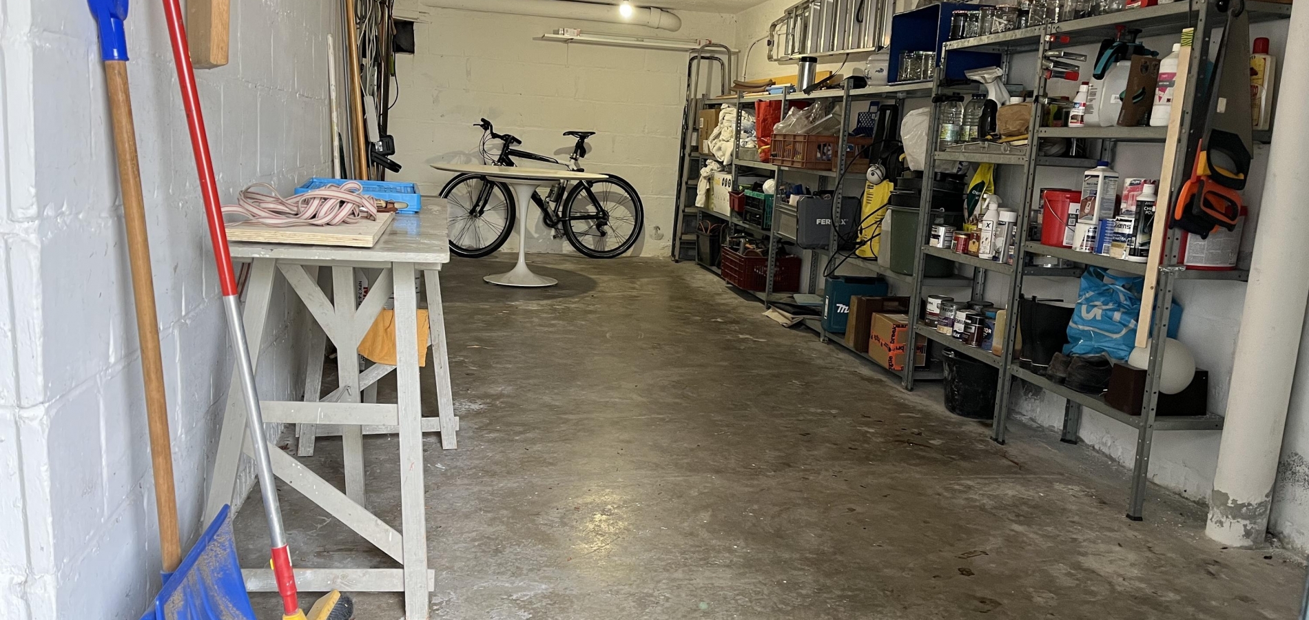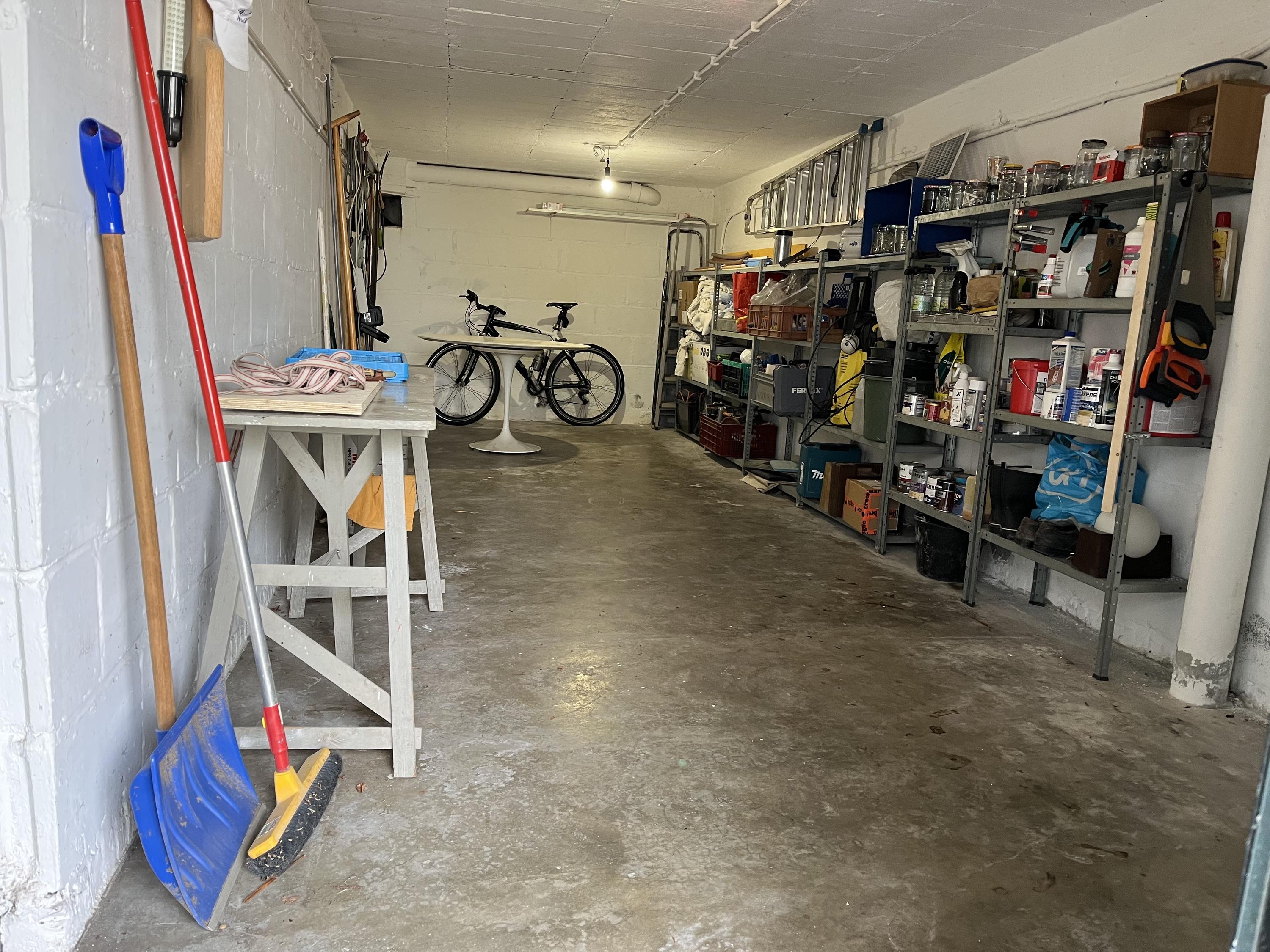 De grootste ruimte in het souterrain is de garage van 785 x 285 cm waar eventueel een extra werkruimte/slaapkamer gerealiseerd zou kunnen worden. Verder is er een bijkeuken van 366 x 301 cm met de geiser (huur Volta), een grote stortbak met aanrecht, de aansluiting voor wasmachine en droger en uitzicht op de tuin. Ook is er een provisieruimte 235 x 102 cm, een wijnkelder 235 x 177 cm en een berging 293 x 194 cm met de opstelling van de installatie voor de luchtverwarming (huur Volta) en de toegang tot de ruime kruipruimte die voor opslag kan worden gebruikt. De garagepoort beschikt over een loopdeur waarmee een tweede toegang tot het woonhuis via het souterrain is verzekerd.