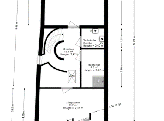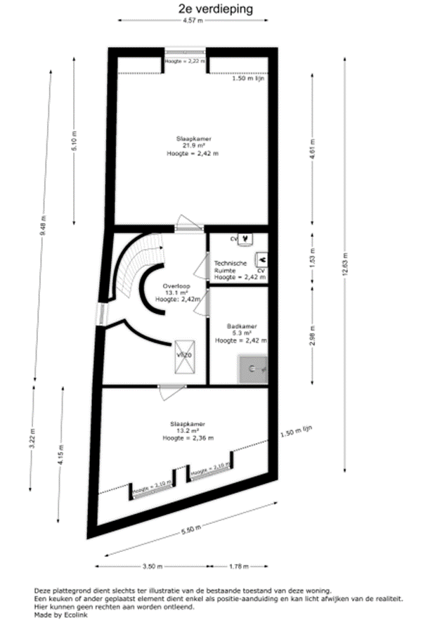 Via een eikenhouten trap is de tweede verdieping te bereiken. De overloop geeft toegang tot twee slaapkamers, een tweede badkamer en een technische ruimte. Slaapkamer II (circa 22 m²) bevindt zich aan de voorzijde en heeft een dakkapel. Slaapkamer III (circa 13 m²) ligt eveneens op deze verdieping en beschikt ook over een dakkapel. De tweede badkamer (circa 5 m²) is voorzien van een inloopdouche met rainshower, een toilet, een wastafelmeubel en een handdoekradiator. In de technische ruimte bevinden zich de aansluitingen voor witgoed, de cv-installatie en de mechanische ventilatie.