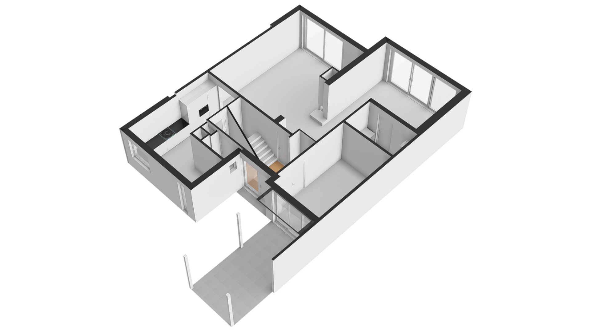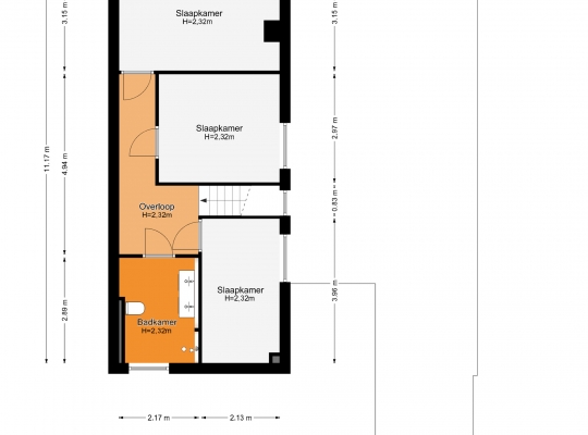Drie slaapkamers en een badkamer op de eerste verdieping