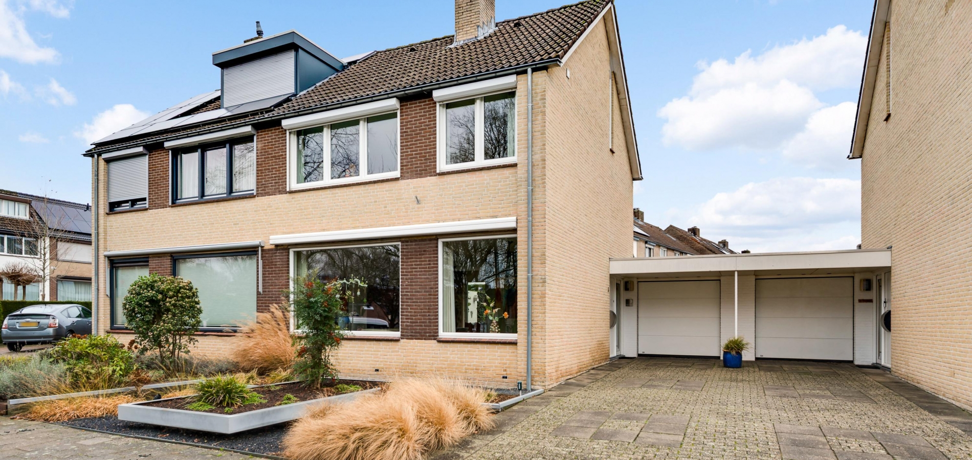 Garage en oprit met overkapping