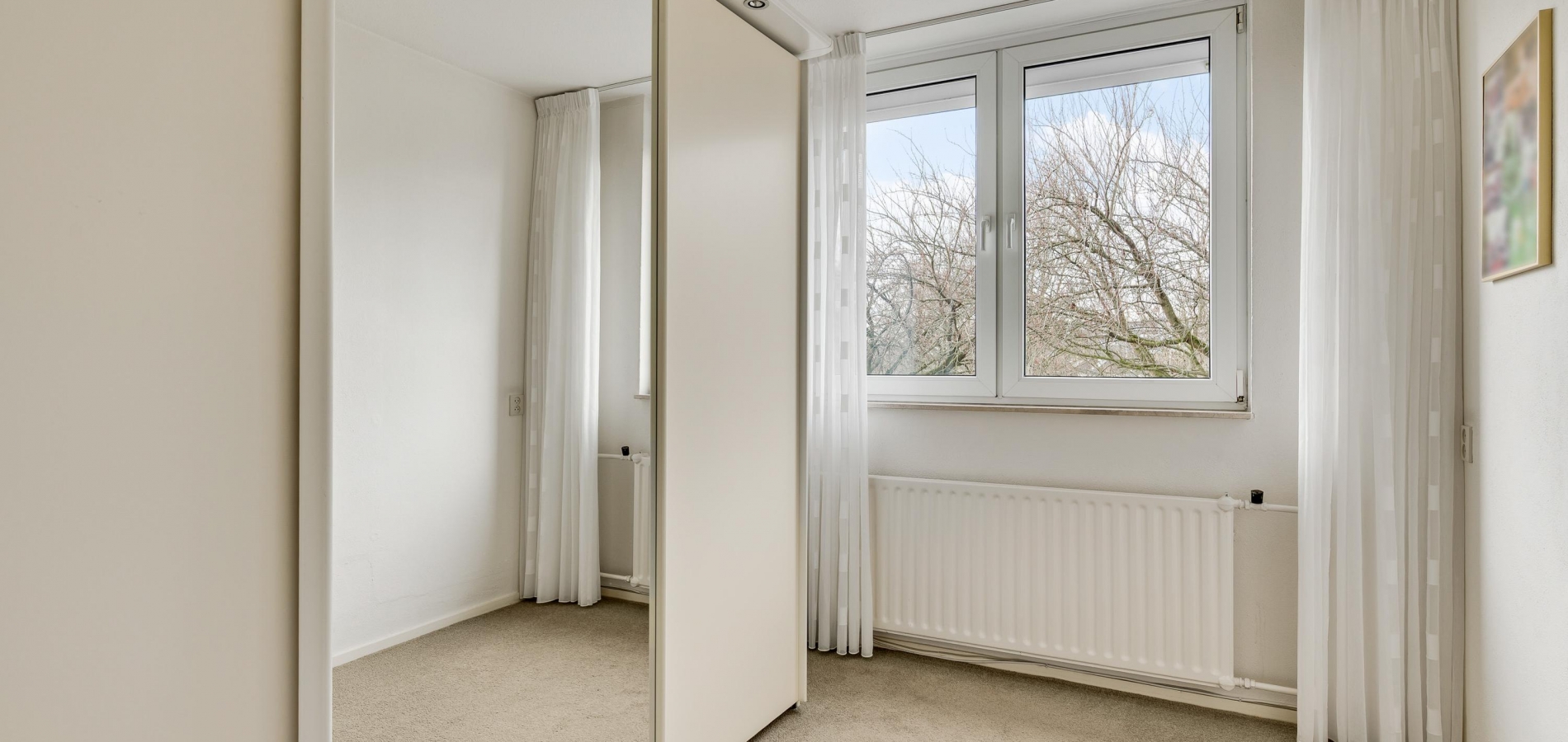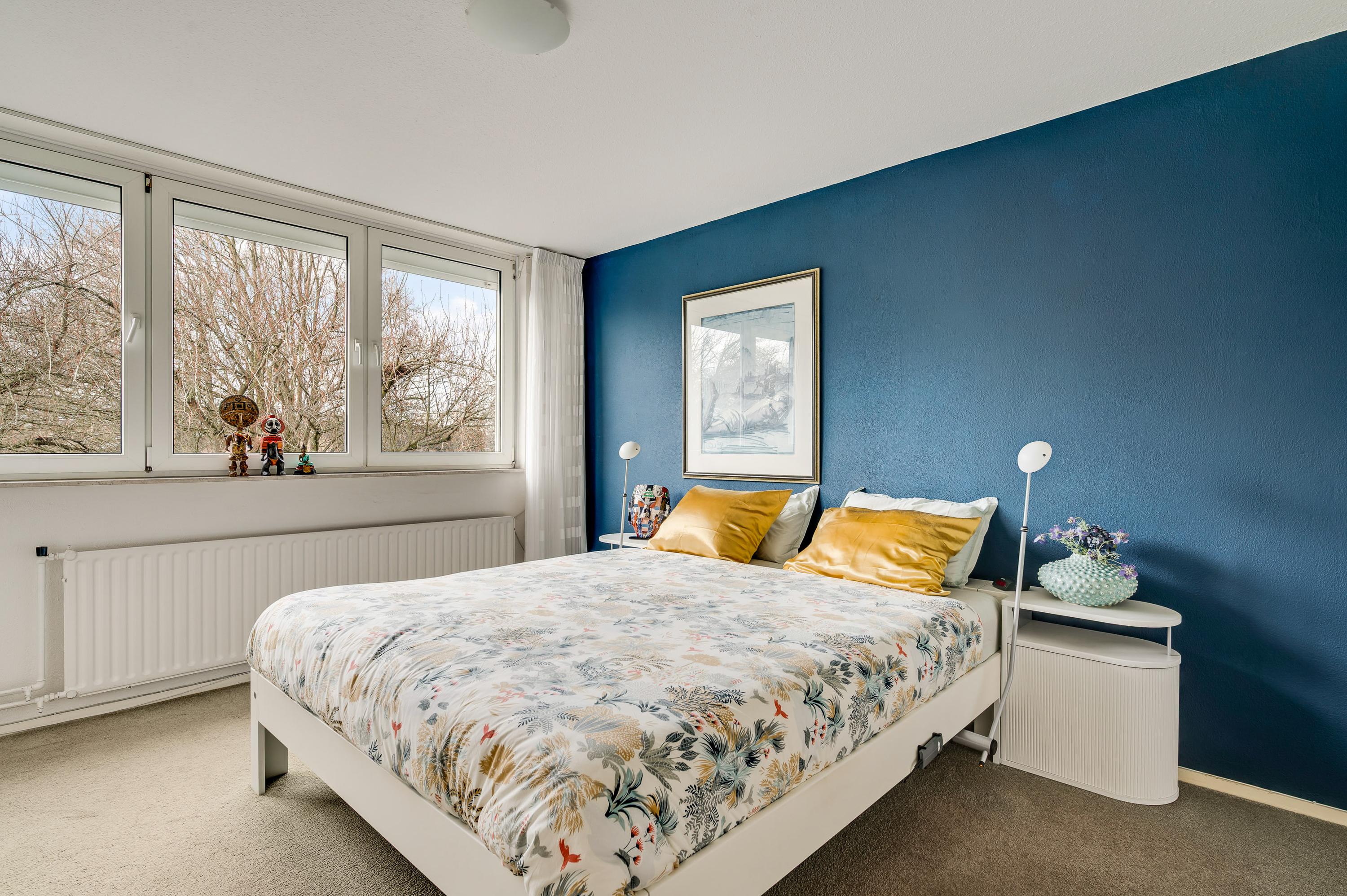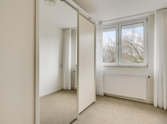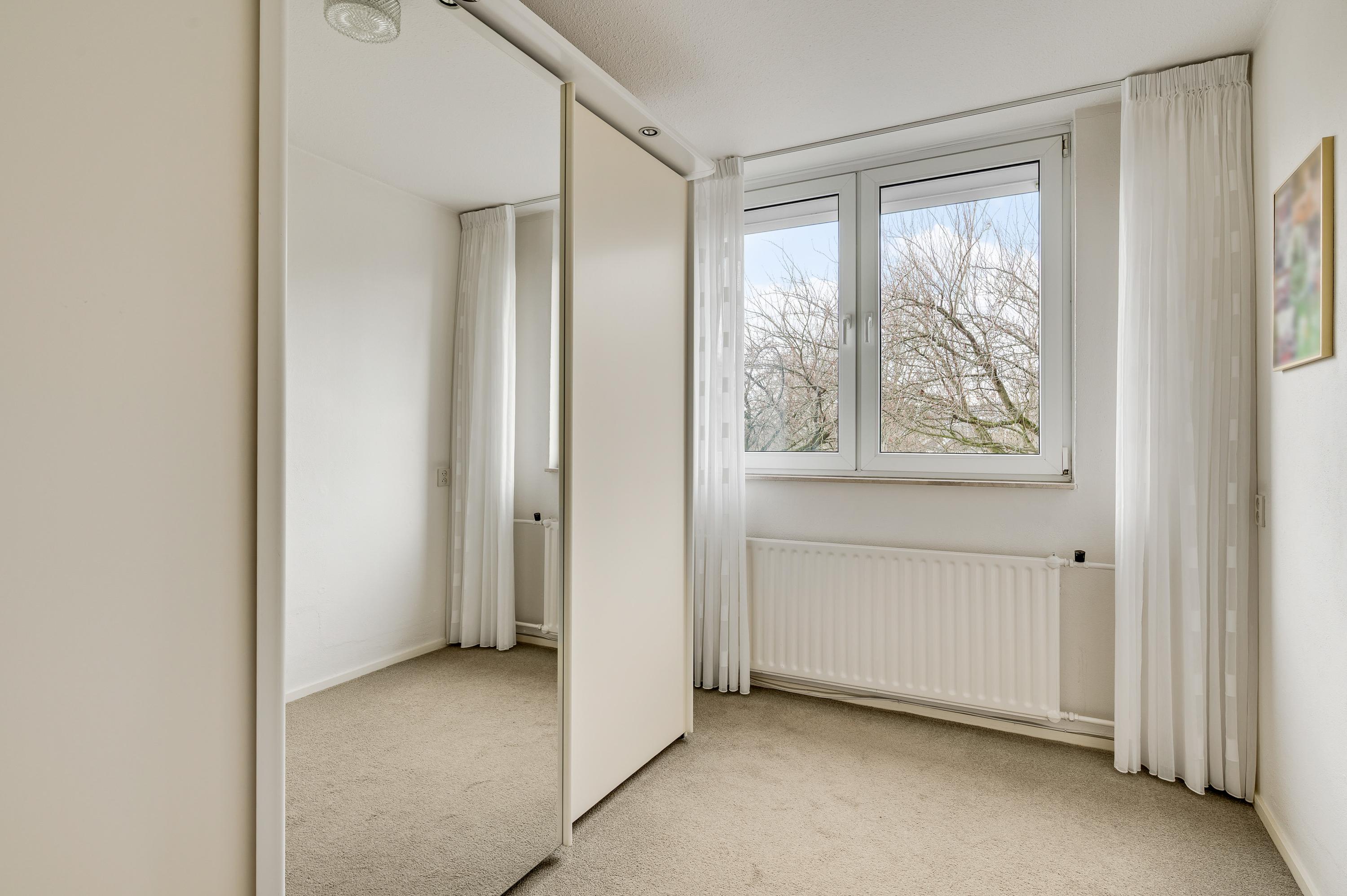 Niet alleen de begane grond, maar ook de eerste verdieping is zeer netjes onderhouden. Vanaf de overloop is er toegang tot drie slaapkamers en de badkamer. Slaapkamer I (circa 4,09 x 3,58) en slaapkamer II (circa 3,19 x 2,46), met een dubbele inbouwkast, zijn aan de voorzijde. Het uitzicht op het plantsoen is, ook hier, erg fraai. Slaapkamer III (circa 3,58 x 3,39) vindt u, net als de badkamer, aan de achterzijde. De ramen in de slaapkamers zijn voorzien van rolluiken.