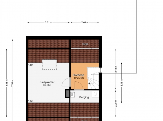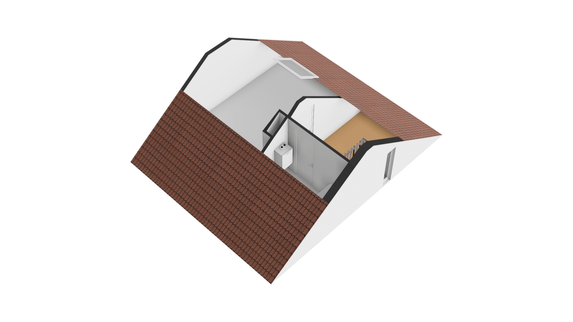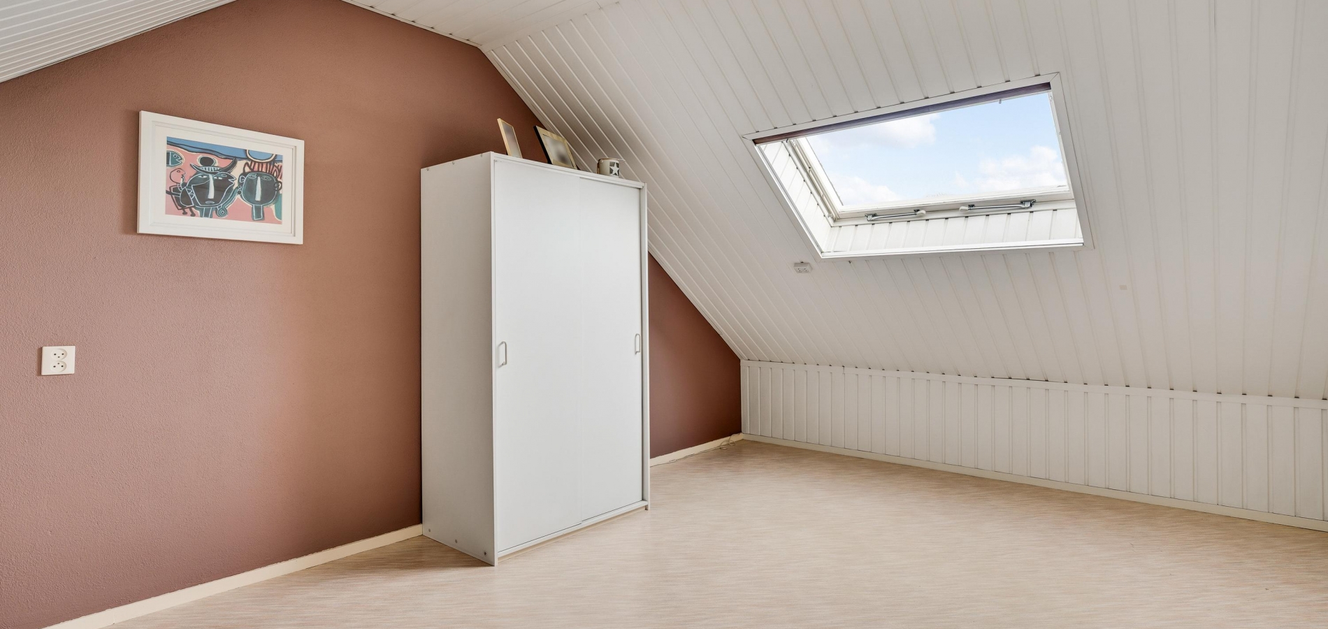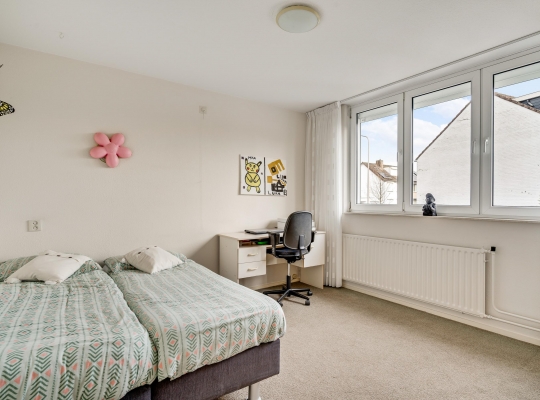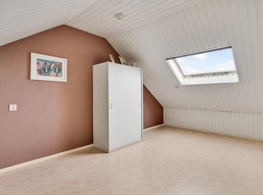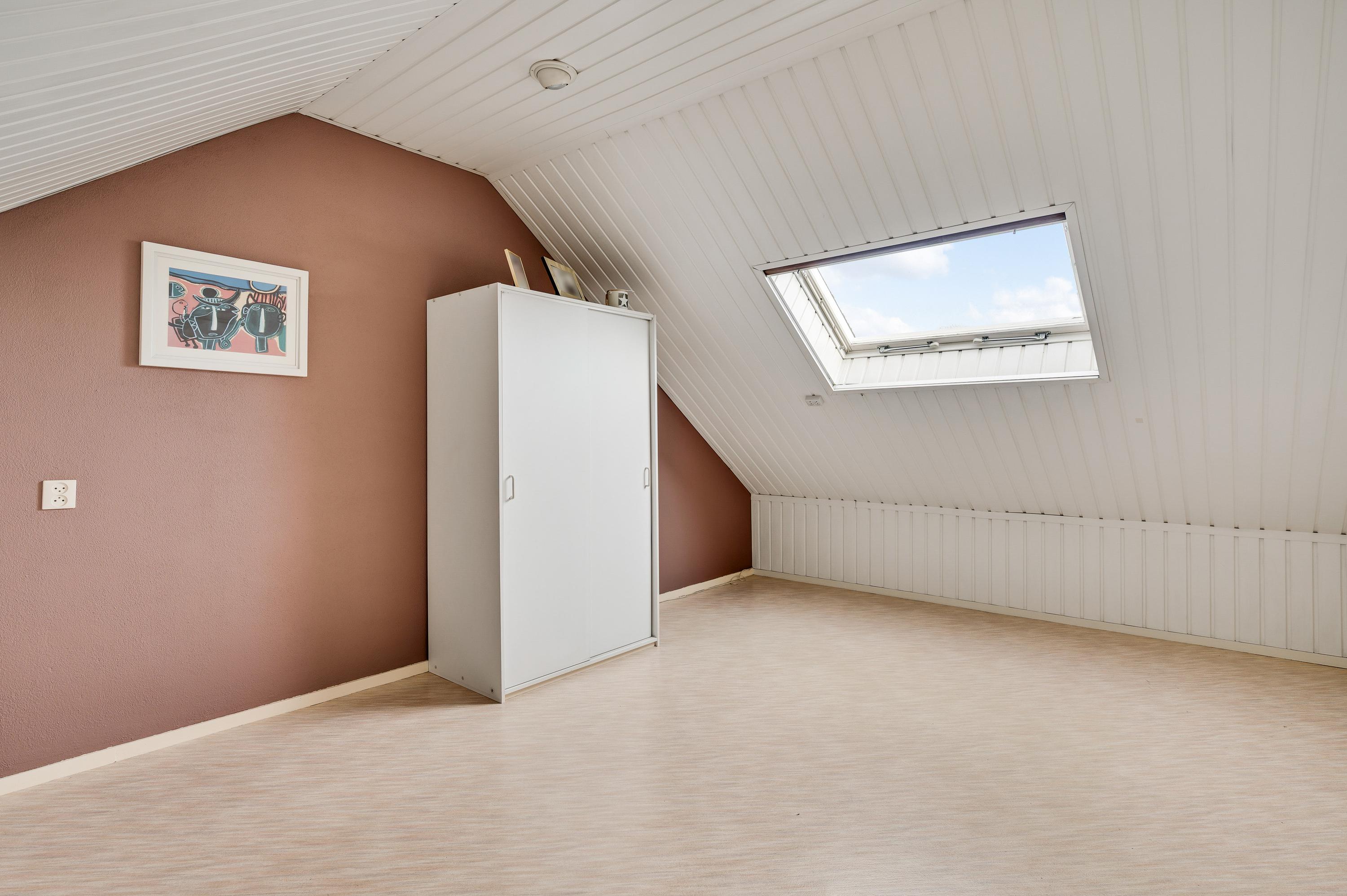 Slaapkamer IV (circa 5,88 x 3,61) is een ruime kamer met een dakraam aan de achterzijde. Perfect als kinderkamer, hobbyruimte of werkkamer!