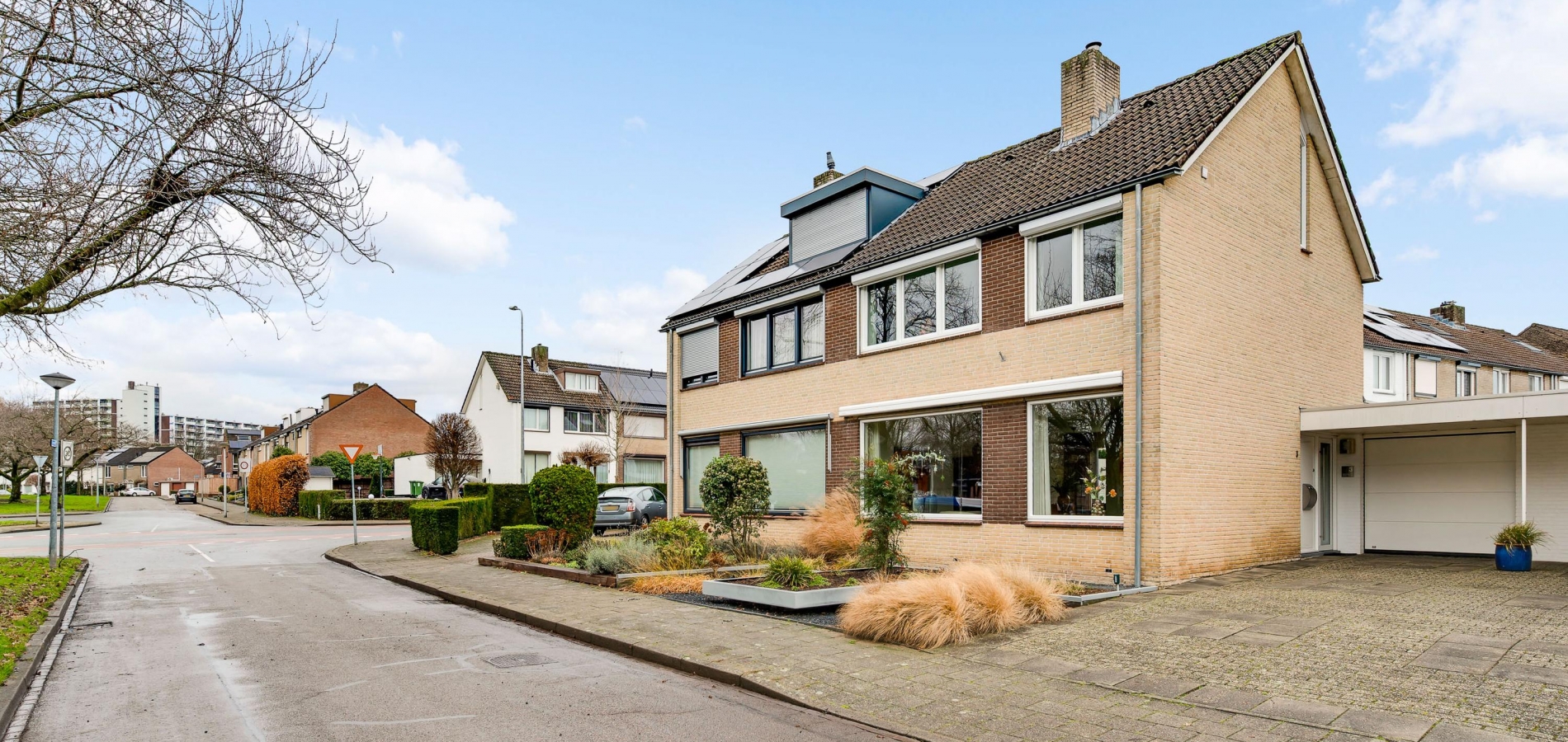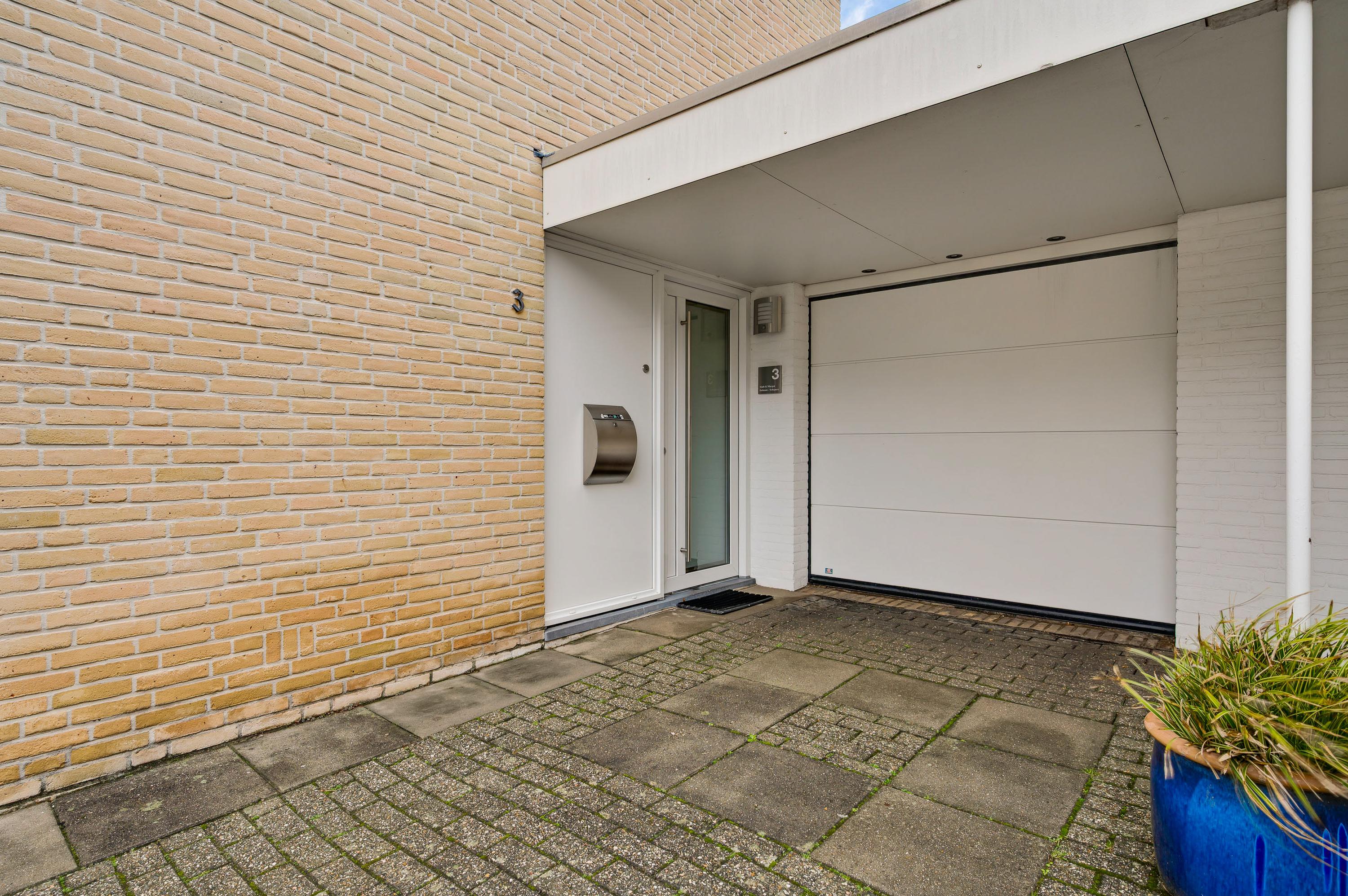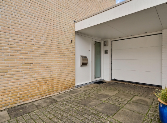 Een goed begin is de oprit met overkapping, waardoor u altijd op eigen terrein kunt parkeren. Dit kan ook in de garage (circa 5,96 x 2,92), voorzien van een elektrisch bedienbare sectionaalpoort en een deur naar de achtertuin.