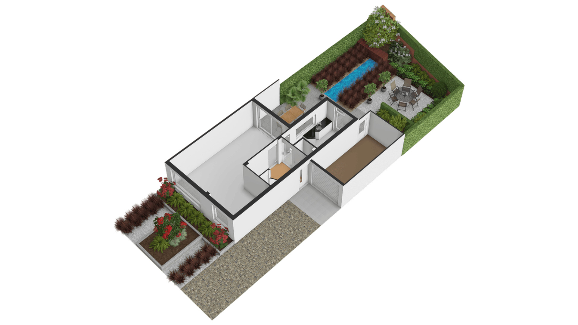 Mooi aangelegde voor- en achtertuin