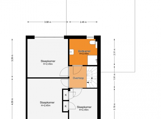 Vier slaapkamers, waarvan een op de tweede verdieping