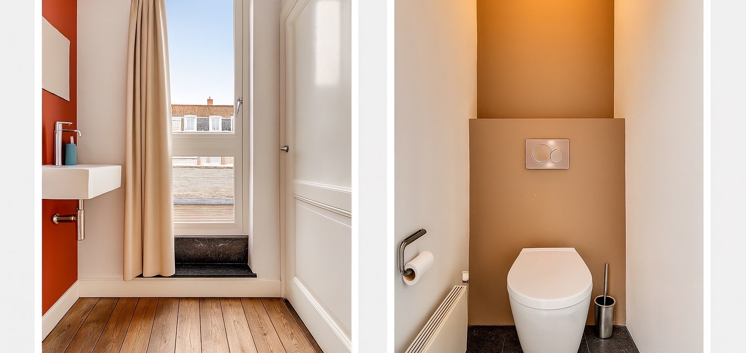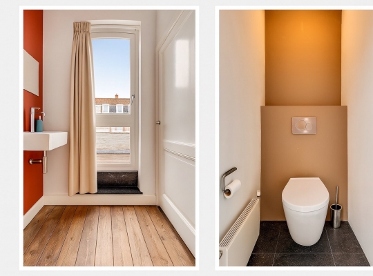 Volg de bordestrap naar de eerste verdieping en loop eerst naar de toiletruimte met portaal, dat tevens toegang biedt tot een dakterras van circa 2,60 x 2,55 meter. Vanaf dit dakterras krijgt u het eerste beeld van de Sint Martinuskerk, een icoon in Wyck.