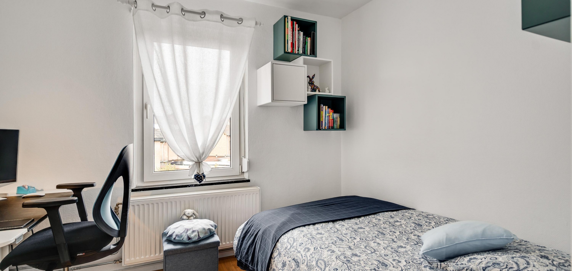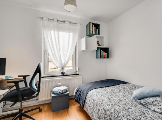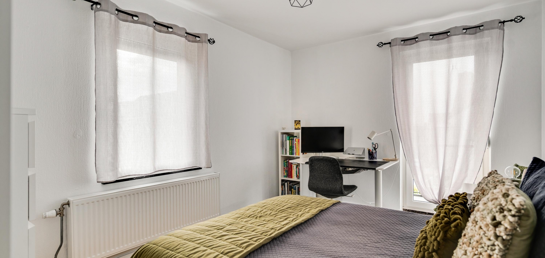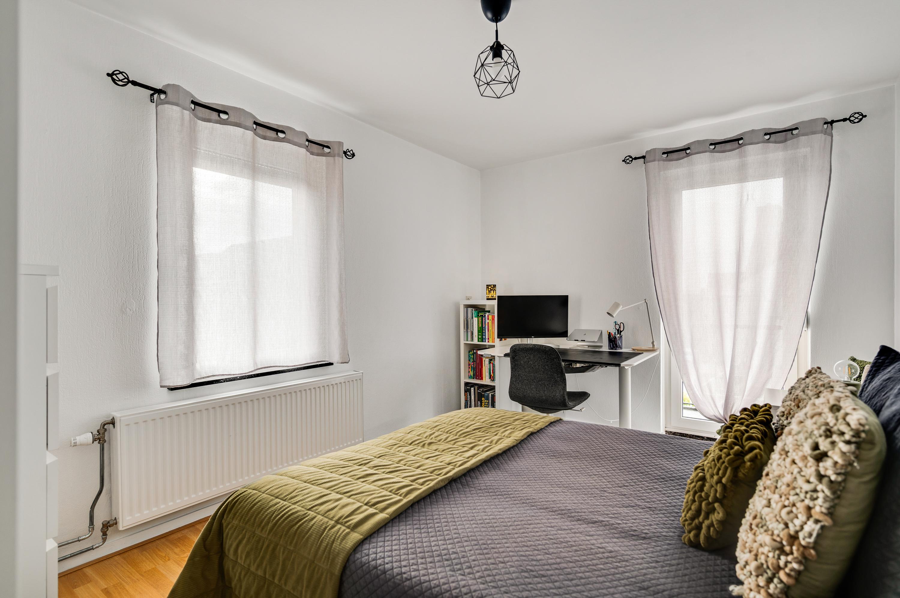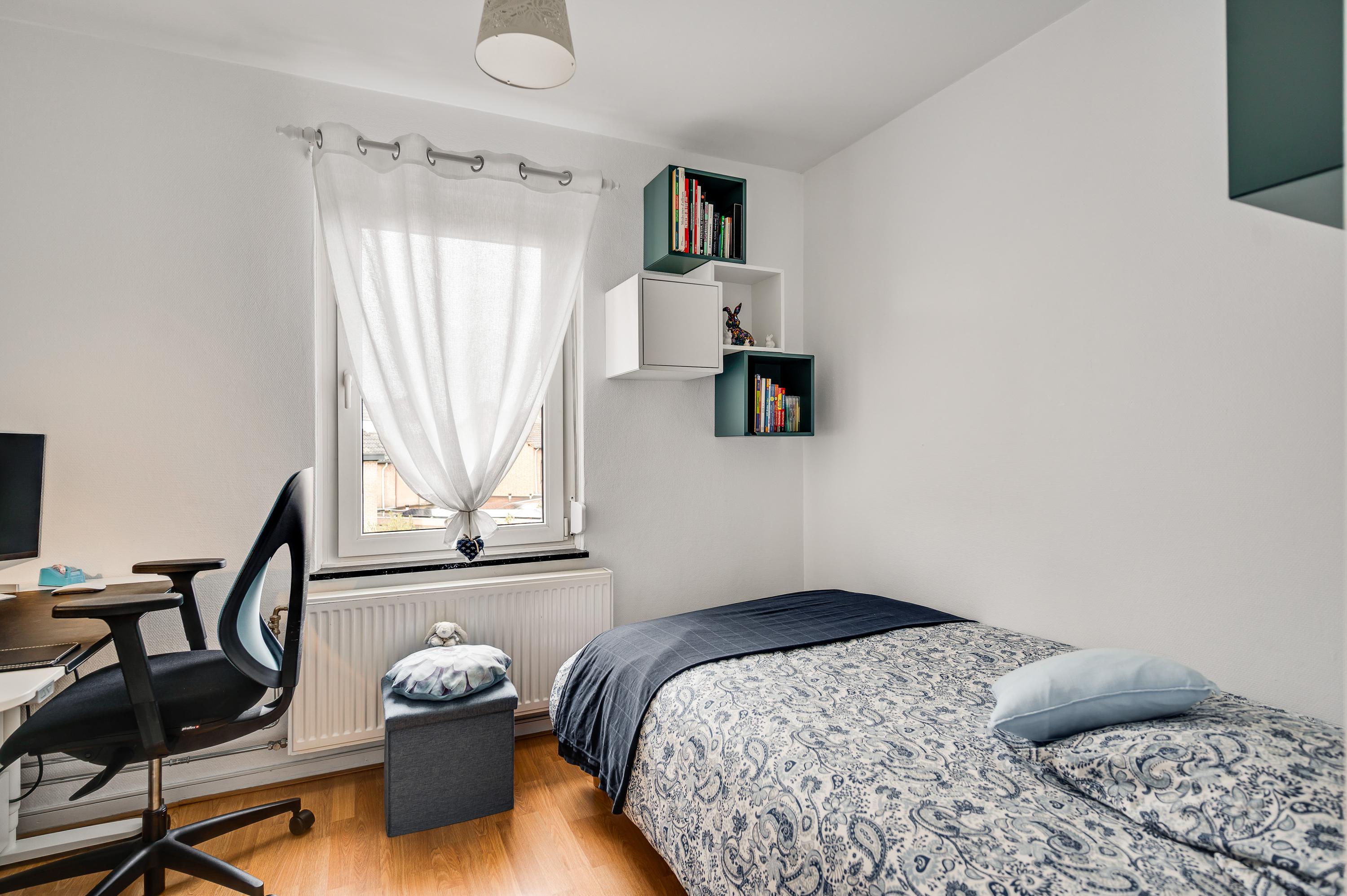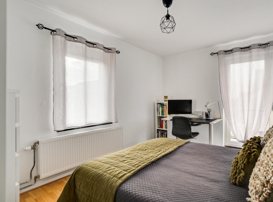Slaapkamer II (circa 3,38 x 3,77) en slaapkamer III (circa 3,19 x 2,37) vindt u aan de achterzijde.