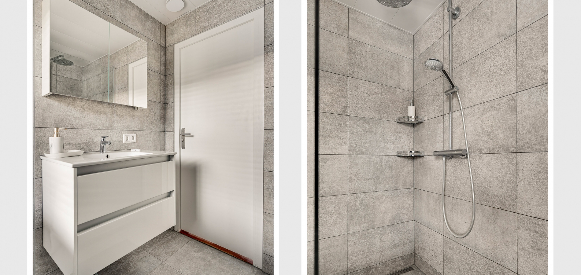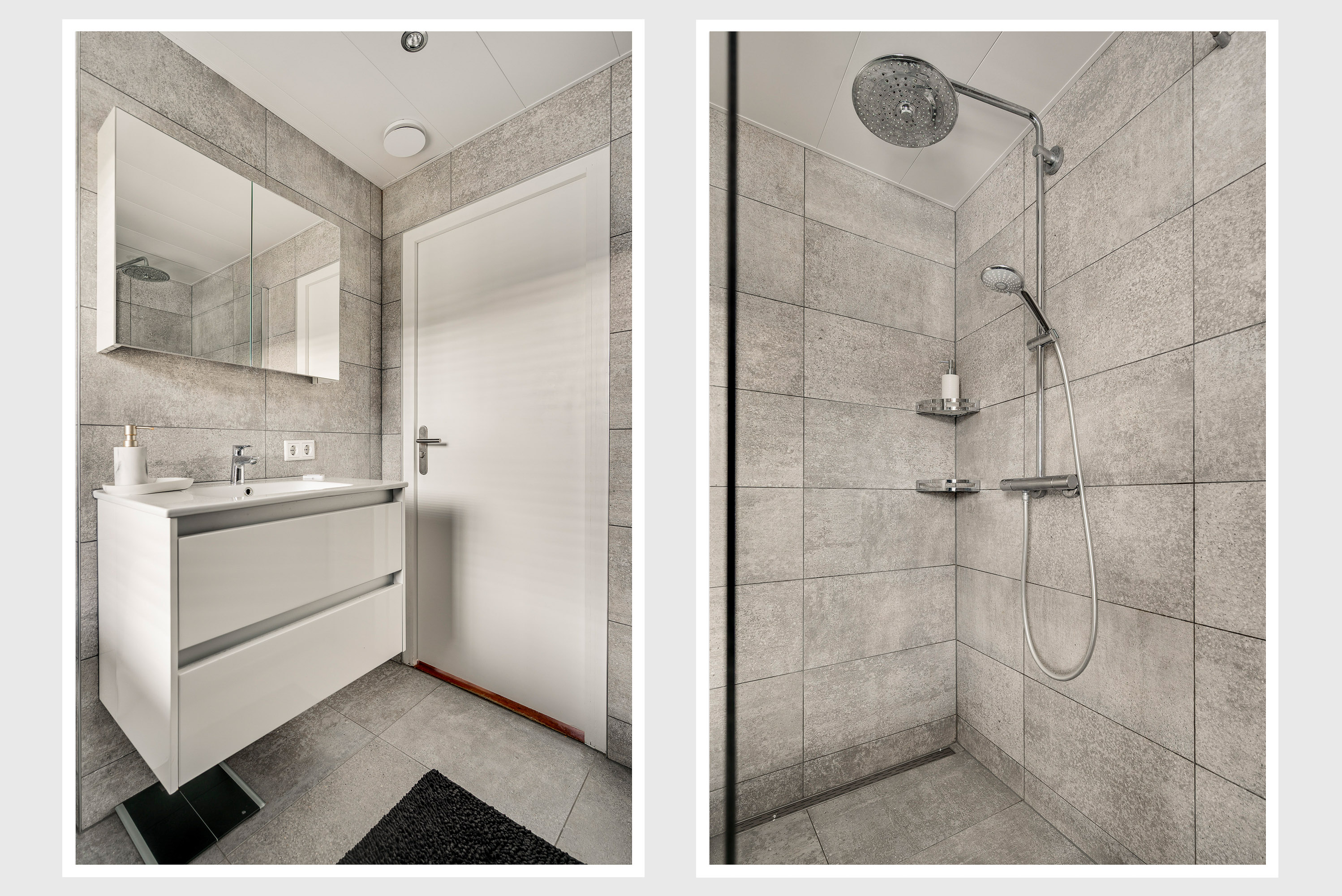 Vanaf de overloop is er toegang tot drie slaapkamers en de badkamer. Op bijna de hele verdieping ligt laminaat, muren zijn gestuct en de binnendeuren zijn vernieuwd. Aan de voorzijde zijn slaapkamer I (circa 4,38 x 3,01) met een balkon en de badkamer (circa 2,16 x 2,07). Deze ruimte is ingedeeld met een xl-inloopdouche en een wastafelmeubel.