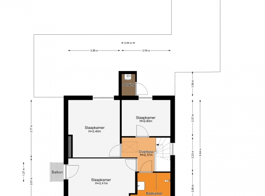 Aan de achterzijde is een van buitenaf bereikbare berging (circa 1,59 x 0,89), met de opstelling van de HR-ketel (Nefit Proline, 2019, eigendom).