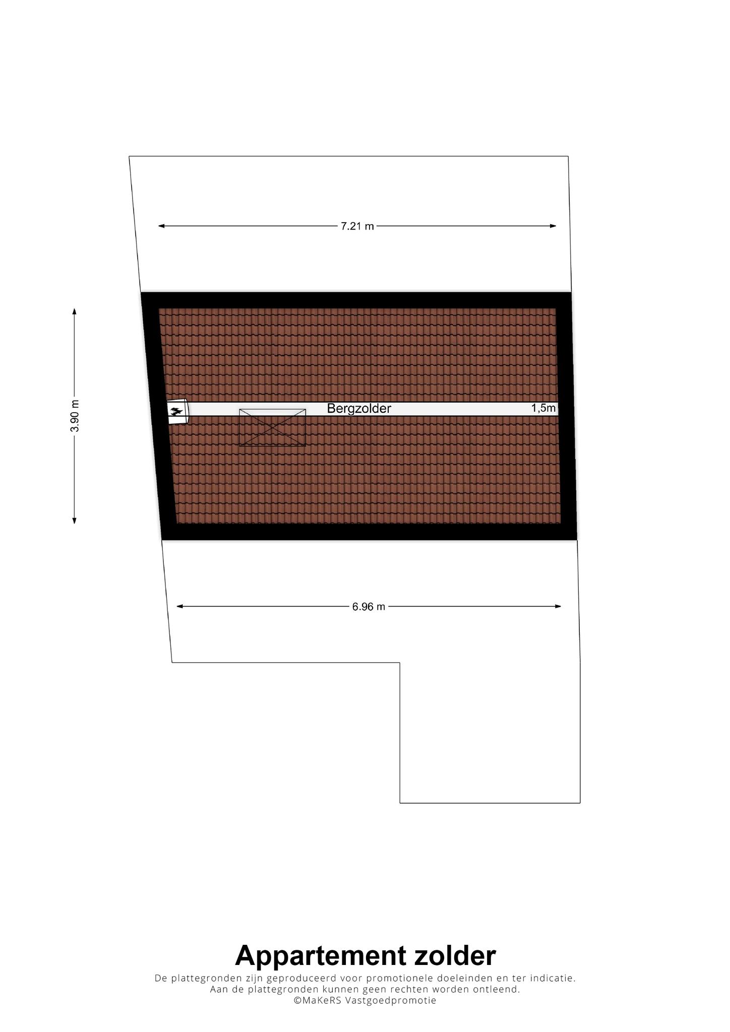 In een van de slaapkamers is een vlizotrap naar de zolder (circa 7 x 3,90), die een nokhoogte van circa 1,60 meter heeft en waar de installaties zich bevinden.