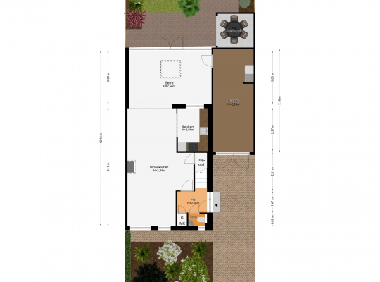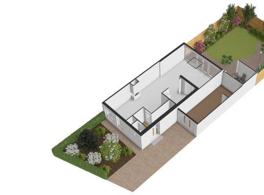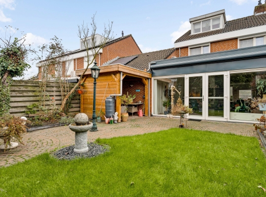 Een pluspunt van deze woning is de ruime tuin, zowel aan de voor- als achterzijde. De voortuin zorgt voor privacy in de woonkamer en op de oprit kunnen meerdere auto’s staan. In de achtertuin, op het zonnige zuidwesten, heeft u genoeg plek om in de zon te zitten. Liever schaduw? Het elektrisch bedienbare zonnescherm en de overkapping zorgen voor een fijne schaduwplek.