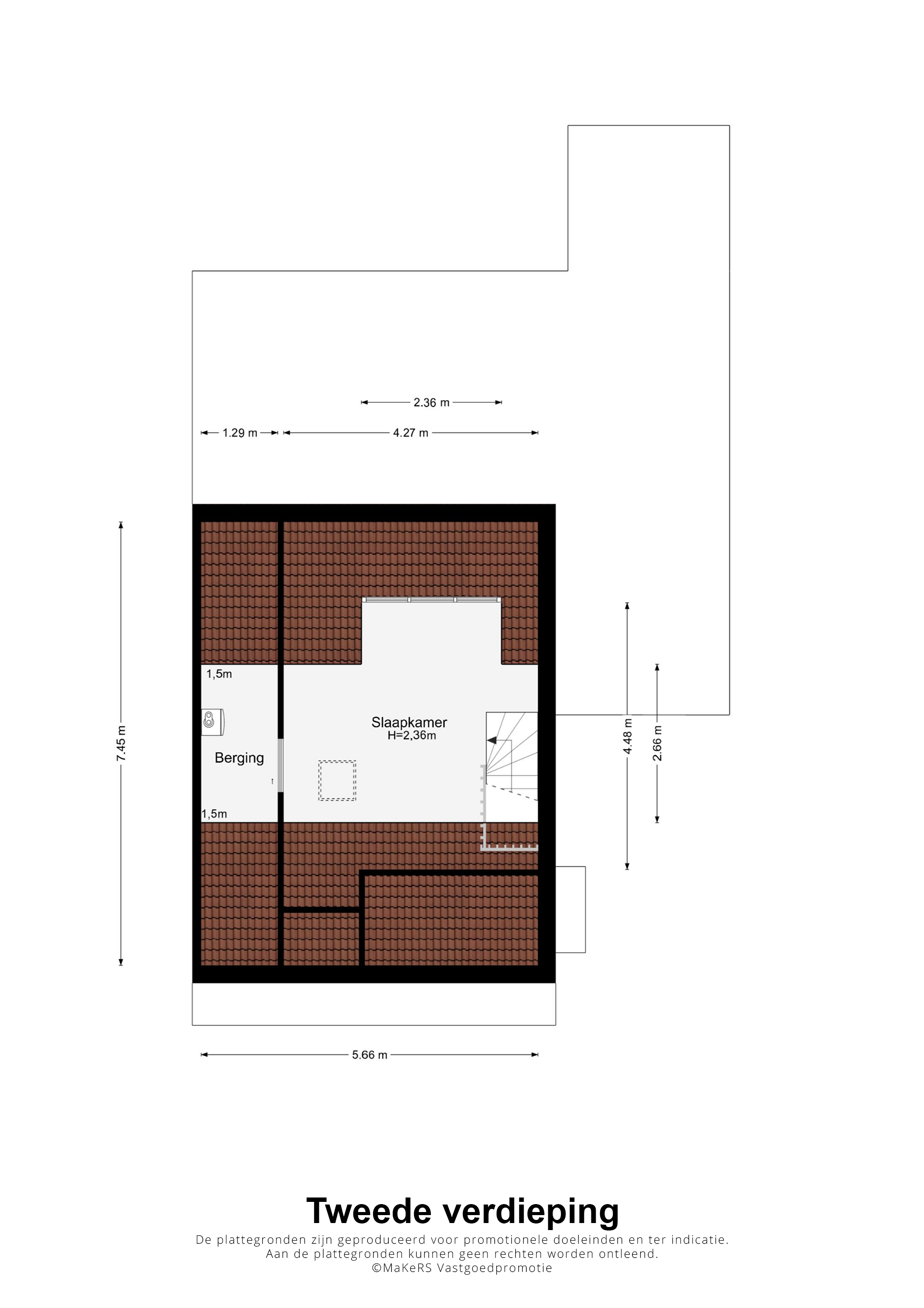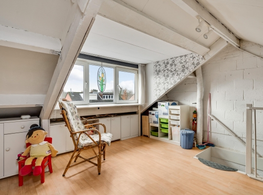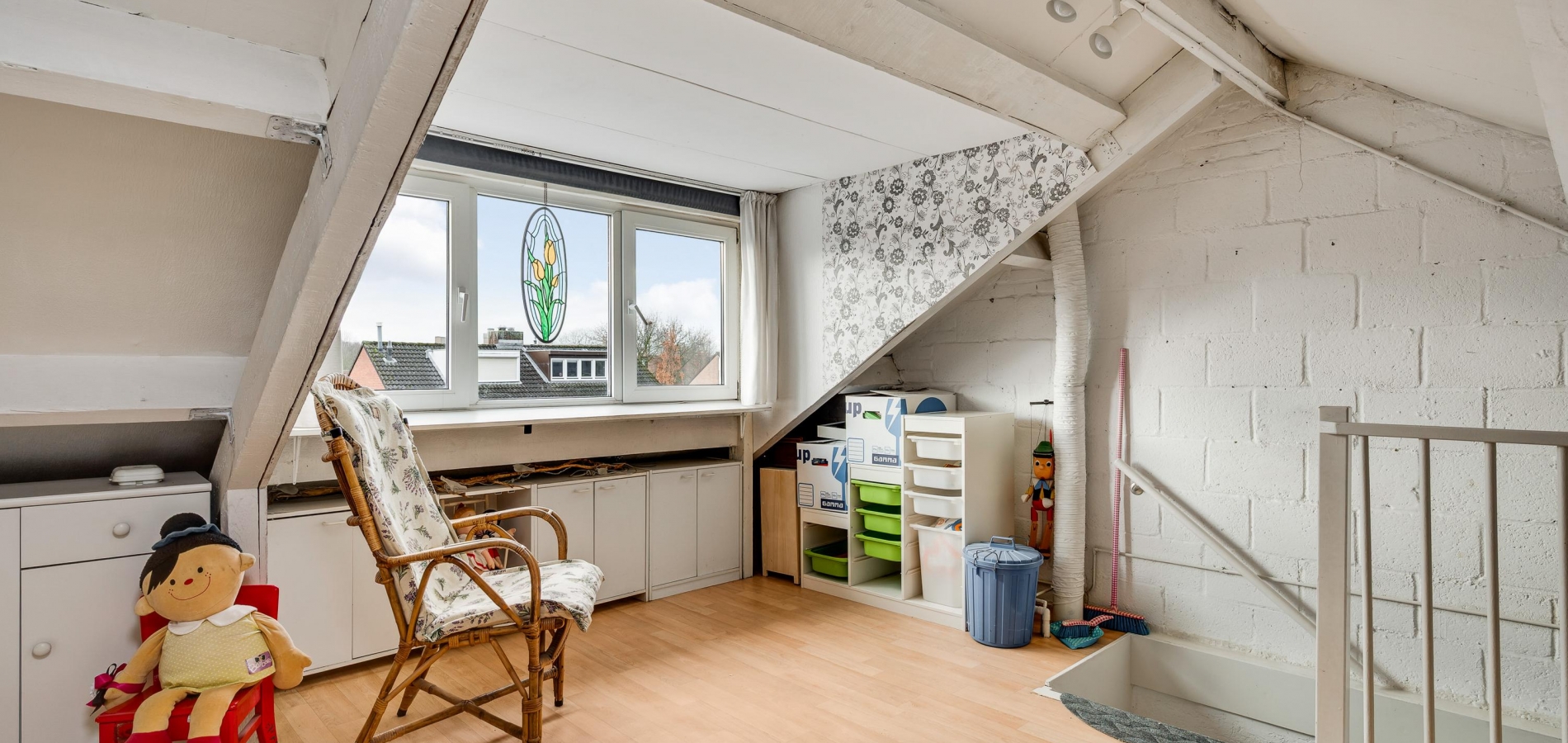 Een vaste trap geeft toegang tot de tweede verdieping. Er zijn twee ruimtes: een berging met de HR-ketel (Nefit, huur, 2015) en slaapkamer IV (circa 4,48/2,66 x 4,27). Deze kamer heeft een dakraam, dakkapel en vinyl op de vloer.