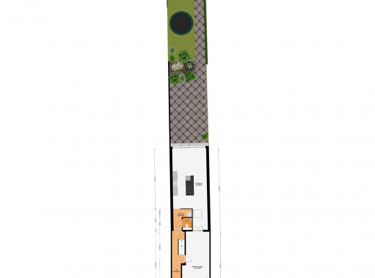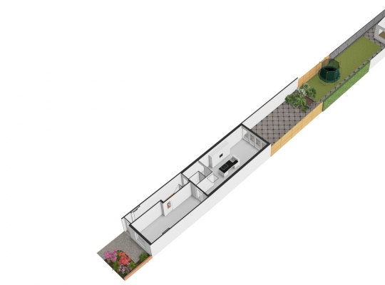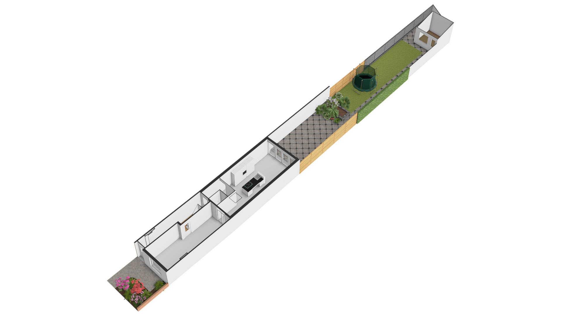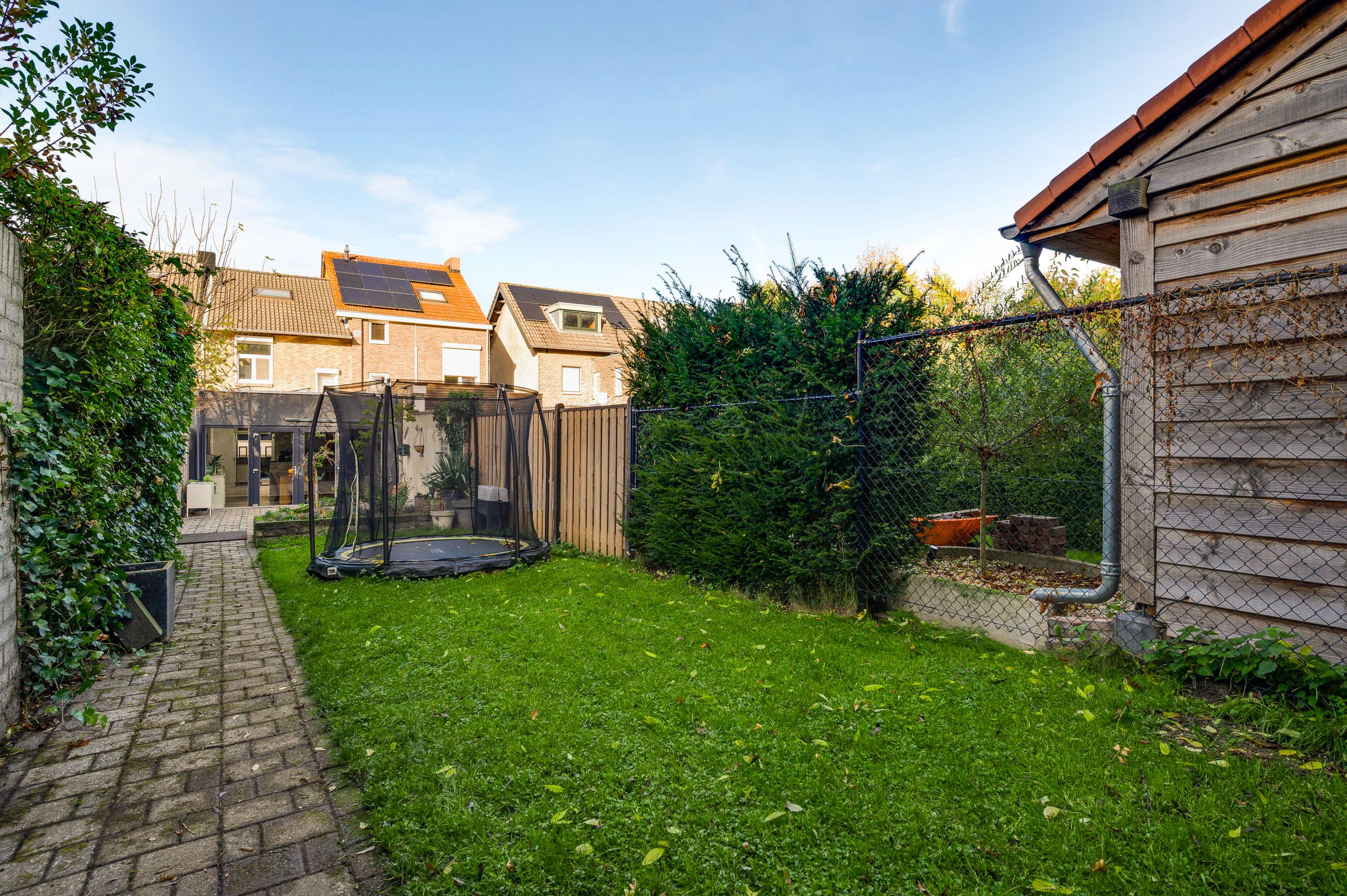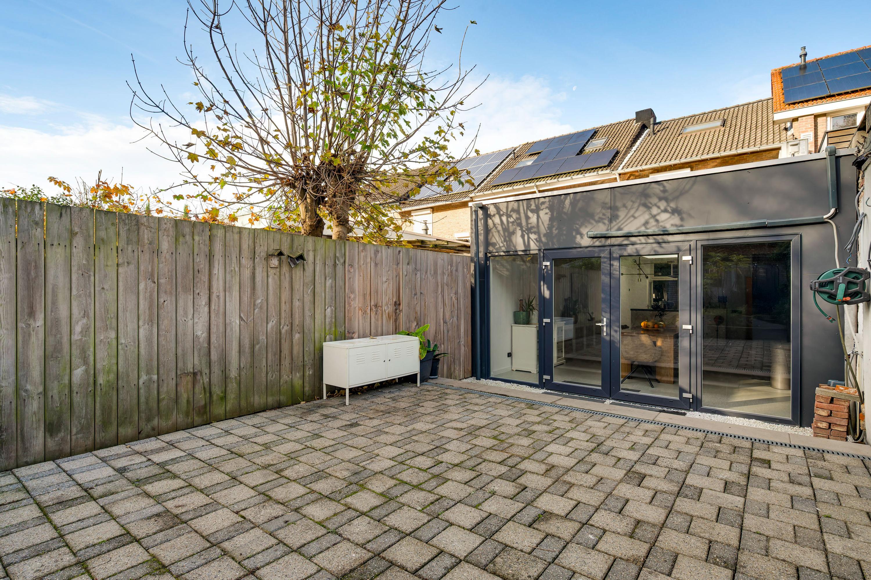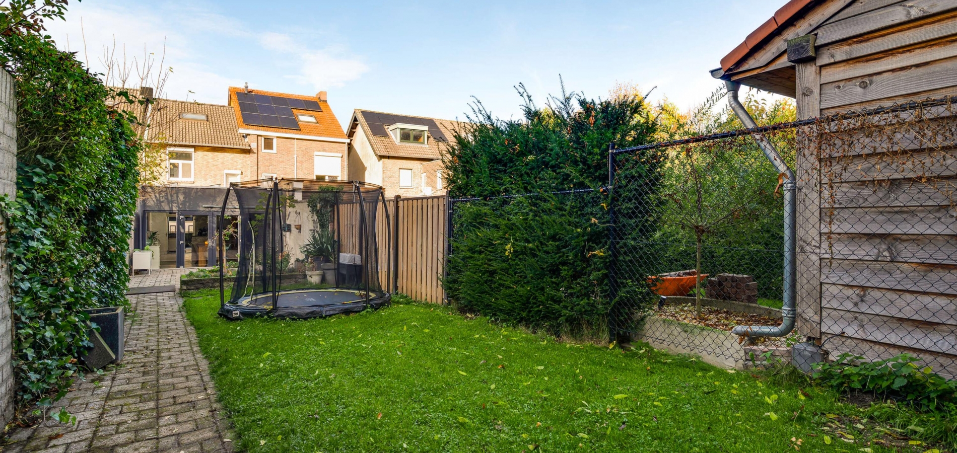 Ondanks de grote aanbouw heeft deze woning een diepe tuin, gesitueerd op het oosten. Het terras is van groot formaat en het tweede, groene deel van de tuin is nu een fijne speelplek voor de kinderen. In de stenen berging (circa 3,05 x 3,05) is genoeg plek voor het tuin- en klusgereedschap.