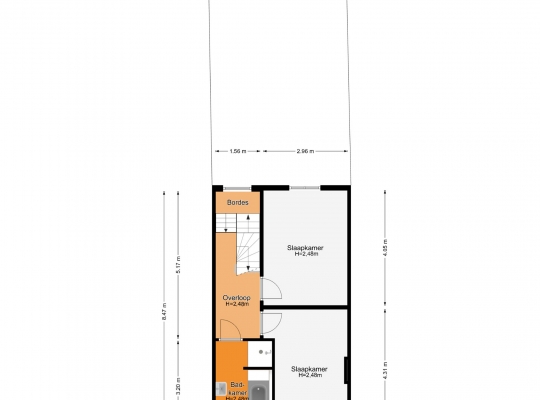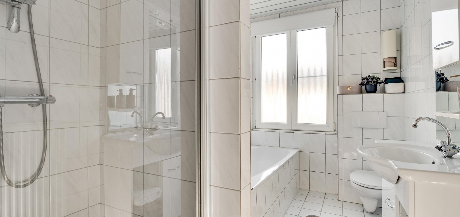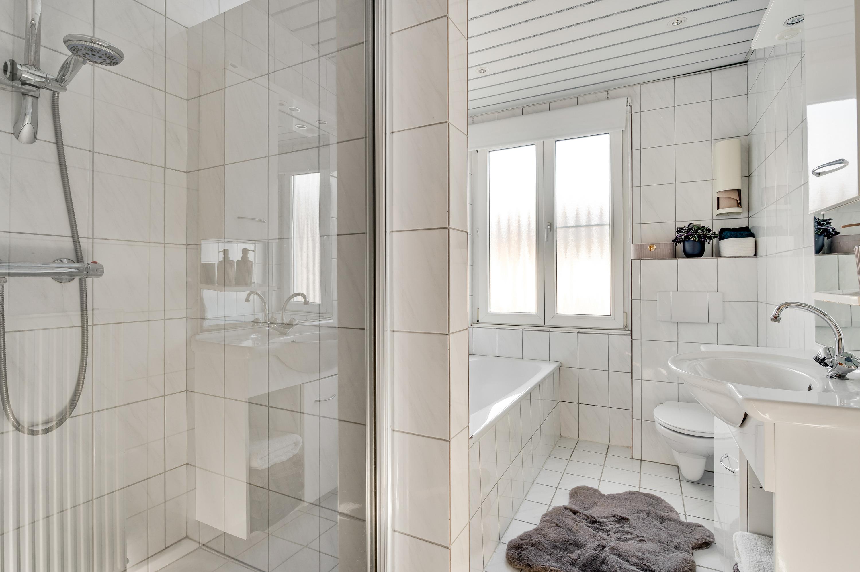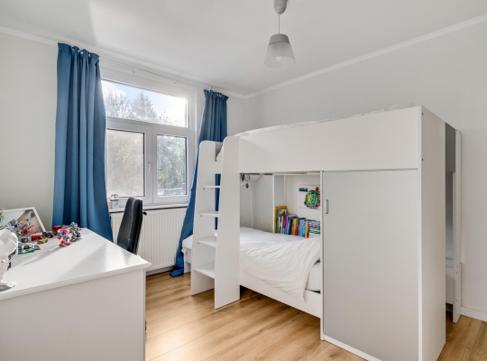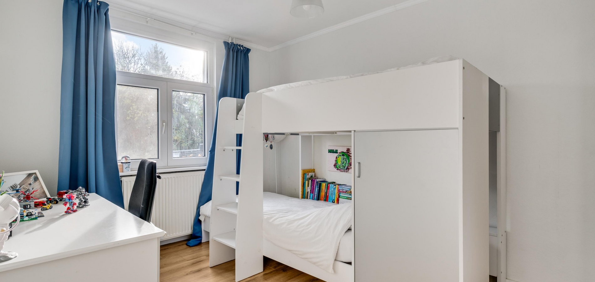Aan de achterzijde is slaapkamer I (circa 4,05 x 2,96) en slaapkamer II (circa 4,31 x 2,56) bevindt zich aan de voorzijde. Beide kamers zijn licht, ruimtelijk en in gebruik als kinderkamer. De royale badkamer (circa 3,20 x 1,99) is ingedeeld met een ligbad, een aparte douche, tweede toilet en een wastafelmeubel.