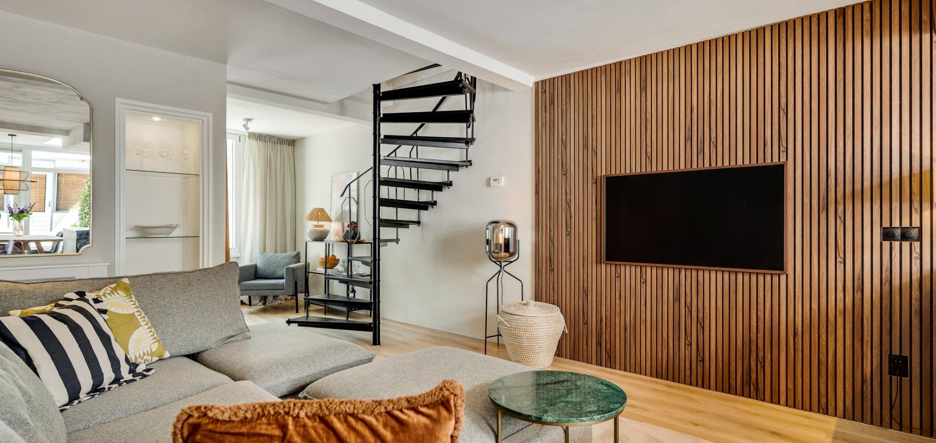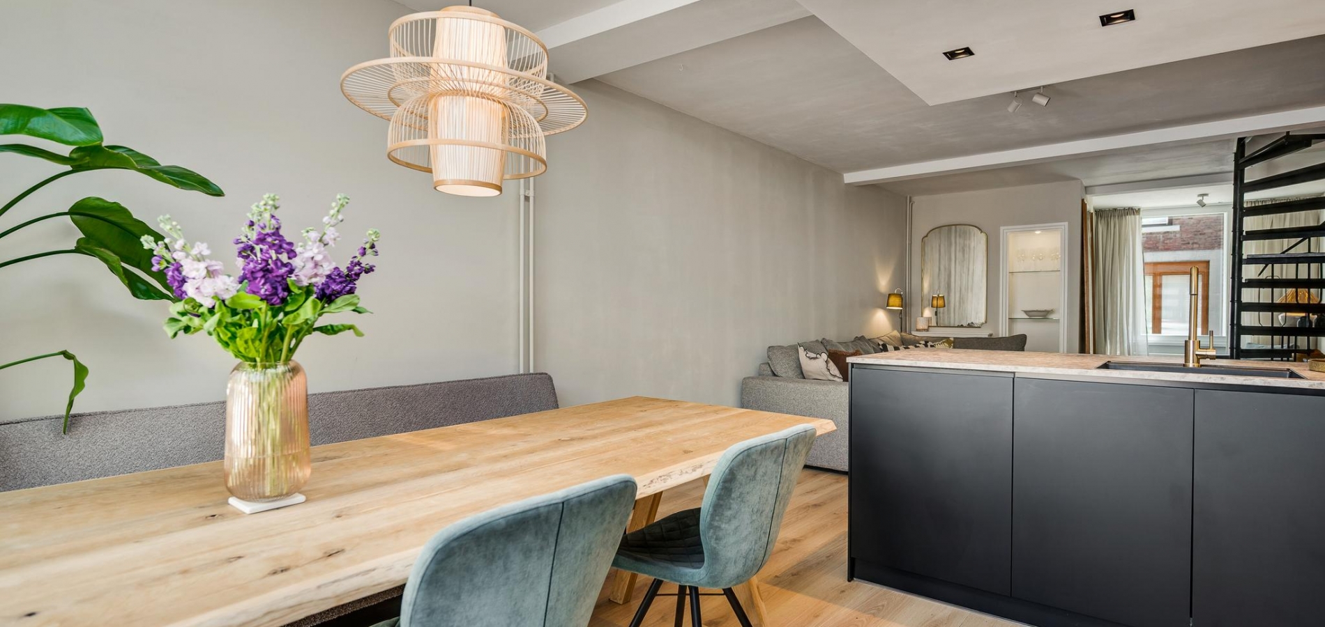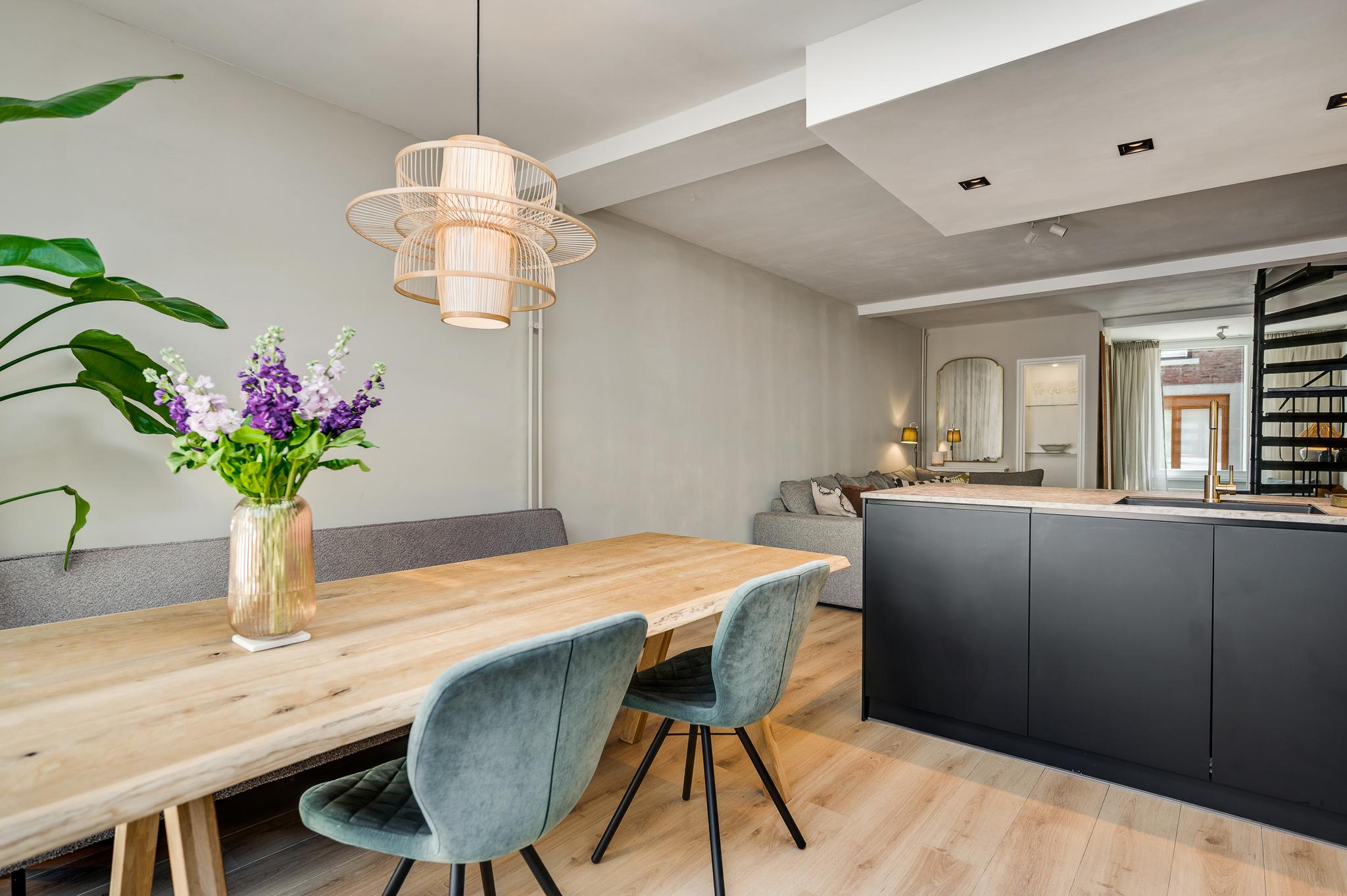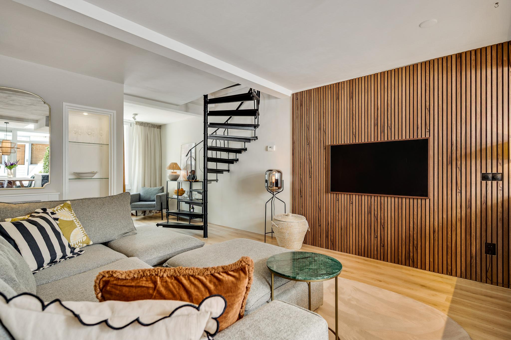 De woonkamer met open keuken heeft een totale oppervlakte van circa 40 m2,met het grote zitgedeelte in het midden en een extra zitgelegenheid aan de voorzijde. In de keuken, met een grote lichtkoepel en uitzicht naar de tuin, is ruimte voor de eettafel. Op de vloer ligt laminaat en de trendy lattenwand bij het zitgedeelte bepaalt, samen met de keuken, de sfeer in huis. De matzwarte hoekopstelling is in 2023 geplaatst, met een uitstekende afwerking en alle benodigde inbouwapparatuur: een inductie kookplaat, plafondafzuiging, oven, vaatwasser koelkast en diepvries.
