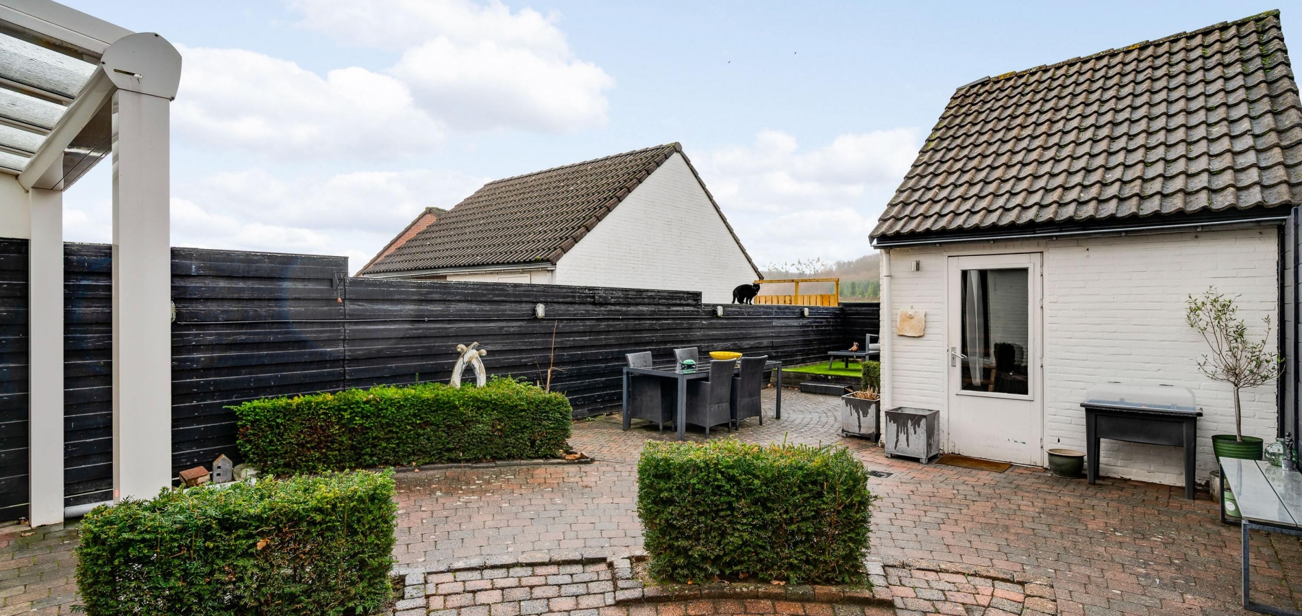Als u goed kijkt, ziet u dat de achter- en voortuin iets breder zijn dan bij de tussengelegen woningen. Gevarieerde beplanting zorgt voor een voortuin met een mooie uitstraling, ook in de winter.
