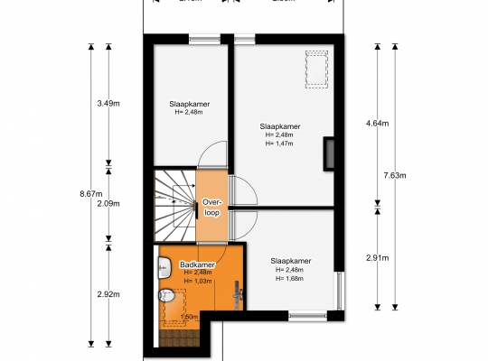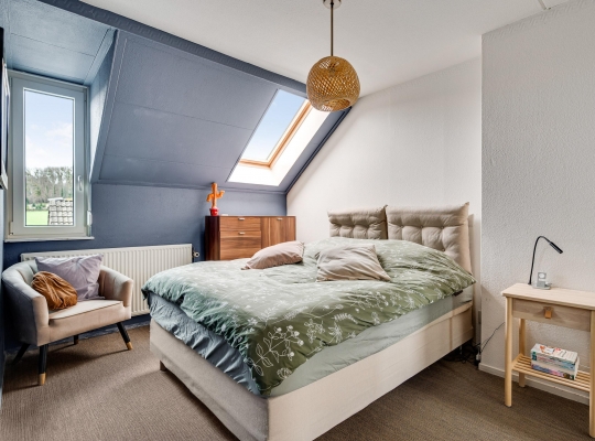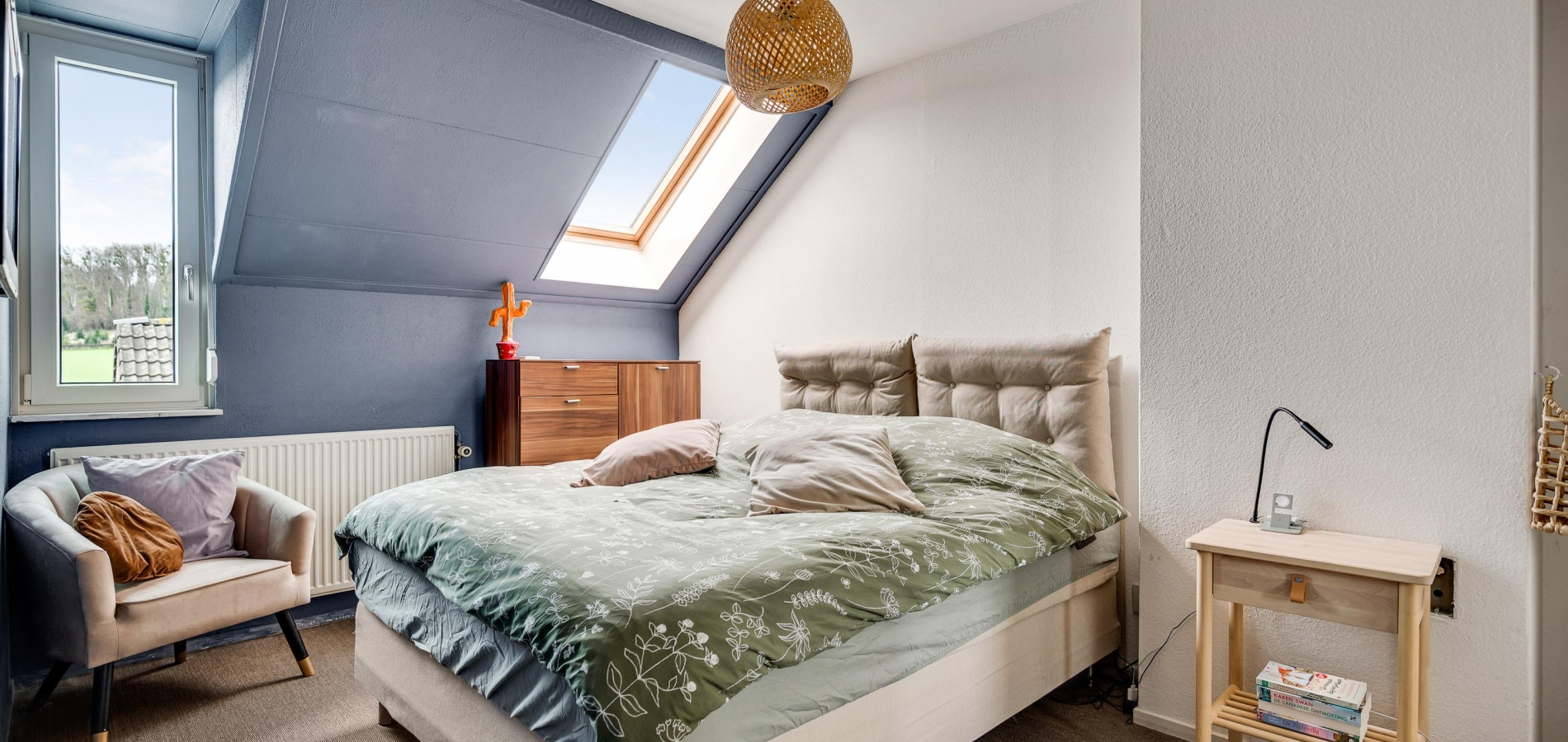 Aan de voorzijde is slaapkamer I (circa 2,91 x 2,50), met uitzicht op de rustige straat. Vanuit slaapkamer II (circa 4,64 x 2,86) en slaapkamer III (circa 3,49 x 2,13) is er mooi uitzicht op het achtergelegen glooiende landschap.