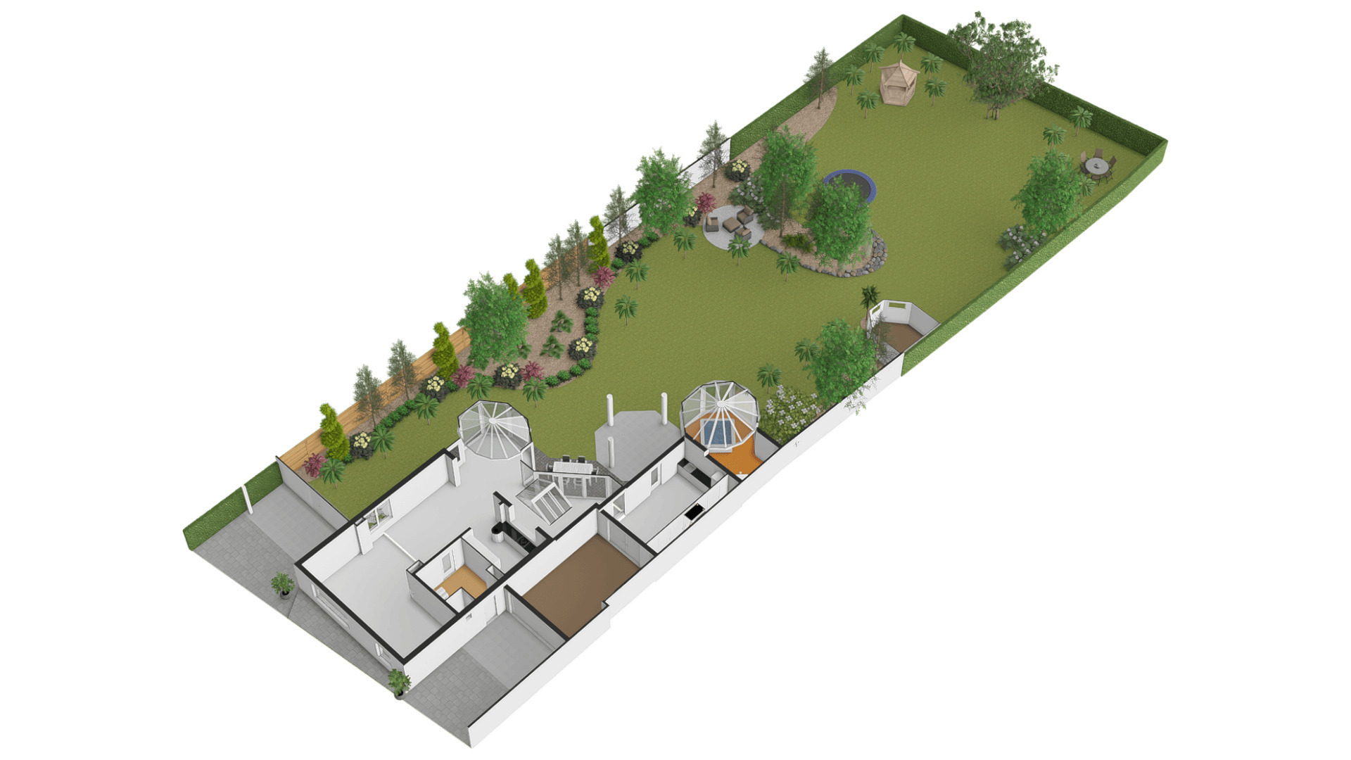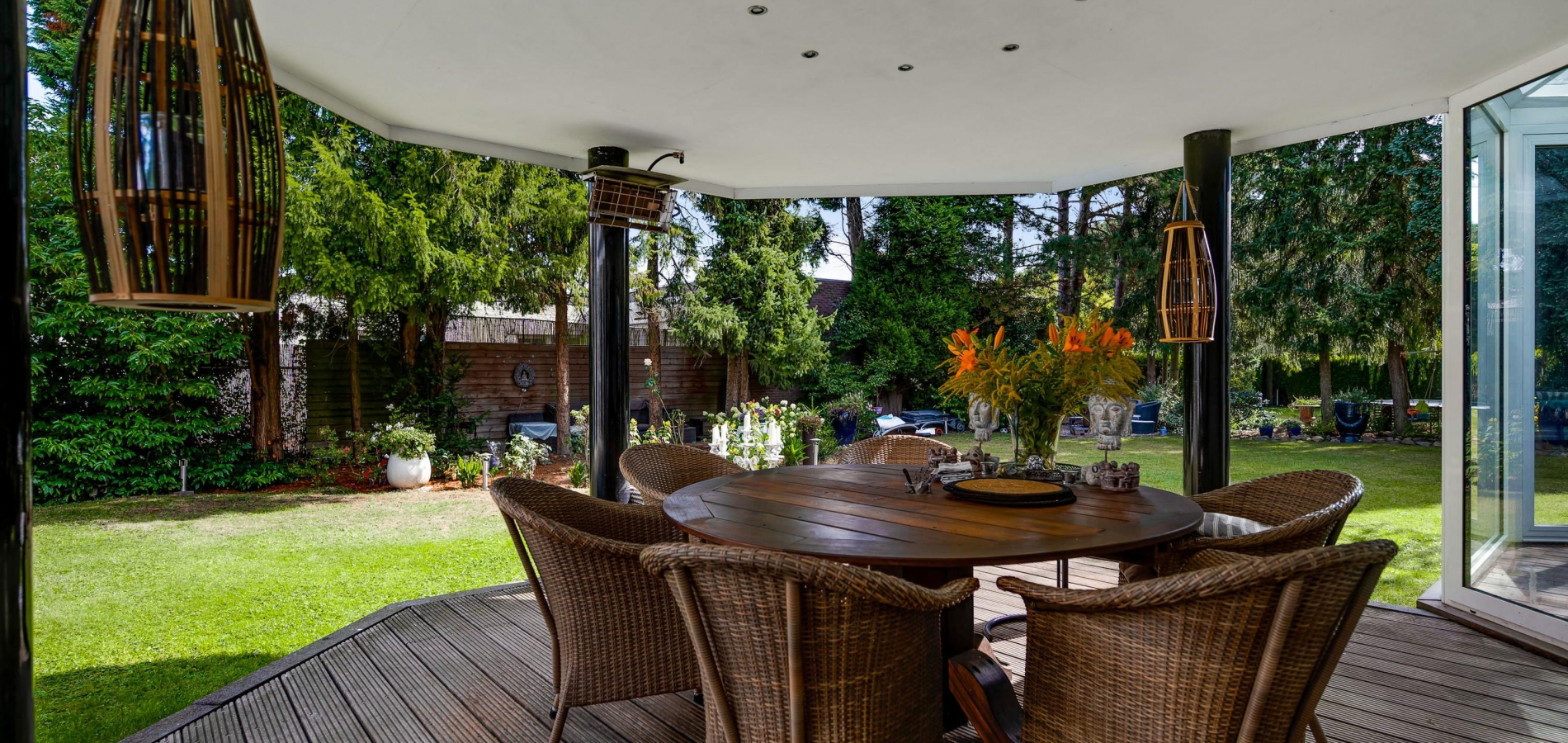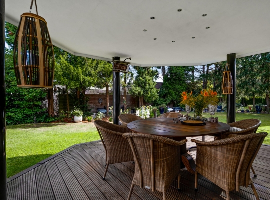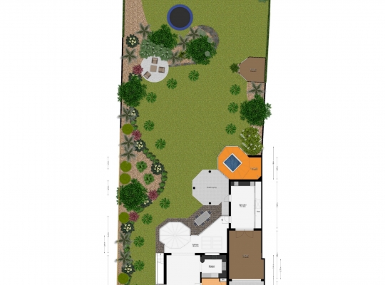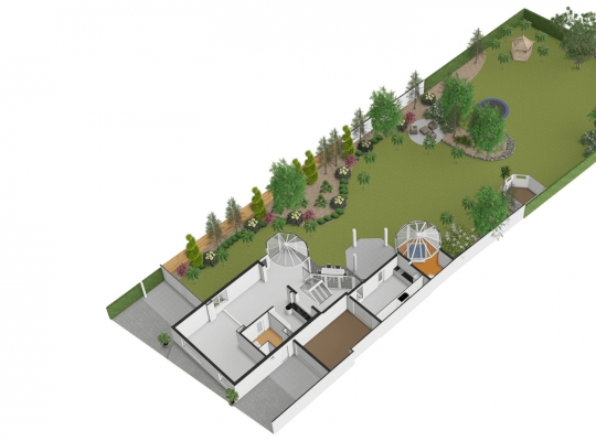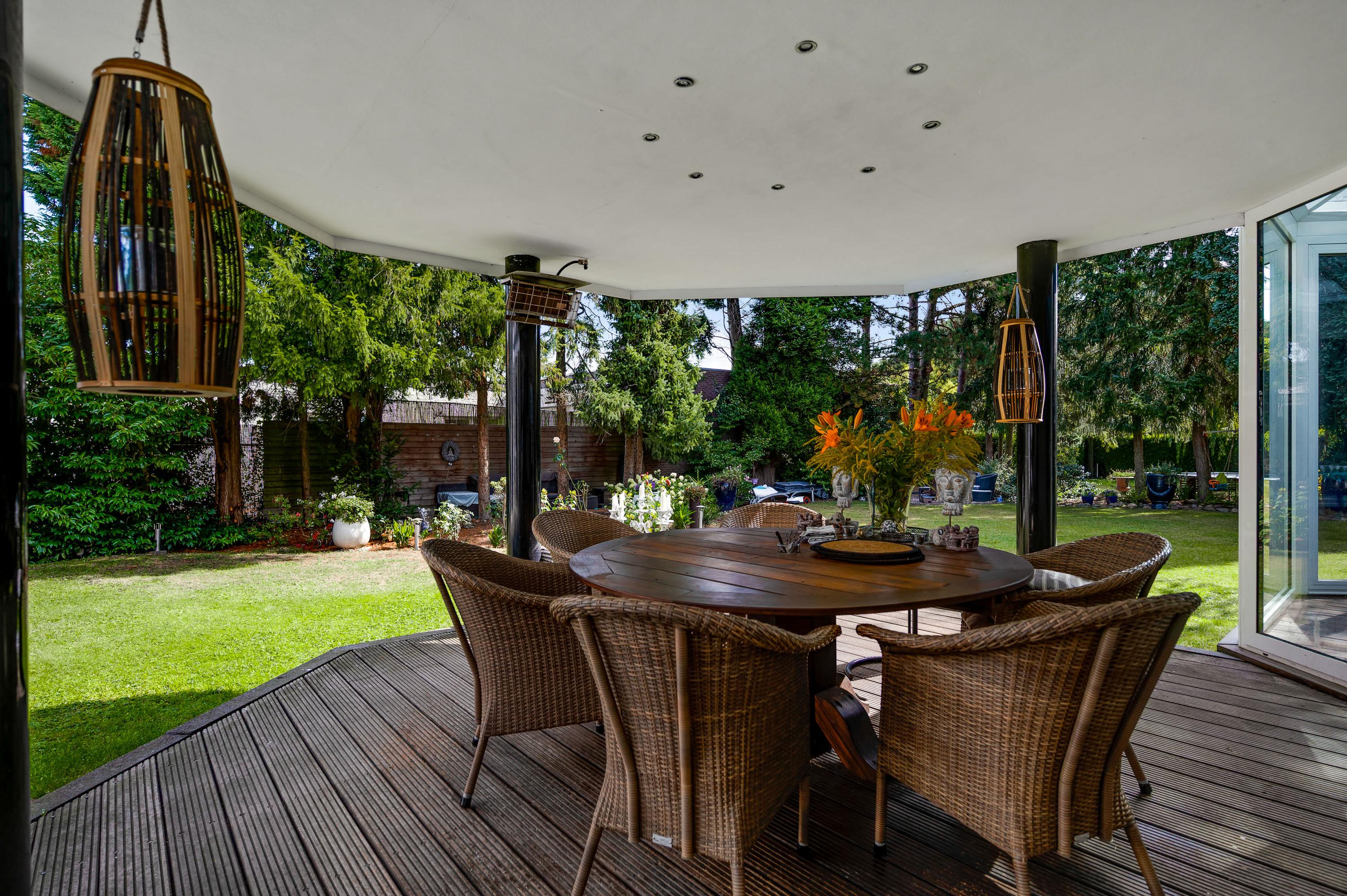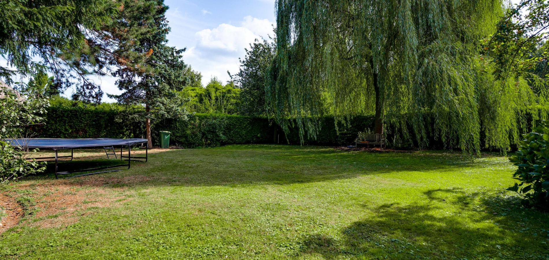 Vanuit de aanbouw en tweede keuken is de tuin te bereiken, met een 8-hoekig terras en een tweede wellnessruimte met jacuzzi en douche. Met de deuren open of dicht is dit een heerlijke plek om te genieten, met veel privacy en mooi uitzicht naar de tuin. Ontdek ook het tweede deel van de tuin, achter de bomen, waar nu een trampoline op het gazon staat. Dit is niet zomaar een tuin, maar een zeer ruime tuin die voor kinderen en mensen met groene vingers heel geschikt is!