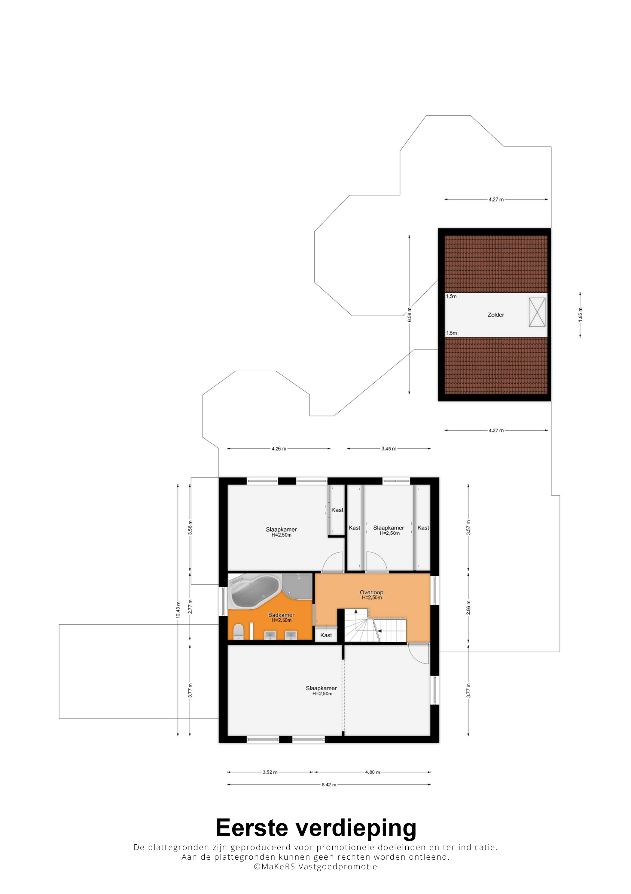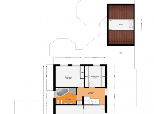 Aan de voorzijde zijn twee slaapkamers samengevoegd tot slaapkamer III van circa 8,42 x 3,77 meter. Kiest u voor de oorspronkelijke indeling met twee kamers aan de voorzijde, dan ontstaan er mooie kamers van circa 18 en 13 m2!