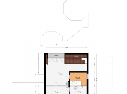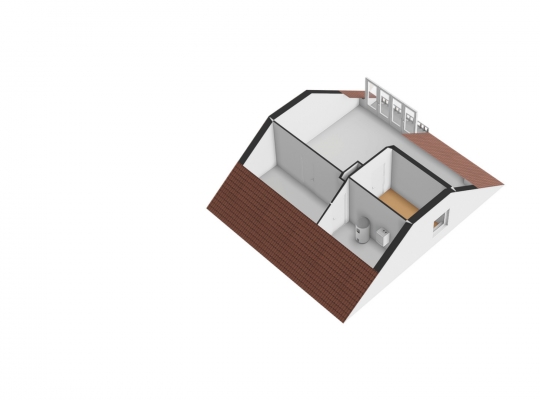 Aan de voorzijde zijn twee bergingen van circa 4,88 x 3,58 en 3,45 x 3,58 meter, waarvan een met de opstelling van de HR-ketel en boiler. De laatste, tevens grootste ruimte is slaapkamer IV (circa 37 m2 vloeroppervlakte) met een grote dakkapel en een wastafel.