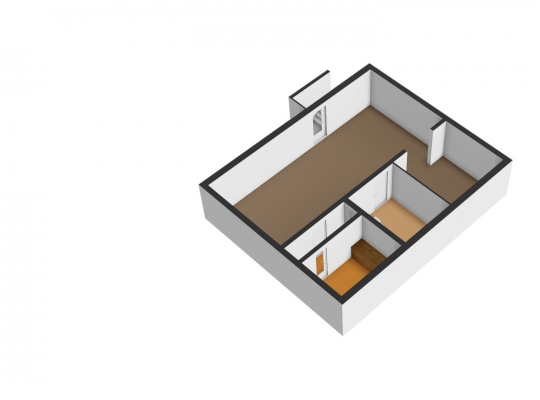 Er is een vaste trap naar de tweede verdieping, met een nokhoogte van bijna 4 meter. Hier bereikt u als eerste een lichte overloop (circa 3,42 x 2,73 meter incl. trap), die qua grootte geschikt is als werk-/studeerplek.
