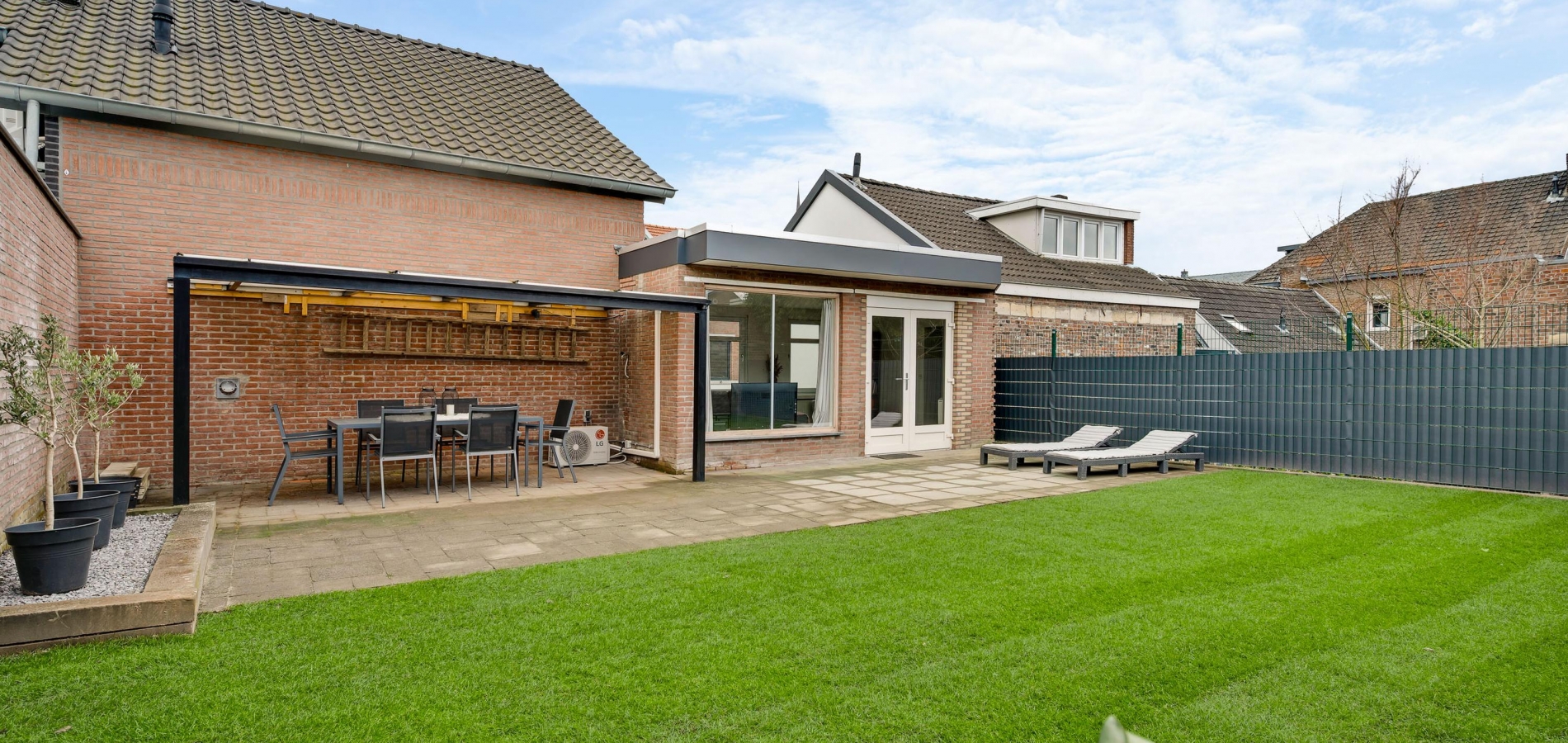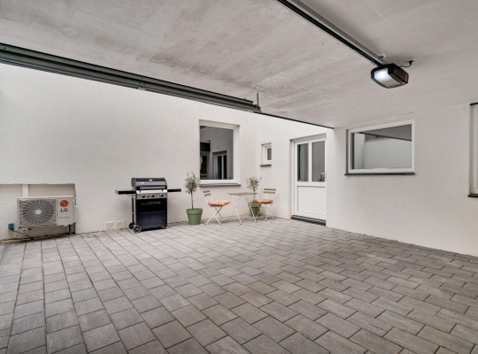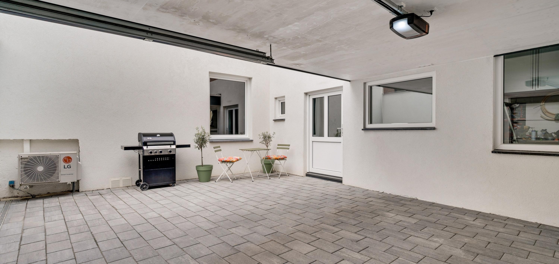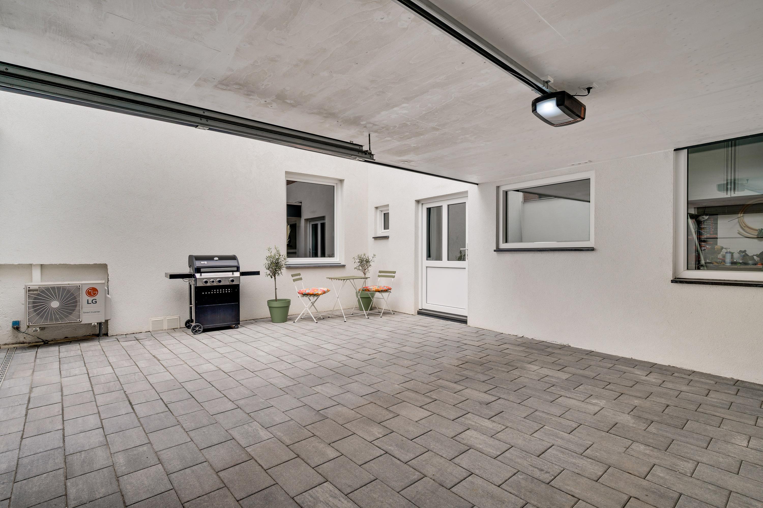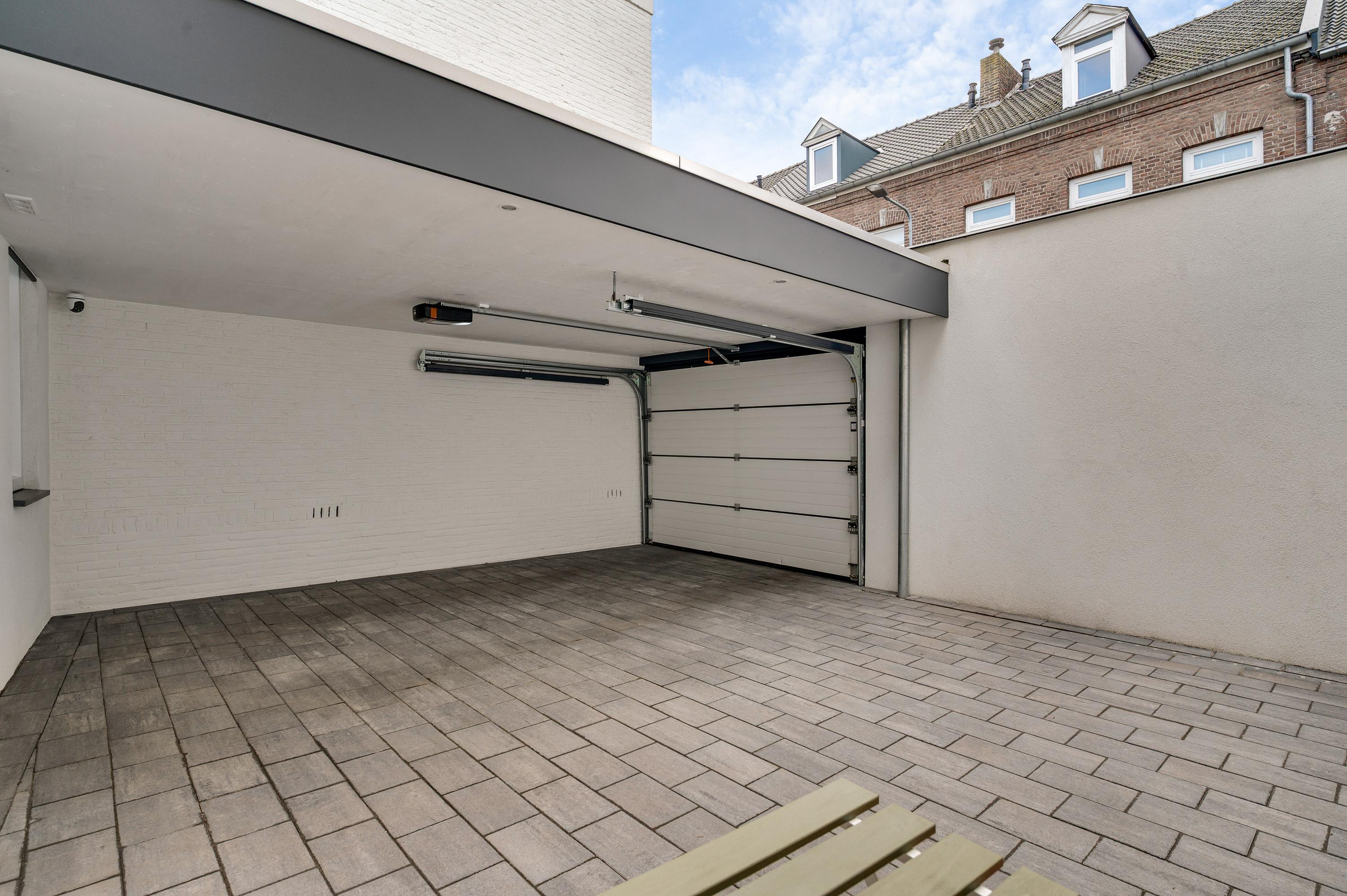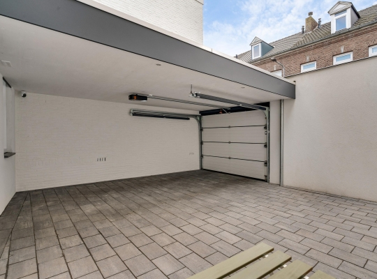 Zoeken naar een parkeerplek hoort tot het verleden, want de carport en binnenplaats zijn geschikt om twee auto’s op eigen terrein te plaatsen. De binnenplaats is thans in gebruik als terras en de carport (circa 5,07 x 3,62) heeft een elektrisch bedienbare poort naar de openbare weg.