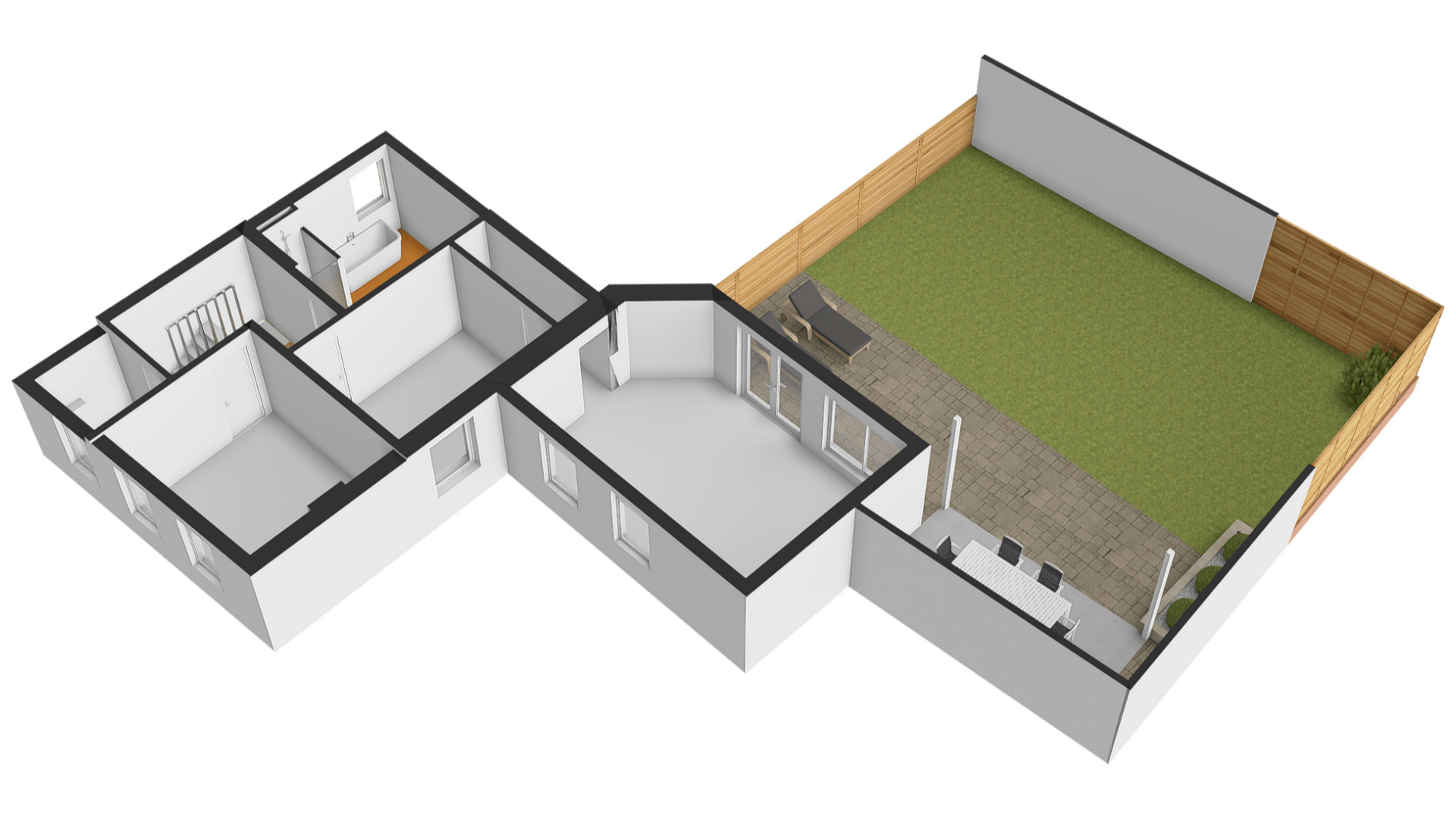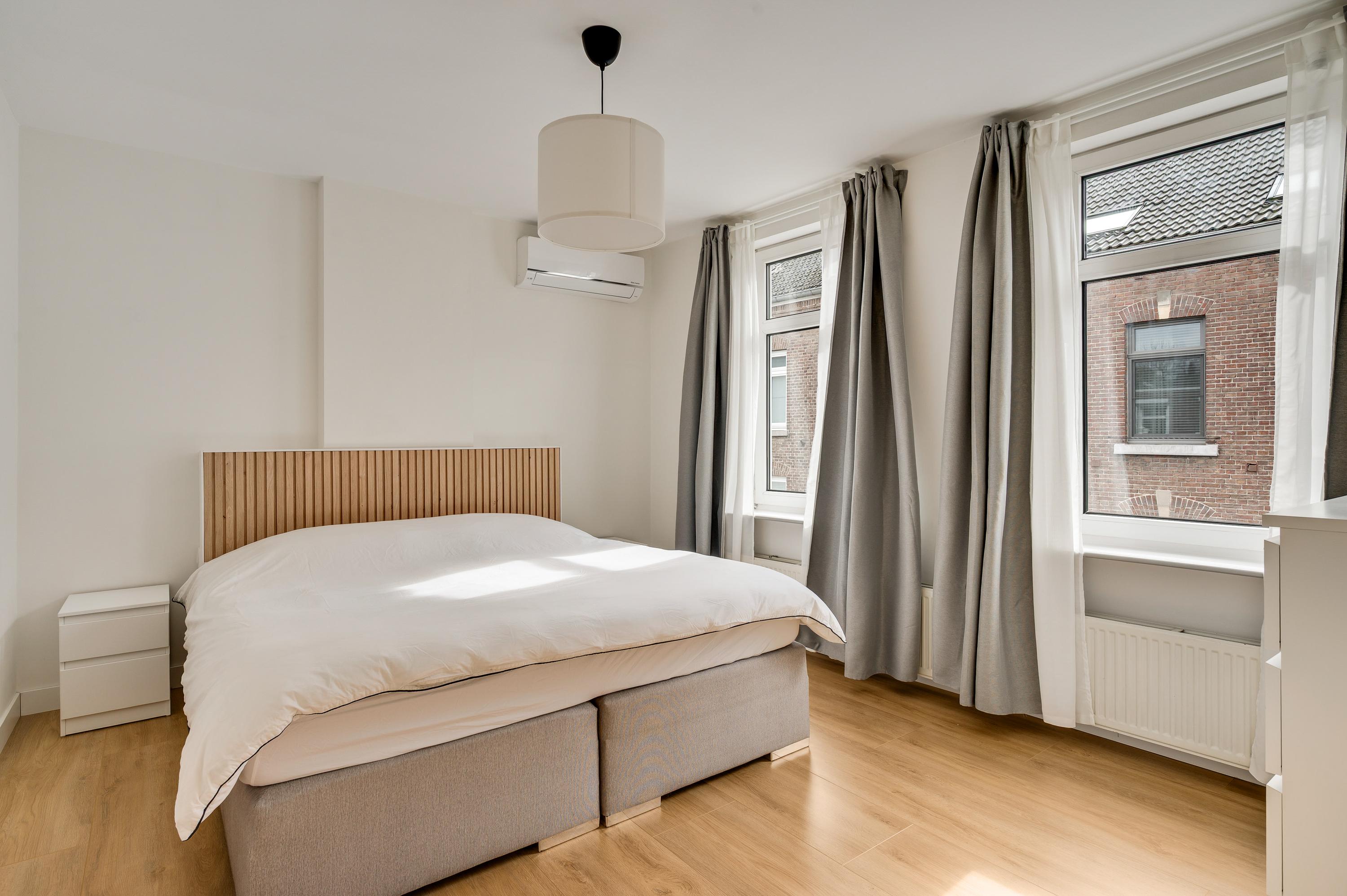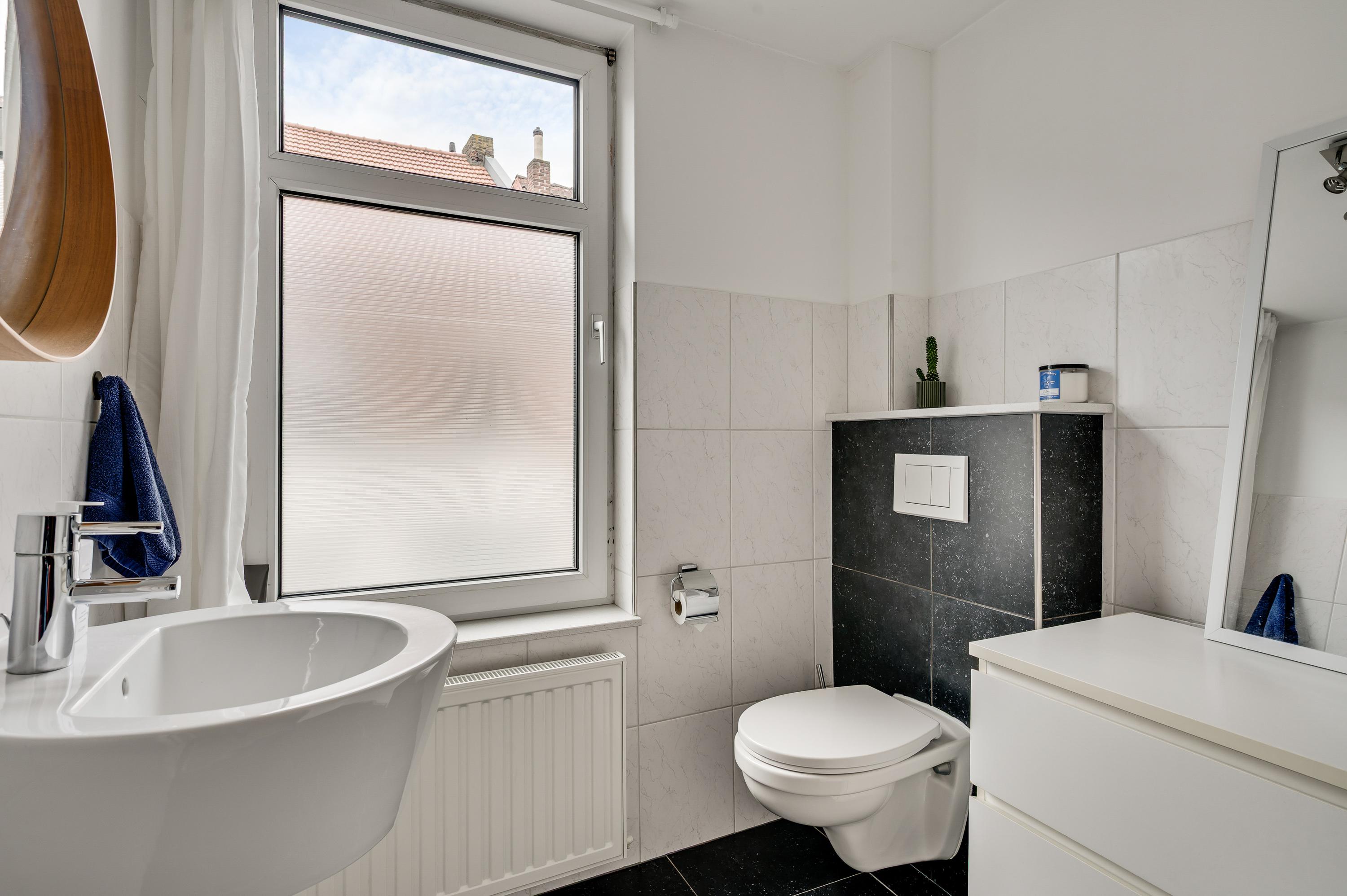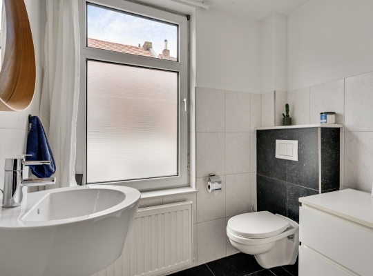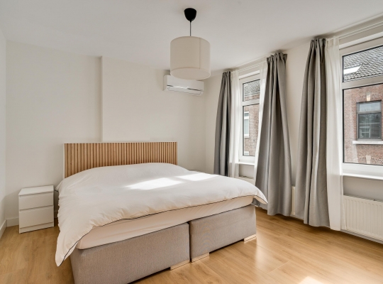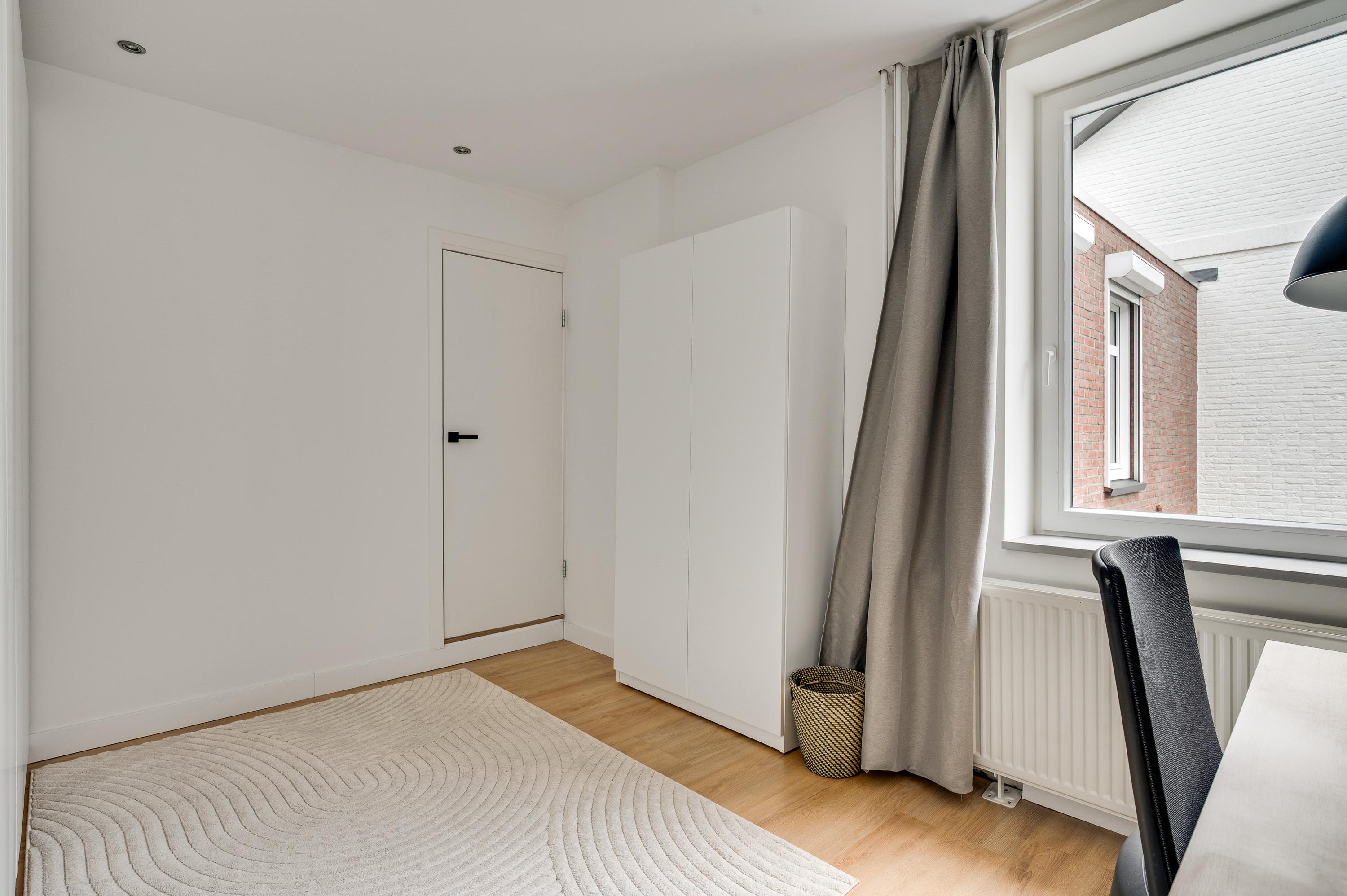 Slaapkamer I (circa 4,08 x 3,27) bevindt zich aan de voorzijde en slaapkamer II (circa 3,81 x 3,02) heeft een groot raam aan de kant van de binnenplaats. Vanuit deze kamer is er toegang tot een portaal, met de trap naar de woonkeuken op de begane grond. Ook heeft u vanaf hier toegang tot de woonkamer (circa 6,12 x 4,16/3,01), met openslaande deuren naar de tuin. Dit is een verrassend grote buitenruimte, zeker gezien de ligging in hartje Meerssen. Kiest u voor het overdekte terras of voor een plekje in de zon?
