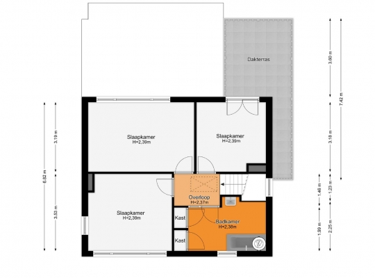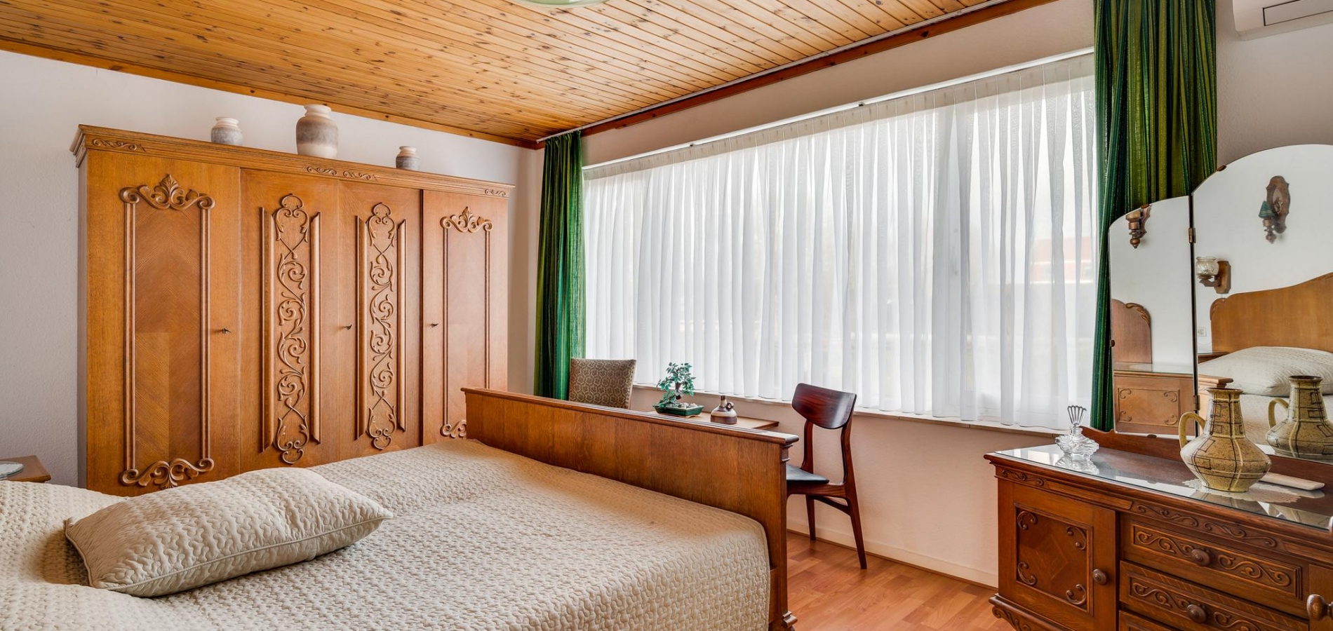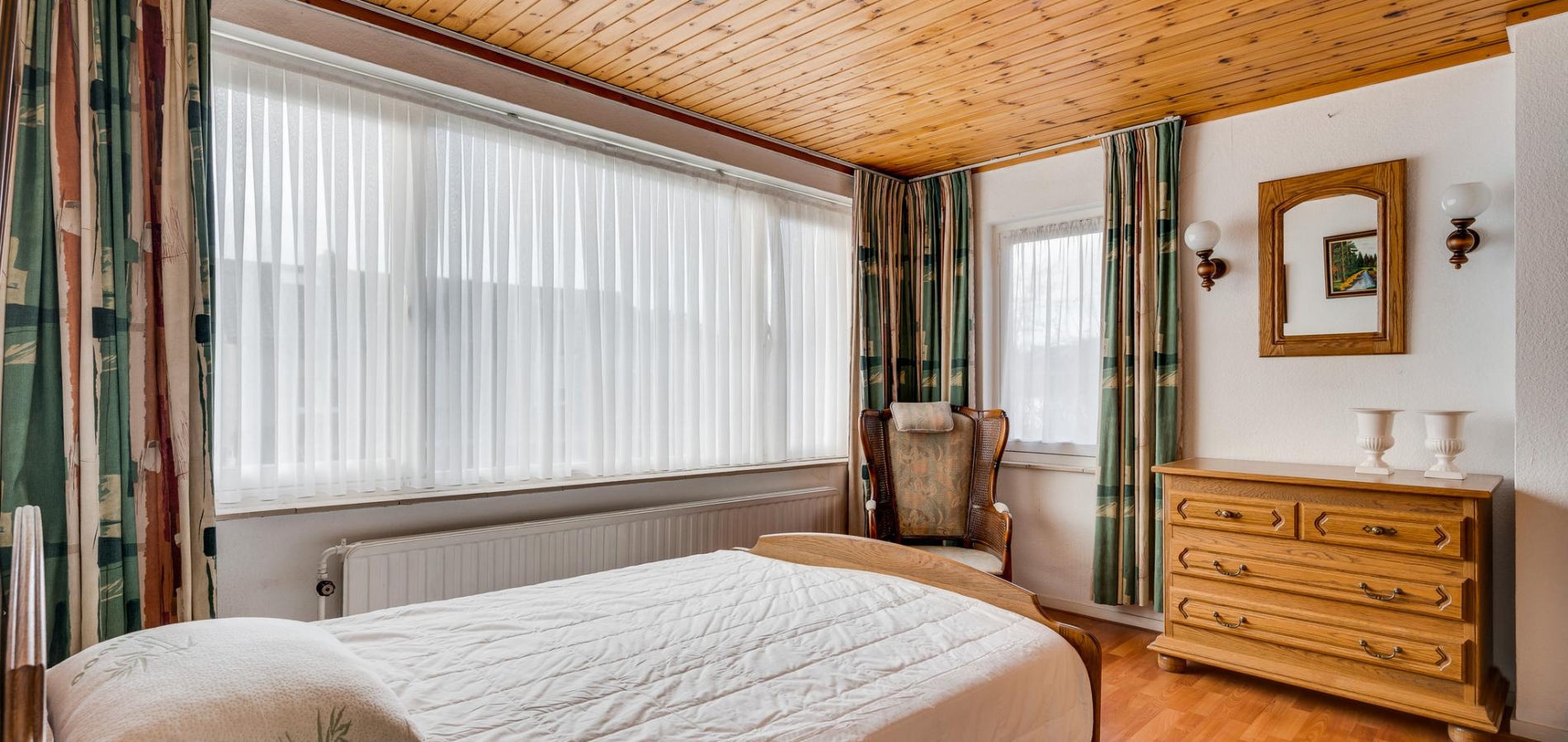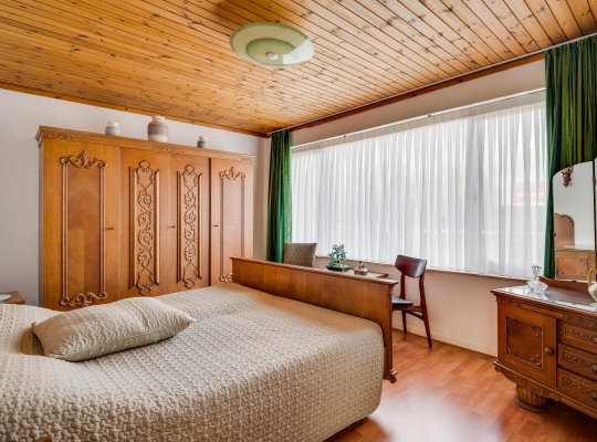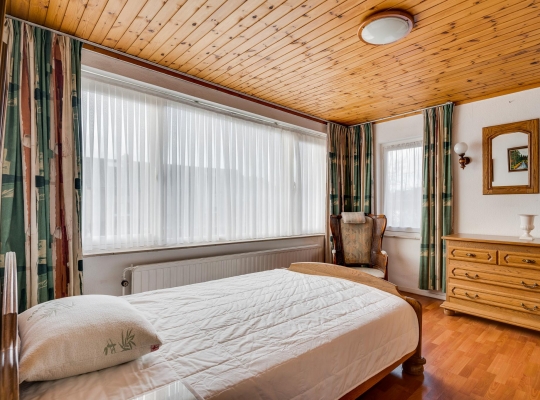 Vanaf de overloop zijn drie slaapkamers en de ruime badkamer te bereiken. Slaapkamer I (3,85 x 3,53) bevindt zich aan de voorzijde en in slaapkamer II (4,87 x 3,19) hangt een airco-unit. Deze slaapkamer bevindt zich, net als slaapkamer III (3,19 x 3,18), aan de achterzijde.