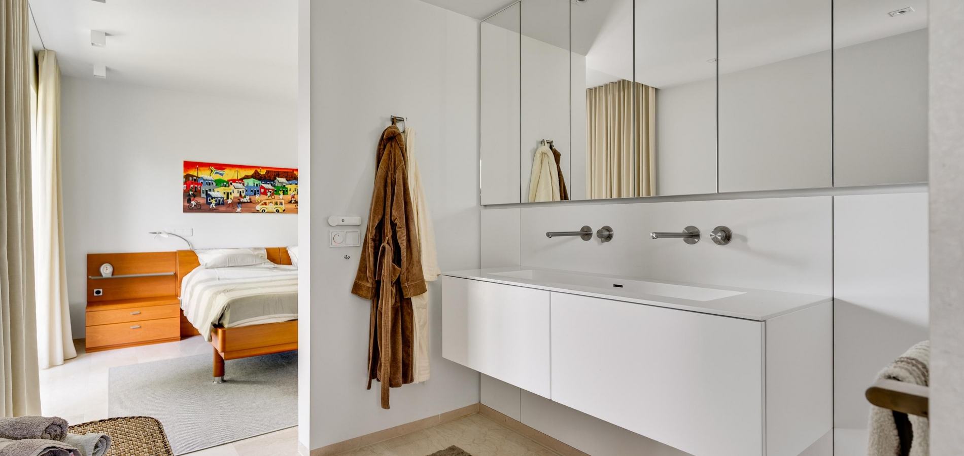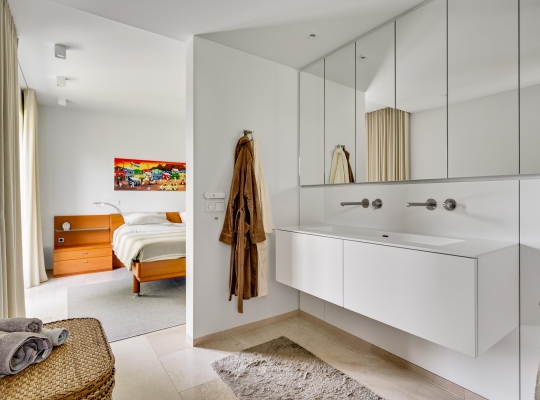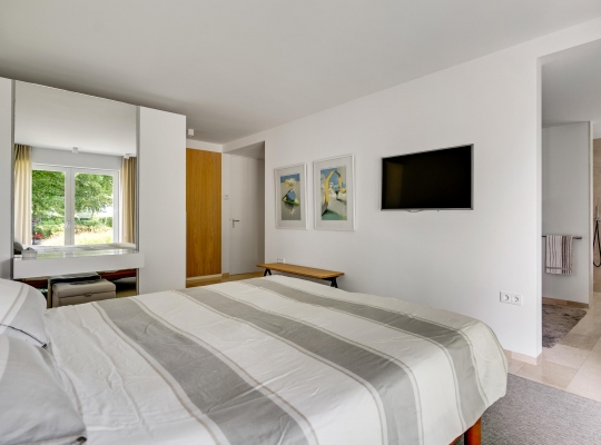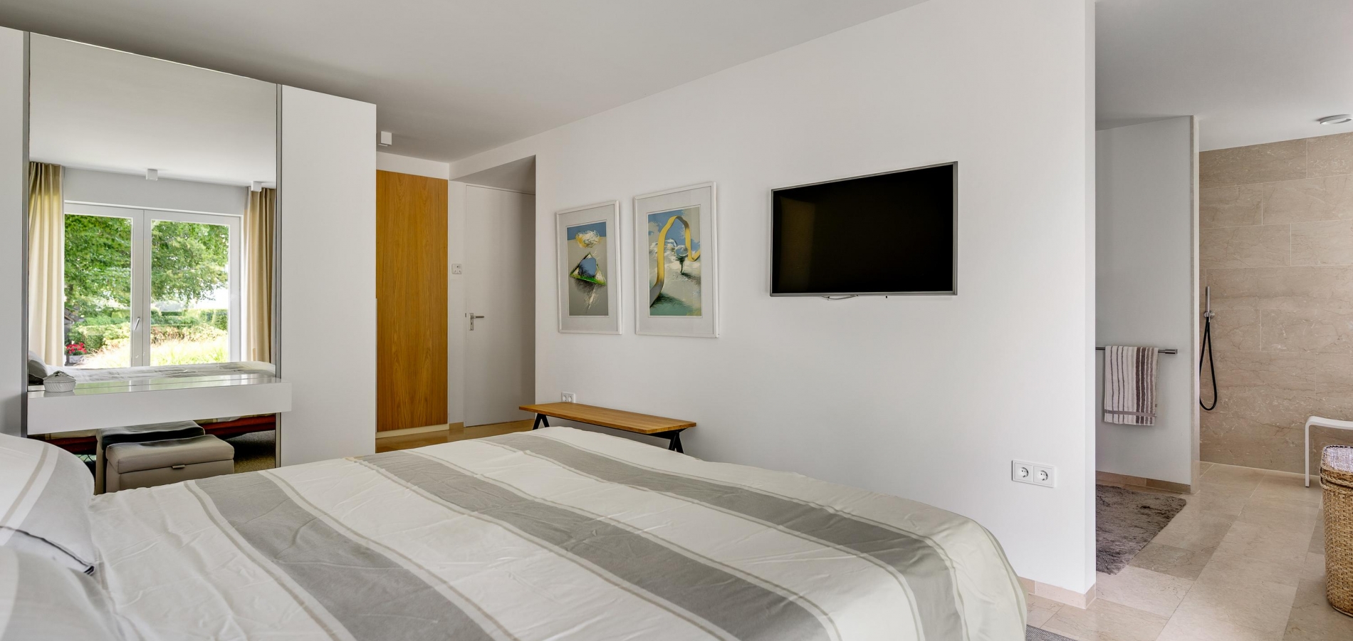 Master bedroom met een kleedruimte en badkamer op de begane grond