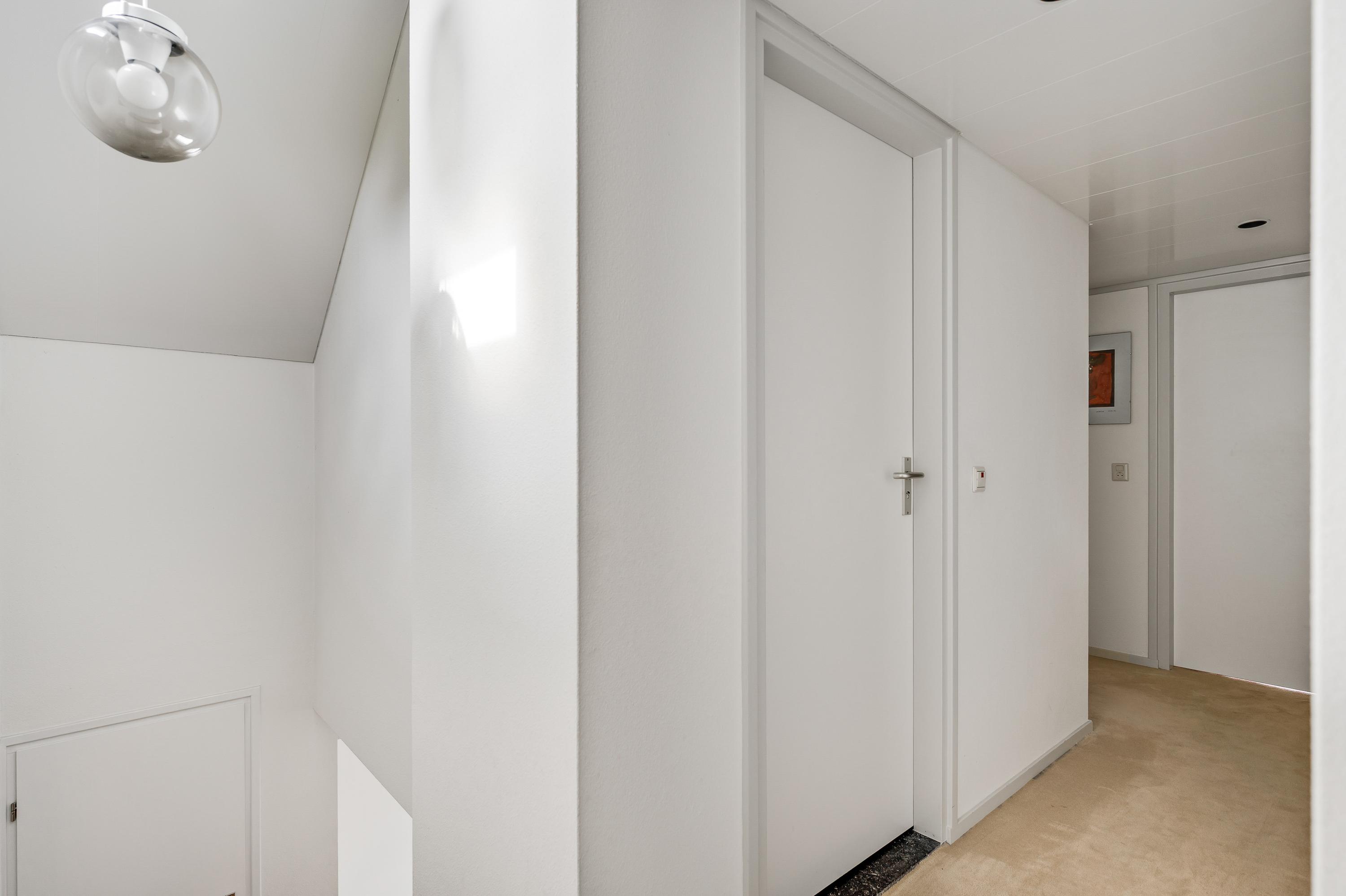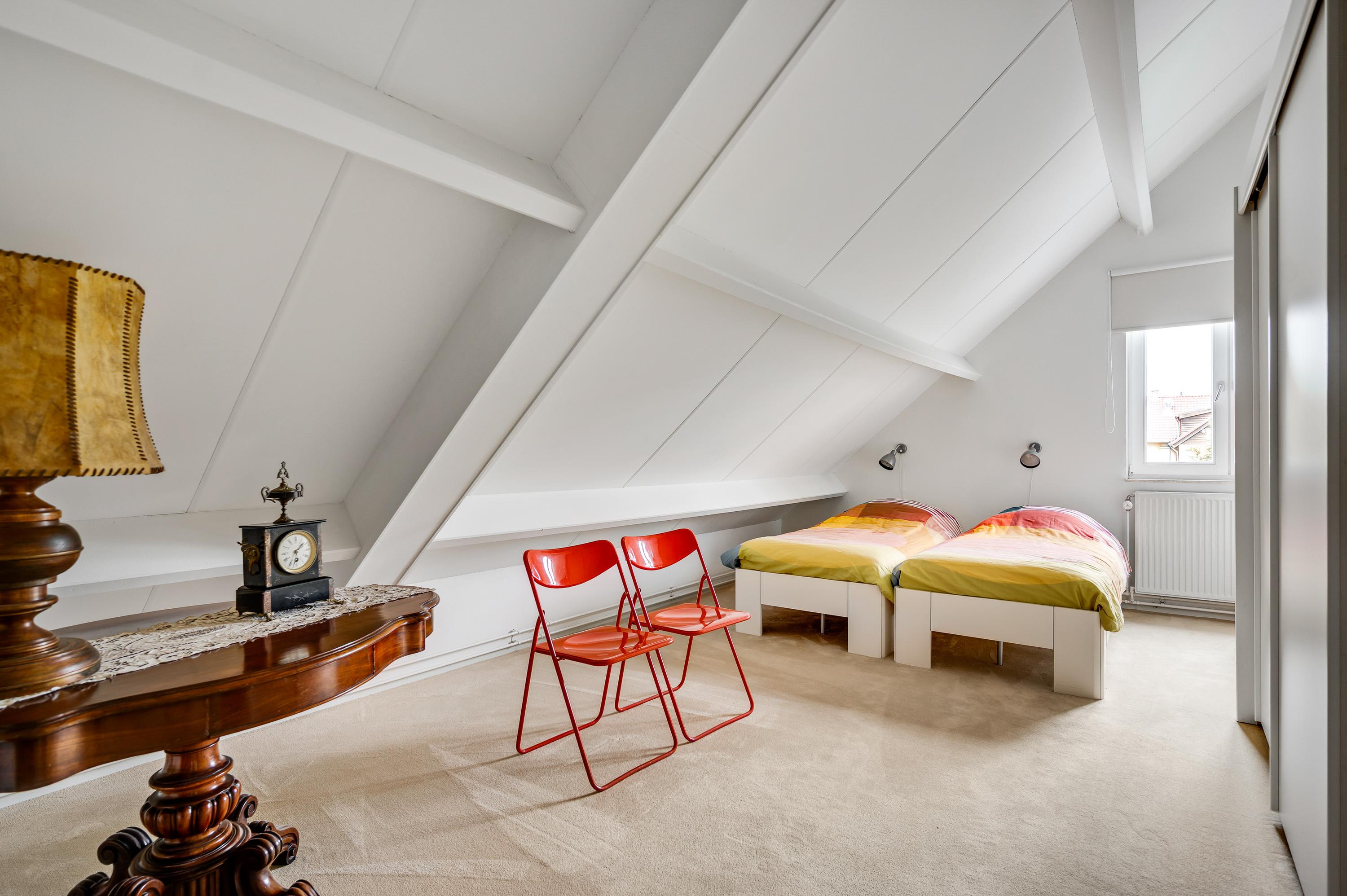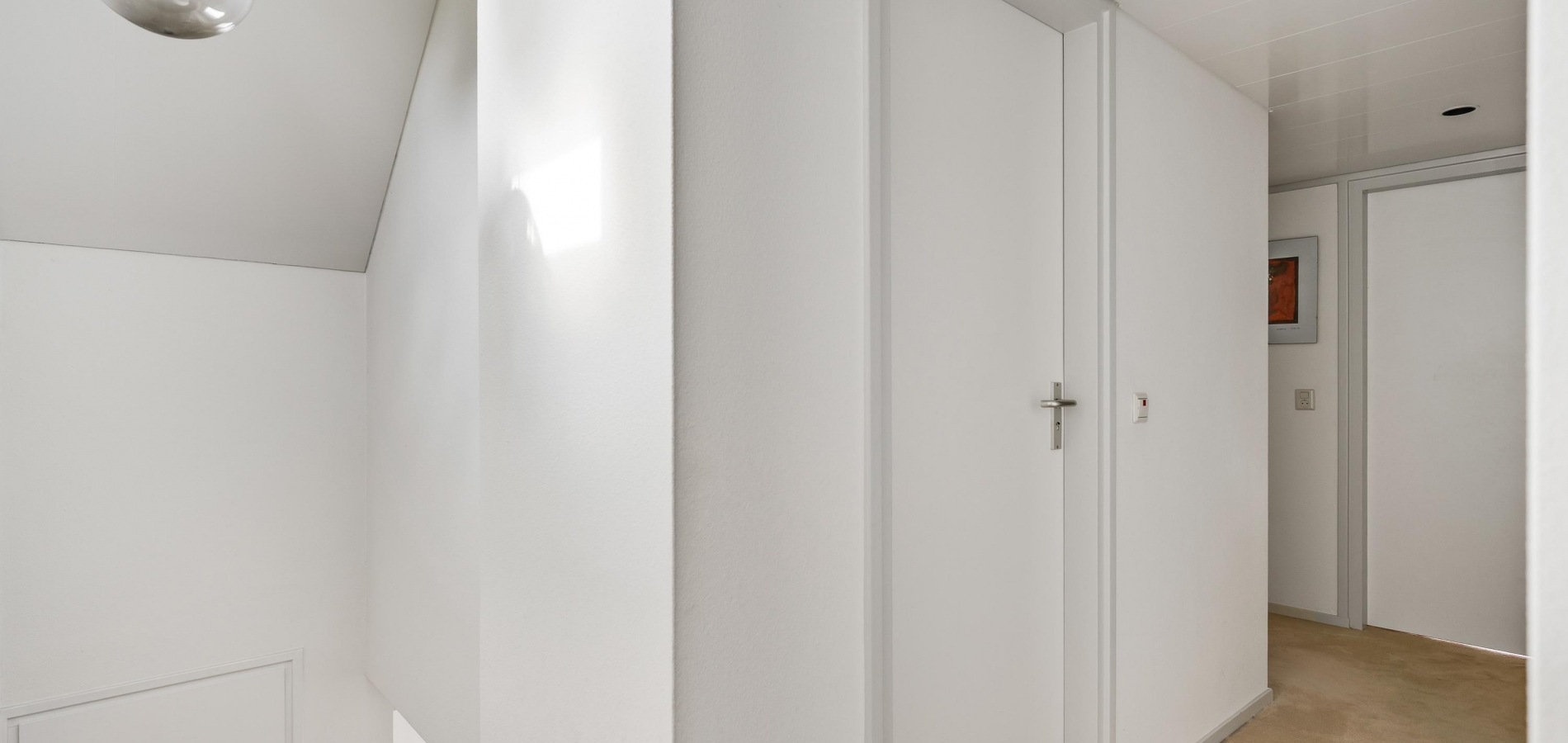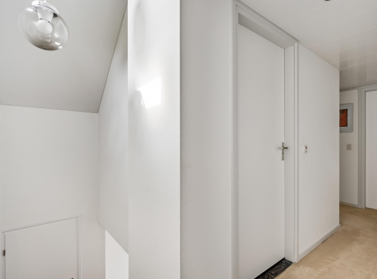 Volg de hardhouten bordestrap vanuit de hal, richting de eerste verdieping. Vanaf de overloop heeft u toegang tot maar liefst vier slaapkamers, een badkamer en een berging in de schuinte van het dak.