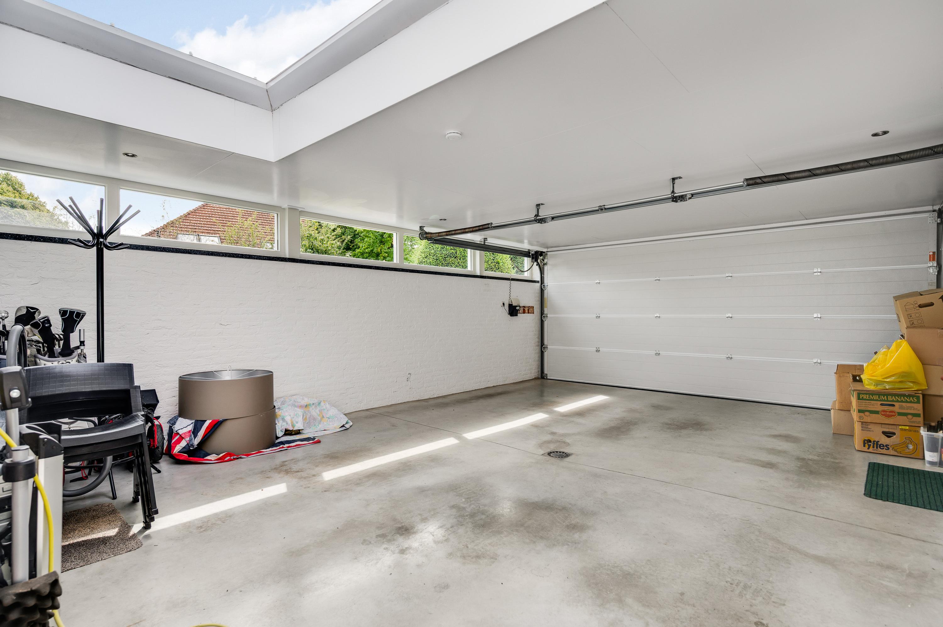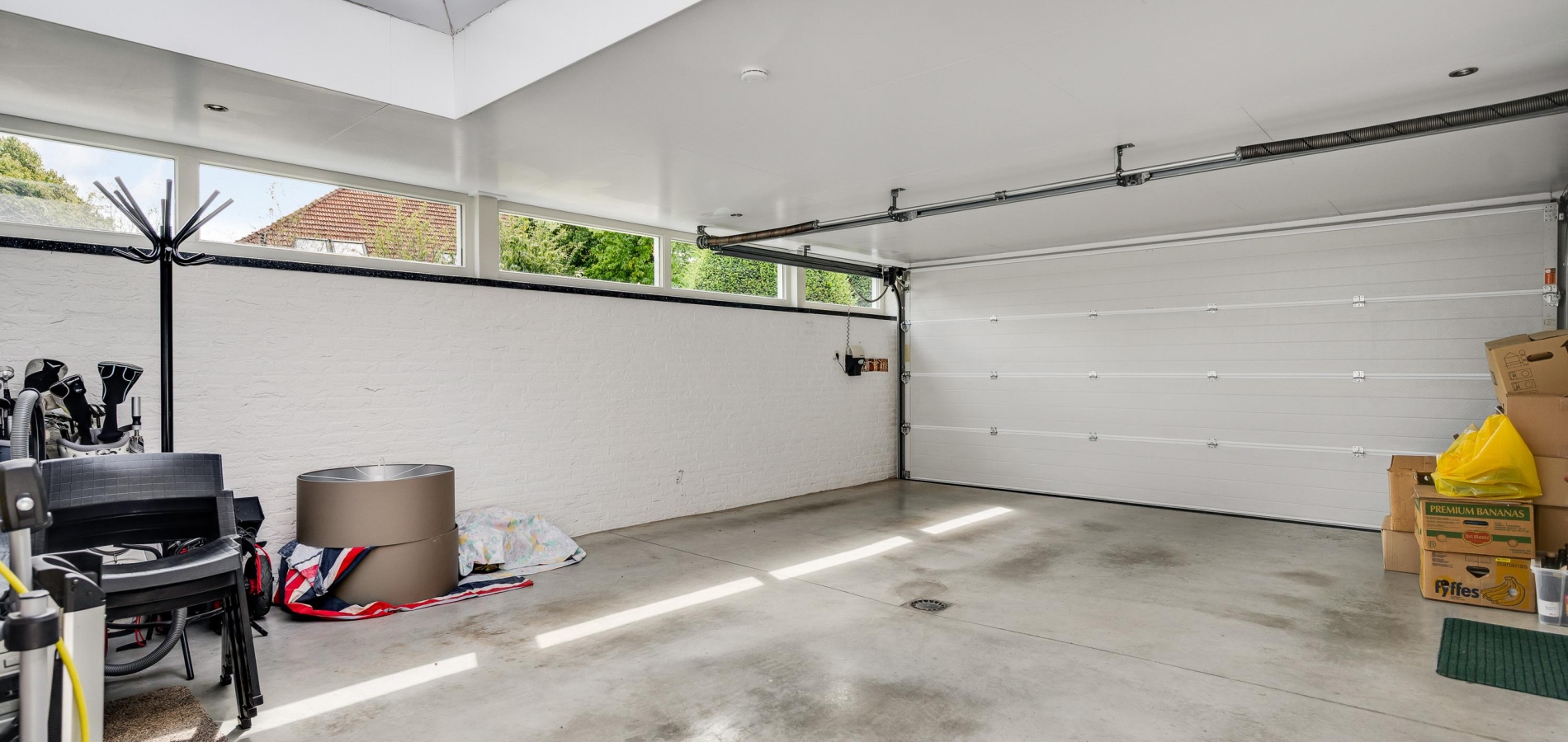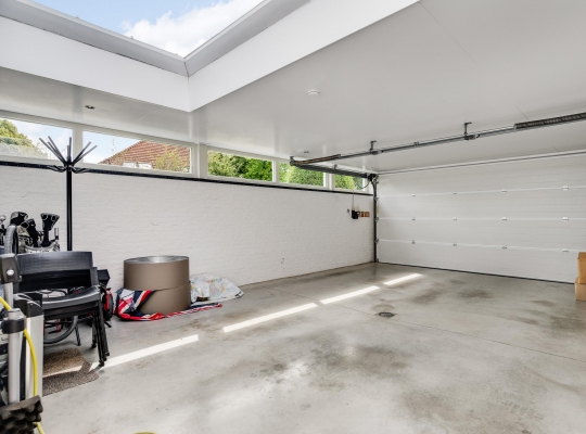 Vanuit de bijkeuken heeft u toegang tot de ruime garage (circa 7,30 x 5,02) met een brede, elektrisch bedienbare sectionaalpoort en een grote lichtkoepel. In het verlengde van de garage is een berging/hobbyruimte (circa 3,90 x 5,02), met dubbele deuren naar de achtertuin.