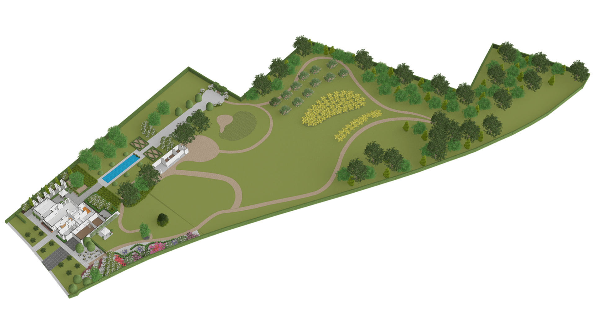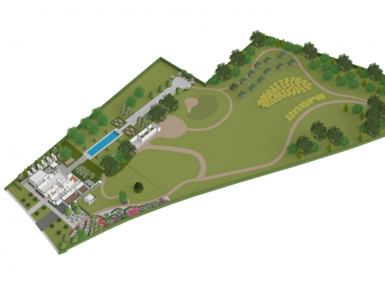 Deze exclusieve, levensloopbestendige villa staat op maar liefst 13.240 m2 eigen grond. Aan de voorzijde, voor de garage, is parkeergelegenheid op eigen terrein en de zeer ruime achtertuin heeft de uitstraling van een park. Meerdere terrassen, prachtige bomen, het veld met zonnebloemen en de boomgaard maken duidelijk dat dit een unieke plek in het Heuvelland is. Voor golfliefhebbers is en een eigen putting-green en het stalgebouw (totaal circa 30 m2 exclusief overkapping) is de droom van een kook-/bakliefehebber.
