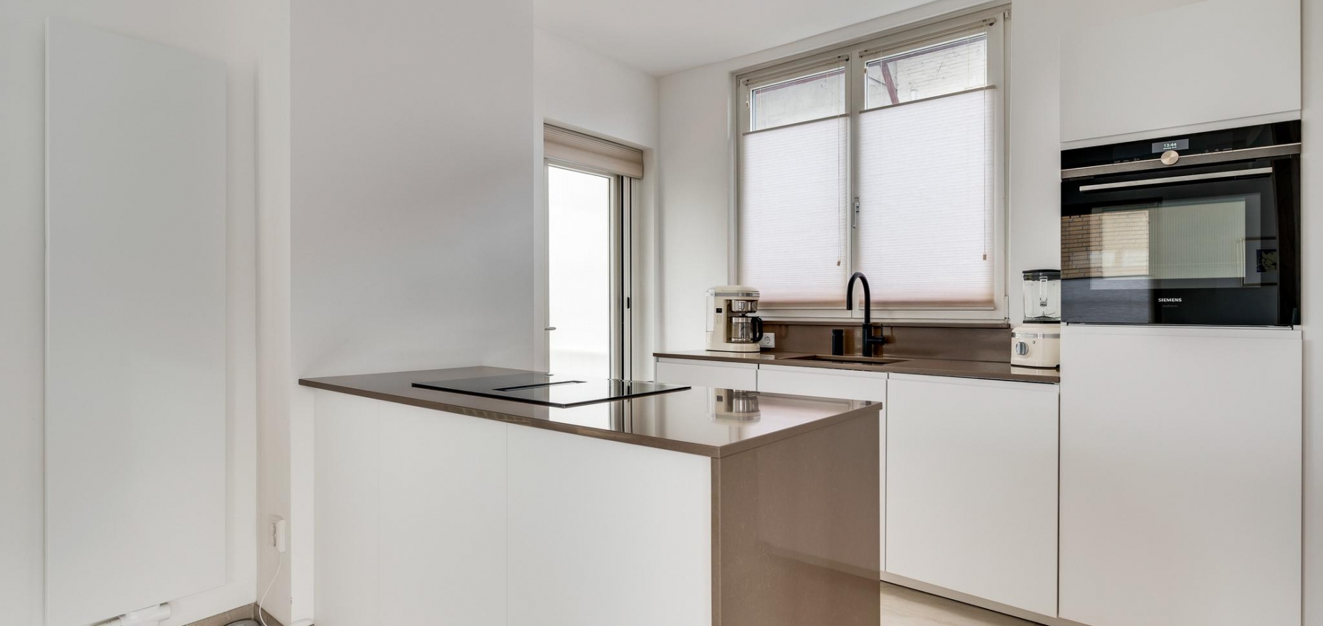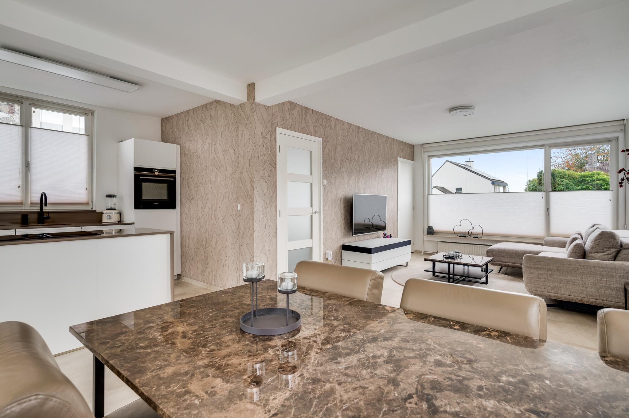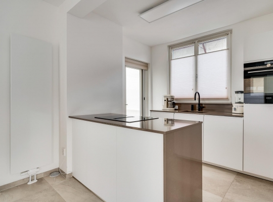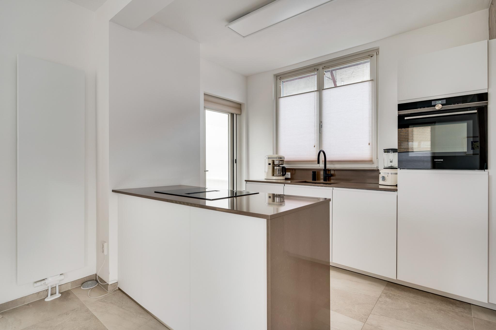 In de keuken (circa 2,97 x 2,18) staat een stijlvolle opstelling met een kookeiland en een wandopstelling met het spoelgedeelte. Deze keuken, geplaatst in 2021, is voorzien van diverse inbouwapparatuur: een inductie kookplaat met afzuiging, een vaatwasser, combi-oven en een koelkast. Met een hapje en een drankje loopt u zo naar het balkon (circa 6,45 x 2,50) met een overkapping en prachtig uitzicht naar de tuin.