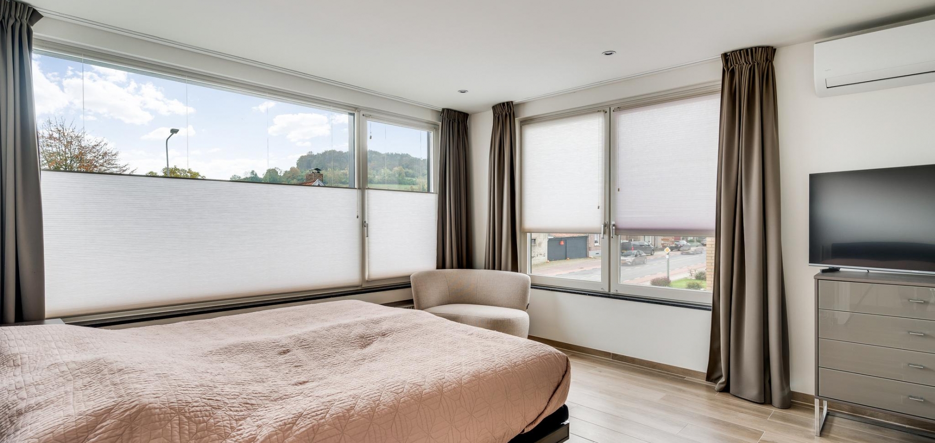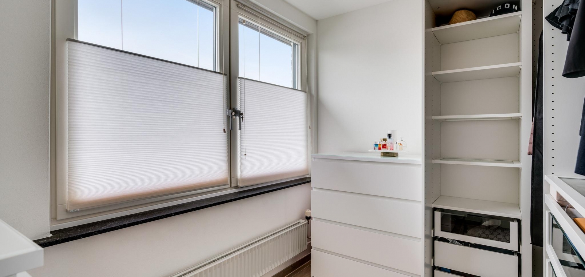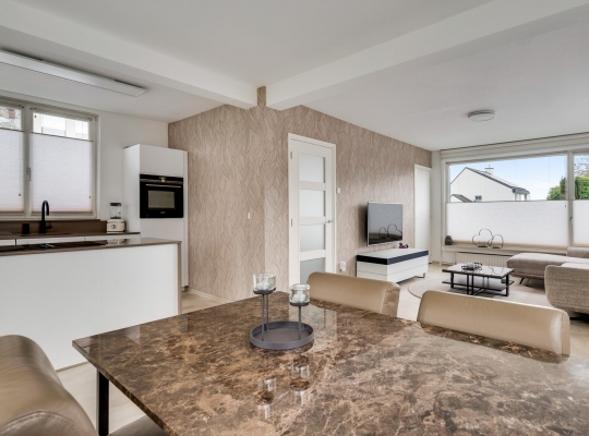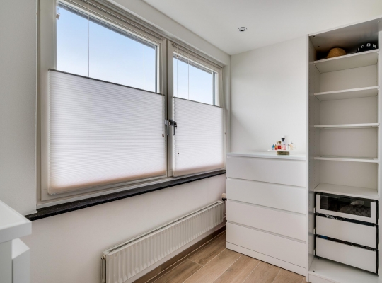 Ook de eerste verdieping is fraai verbouwd, waardoor u al snel kan starten met inrichten en stylen. Op bijna de hele verdieping ligt een keramische tegelvloer met houtpatroon en de muren zijn, net als de plafonds, gestuct. Alles klopt; van de inbouwverlichting in de plafonds tot de vensterbanken van hardsteen.