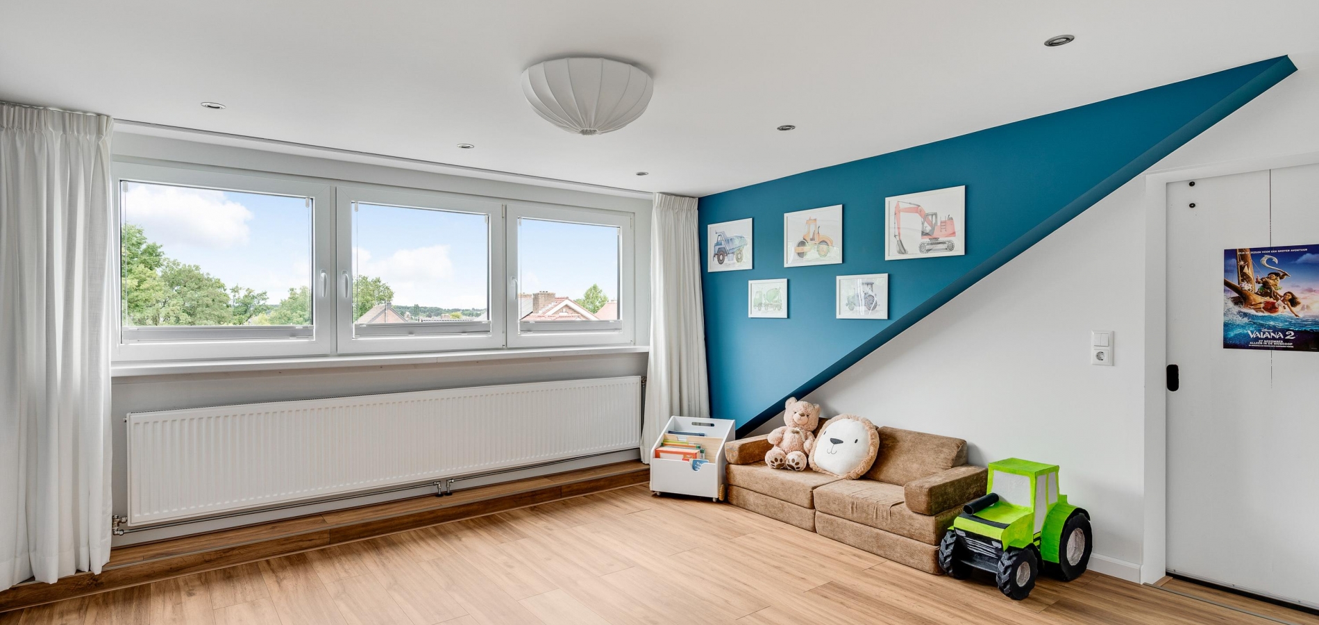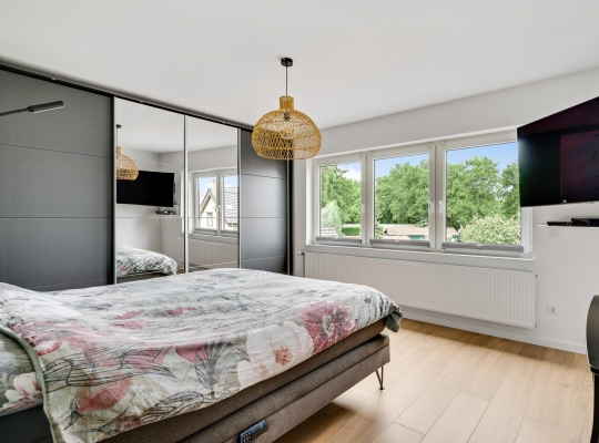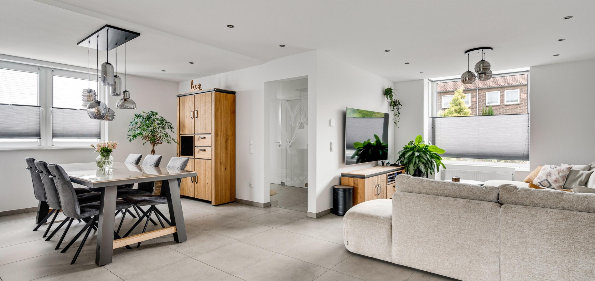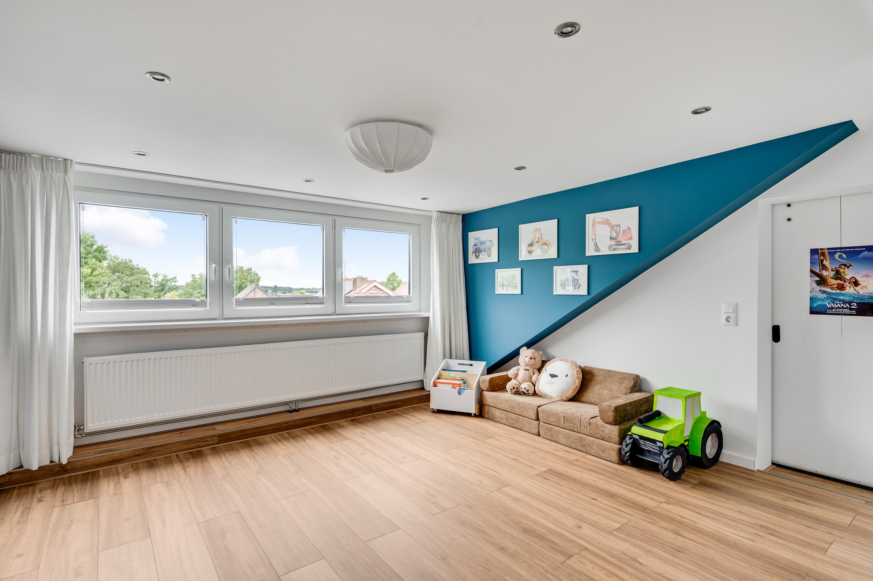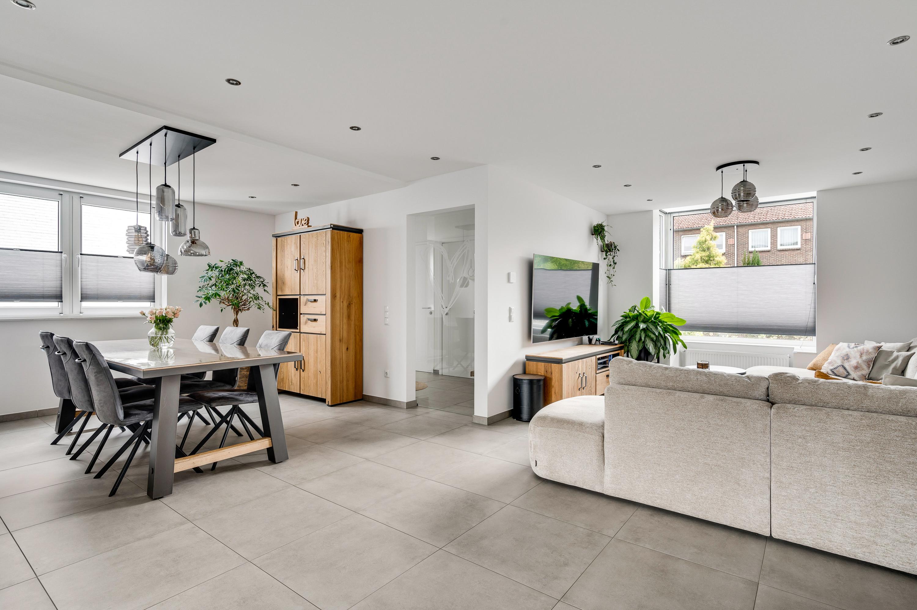 De L-vormige woonkamer, met een erker bij het zitgedeelte, heeft een oppervlakte van circa 37 m2. Er is niet alleen plek voor een grote hoekbank en een tv-meubel, maar ook voor een 6-persoons eettafel en een servieskast in deze fantastische leefruimte.