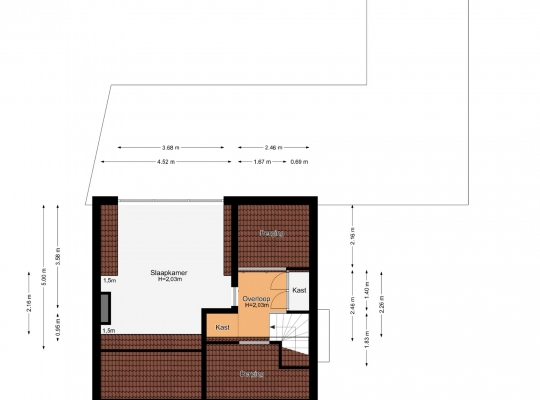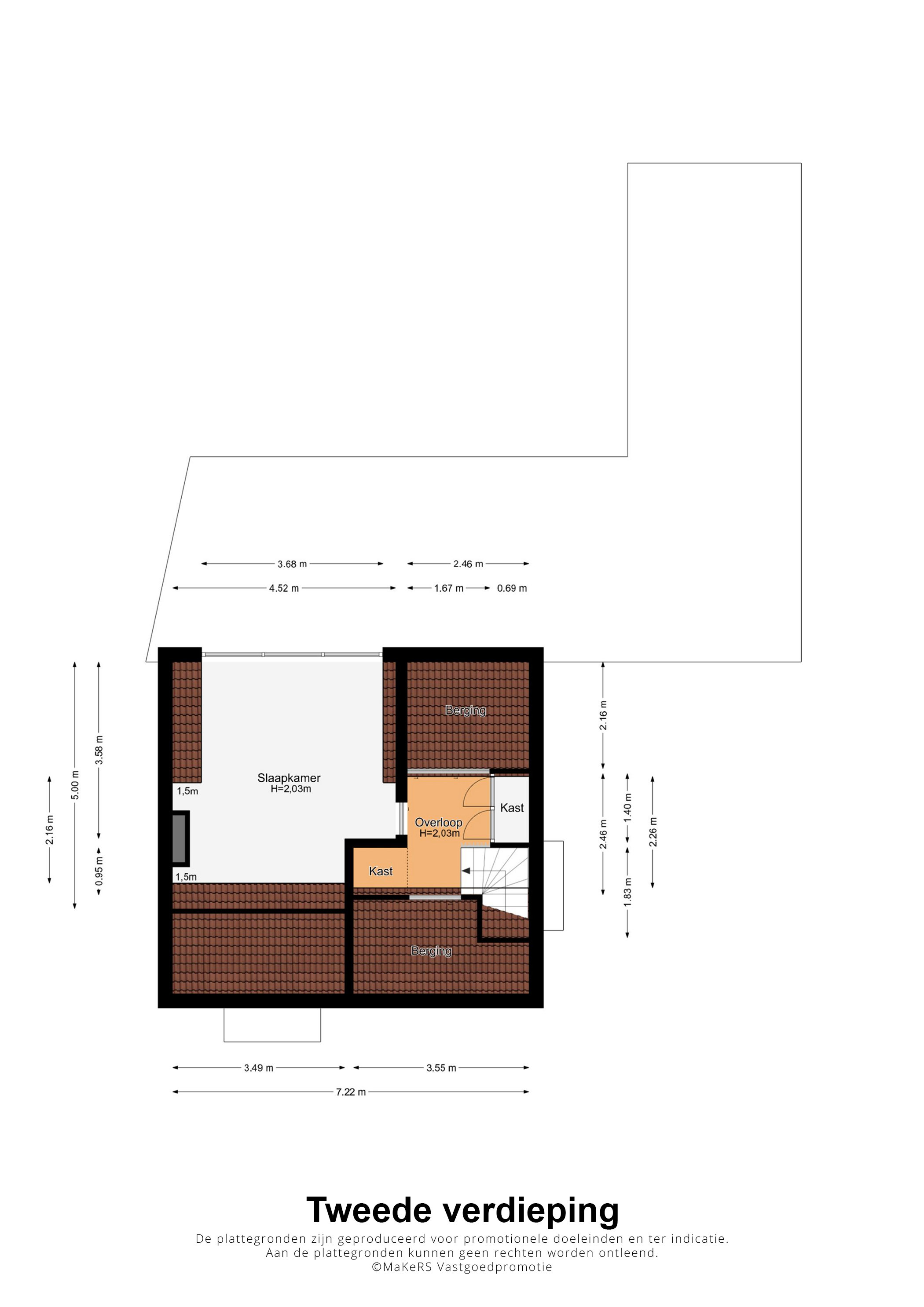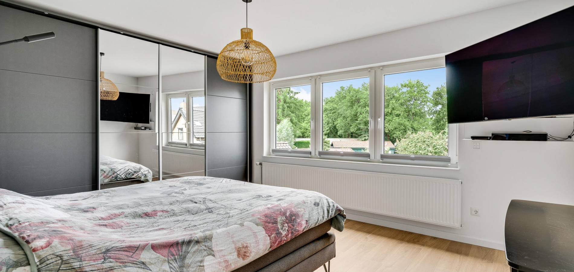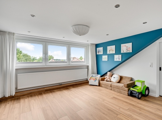 Aan de achterzijde is een grote dakkapel geplaatst, waardoor de zolder is getransformeerd in een volwaardige verdieping. Op de overloop ziet u kasten en bergingen, in de schuinten van het dak. Ook is hier slaapkamer III (circa 5,00 x 3,68), met inbouwverlichting en een mooie laminaatvloer.