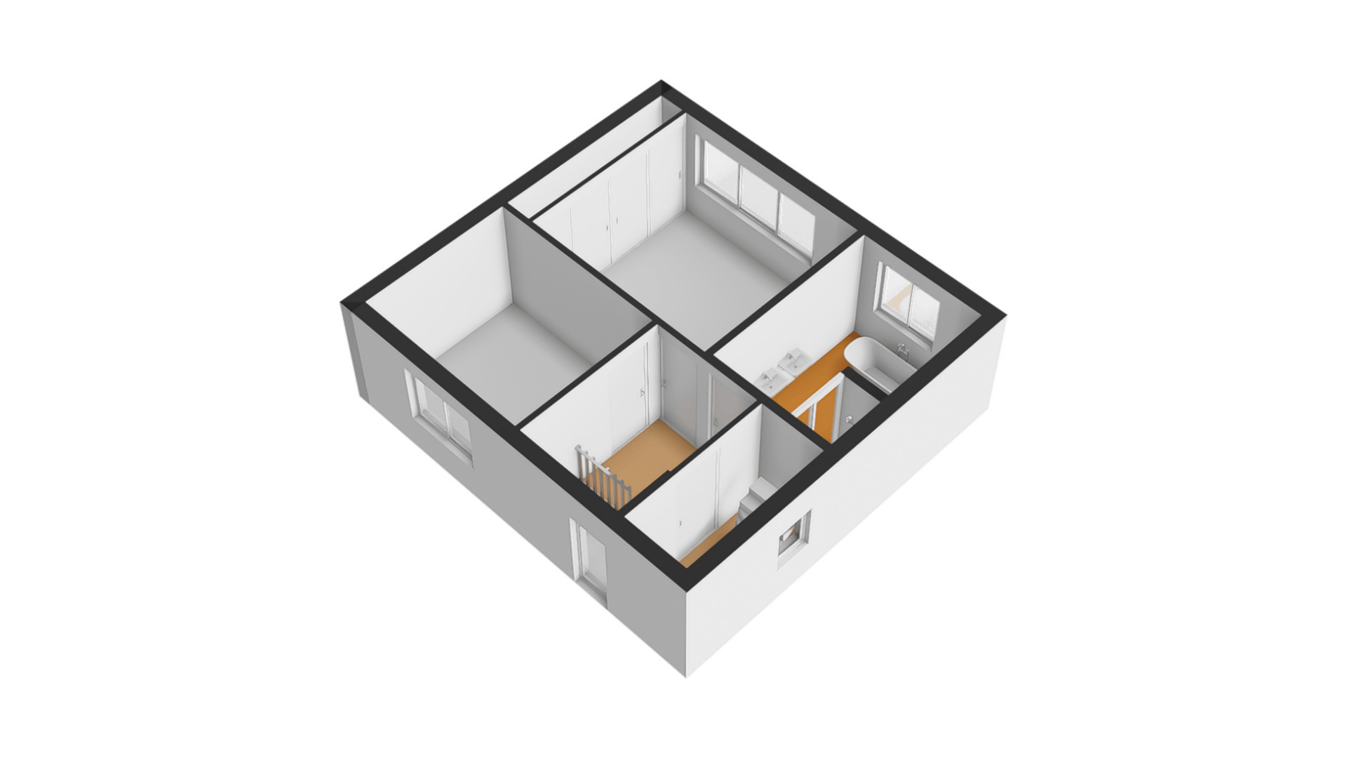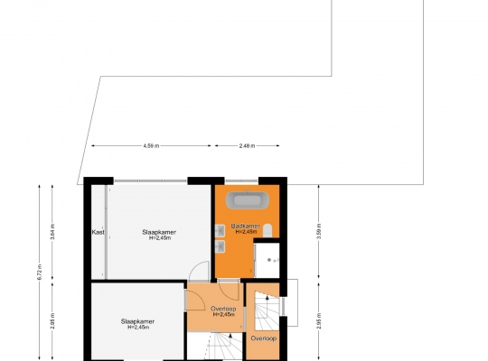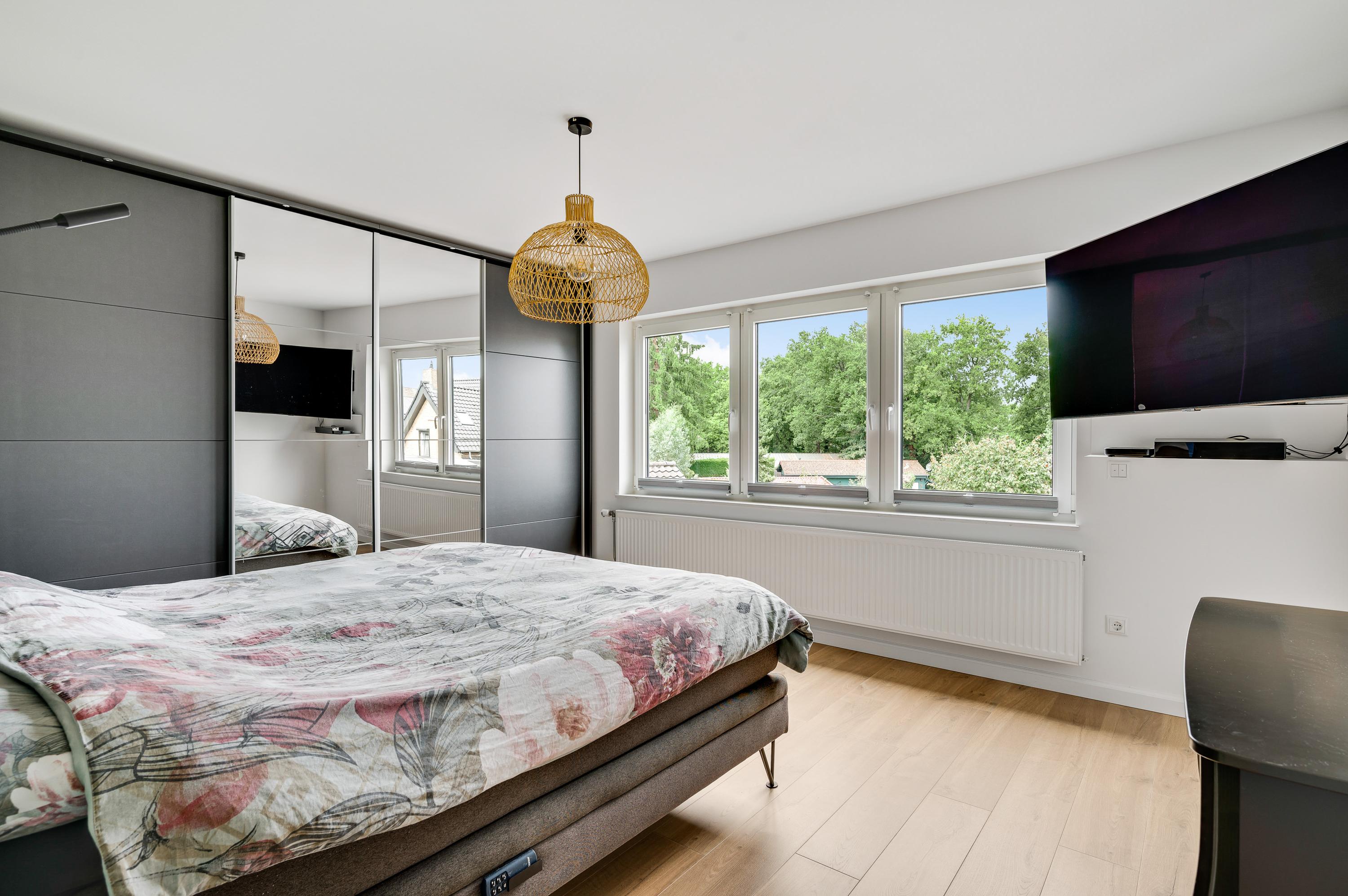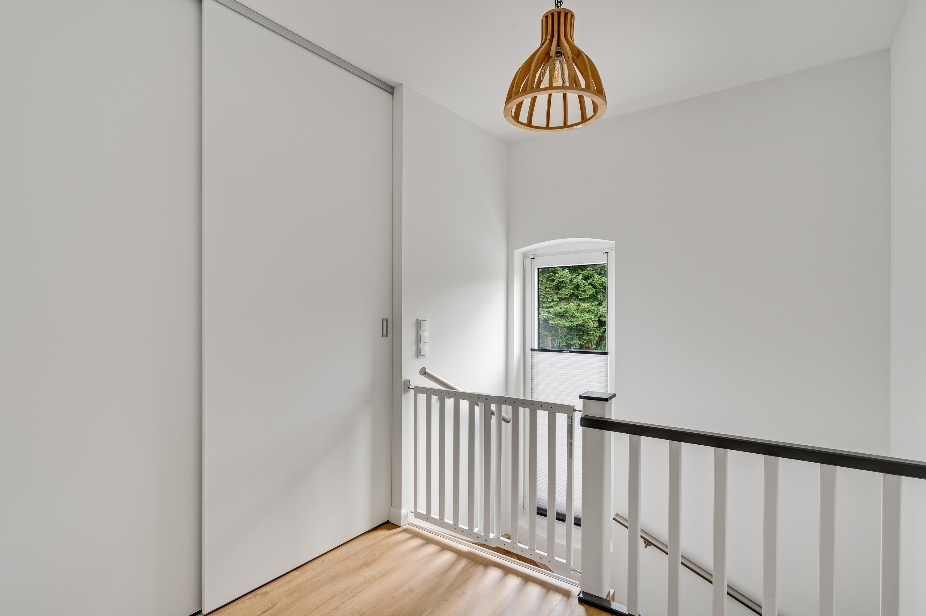 Vanaf de overloop heeft u toegang tot twee slaapkamers, de badkamer een tweede overloop met de vaste trap naar de tweede verdieping. De vloeren, wanden en plafonds zijn fraai afgewerkt en ook hier zijn de kunststof kozijnen voorzien van HR++ glas.