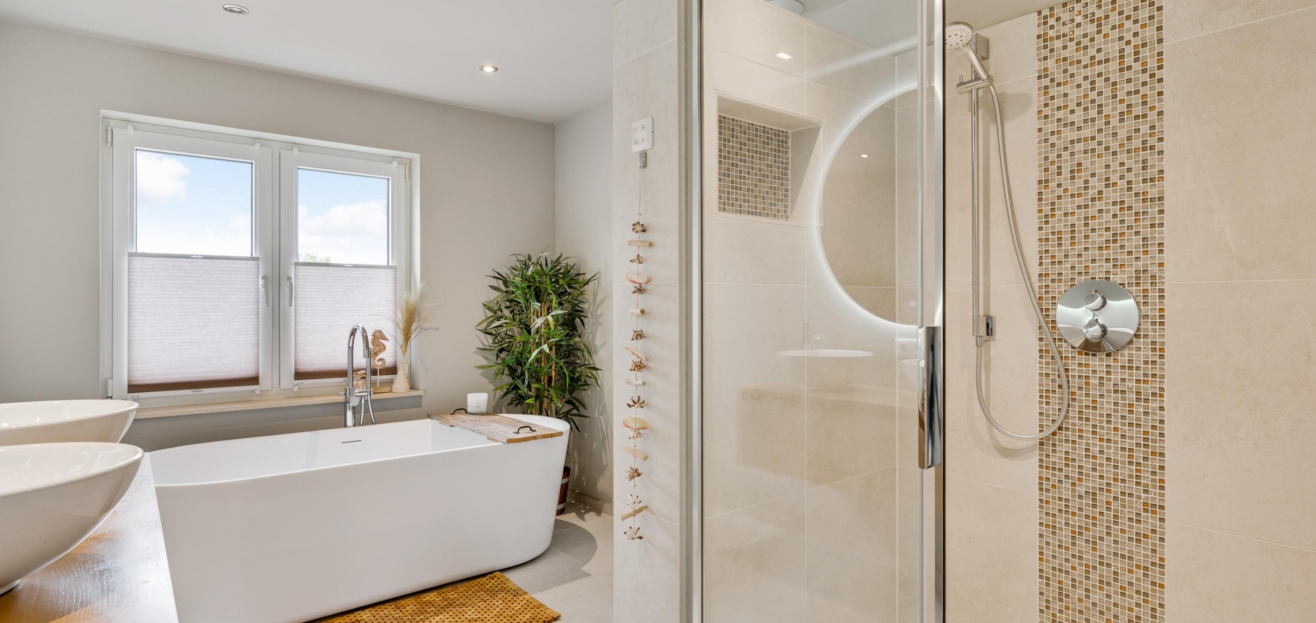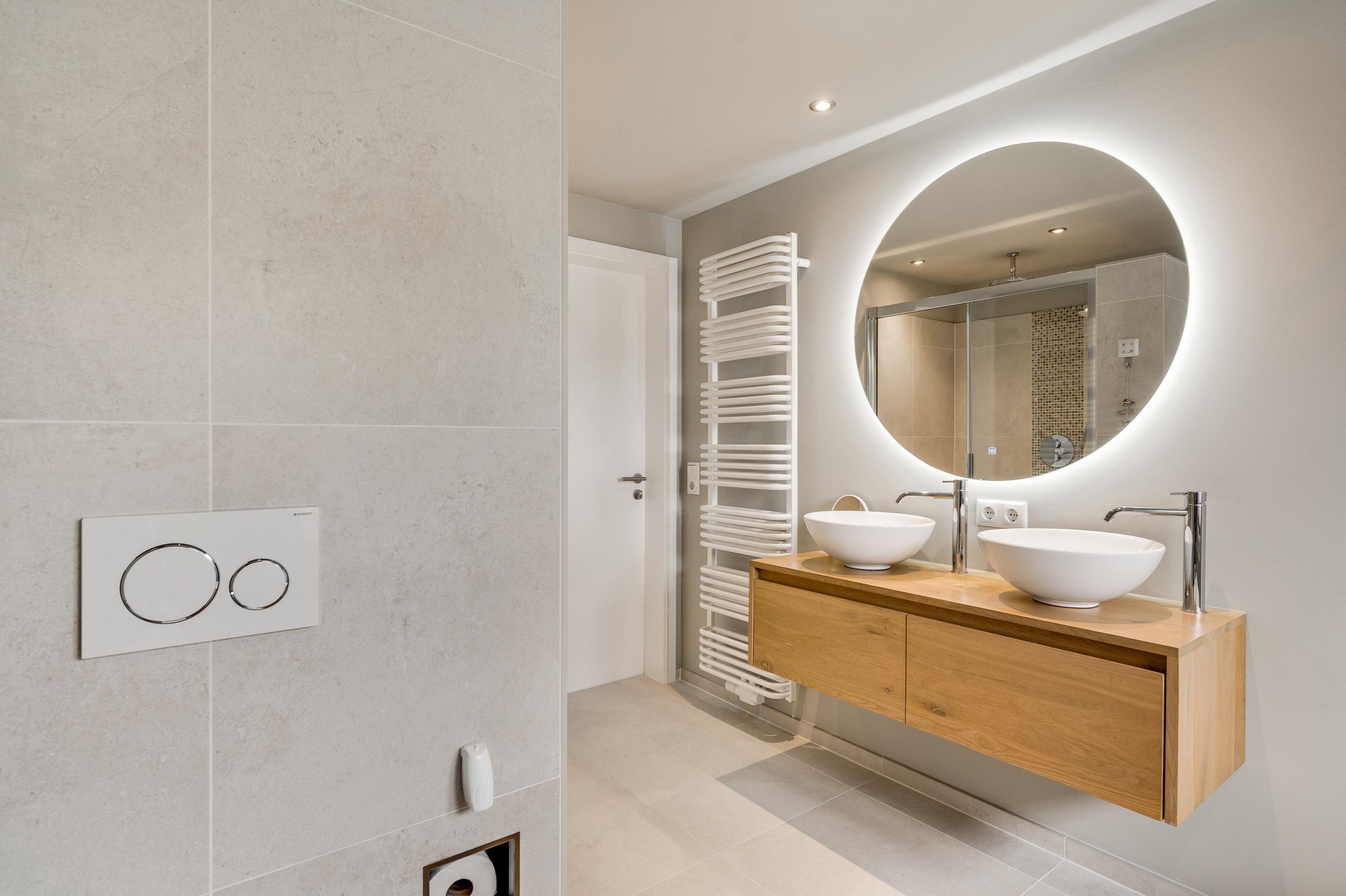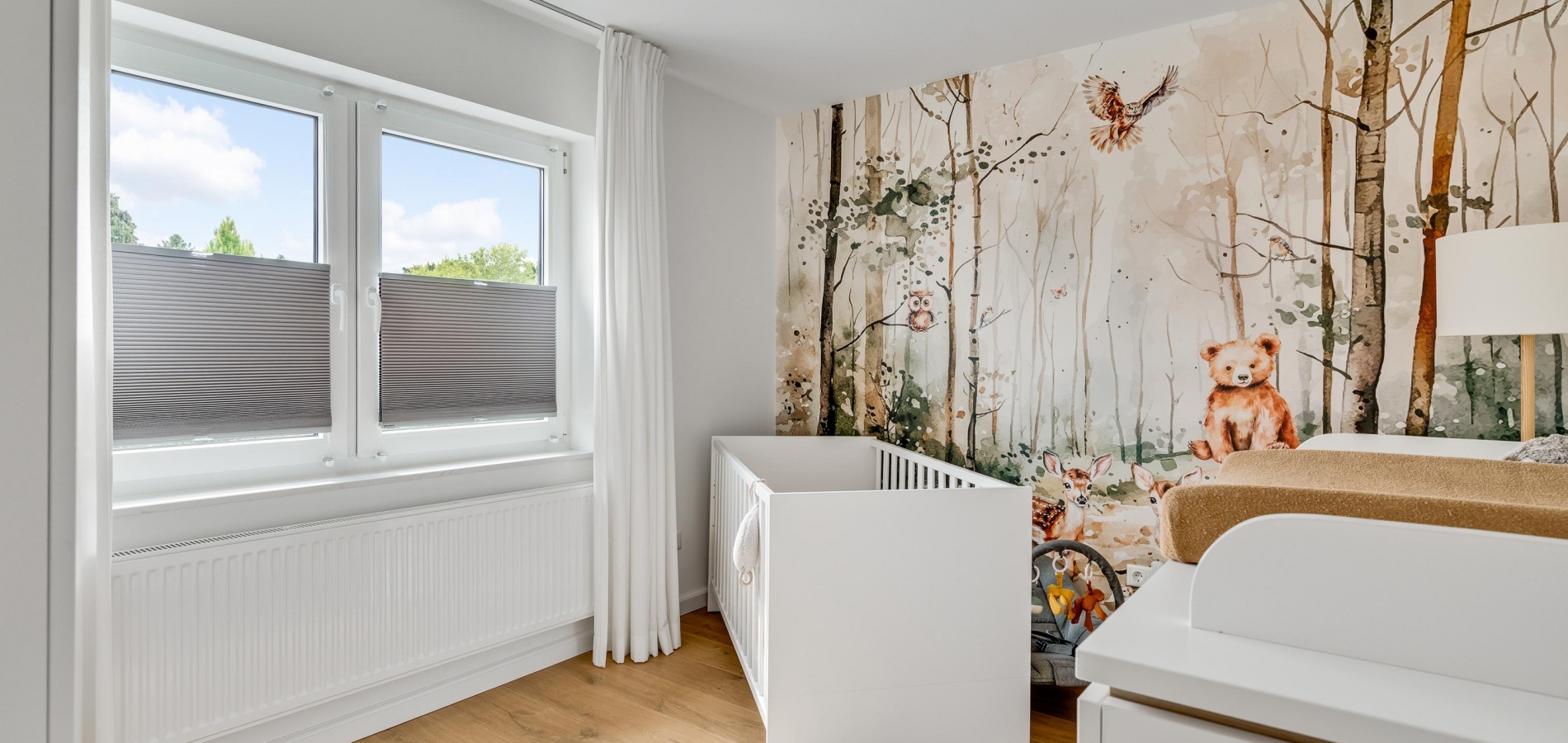 Slaapkamer I (circa 3,55 x 2,95), ingericht als kinderkamer, is aan de voorzijde. Aan de achterzijde is slaapkamer II (circa 4,59 x 3,64). De badkamer (circa 3,59 x 2,48) is het toppunt van luxe, met een vrijstaand bad en een inloopdouche. Verder zijn er een tweede toilet en een houten badmeubel, waarop twee waskommen staan. Aan alles is gedacht: van een kastje voor de toiletrollen tot een handdoekenradiator.