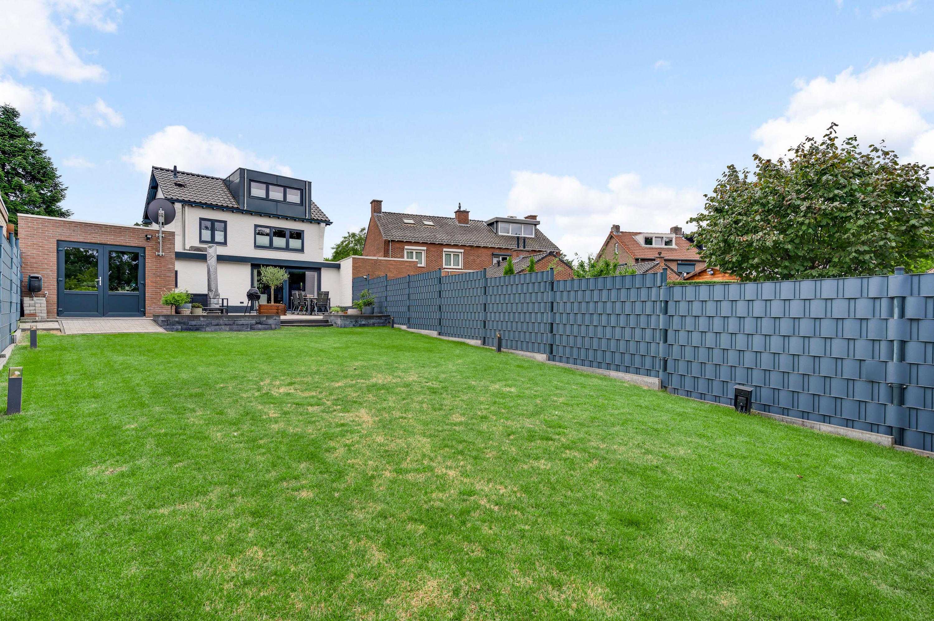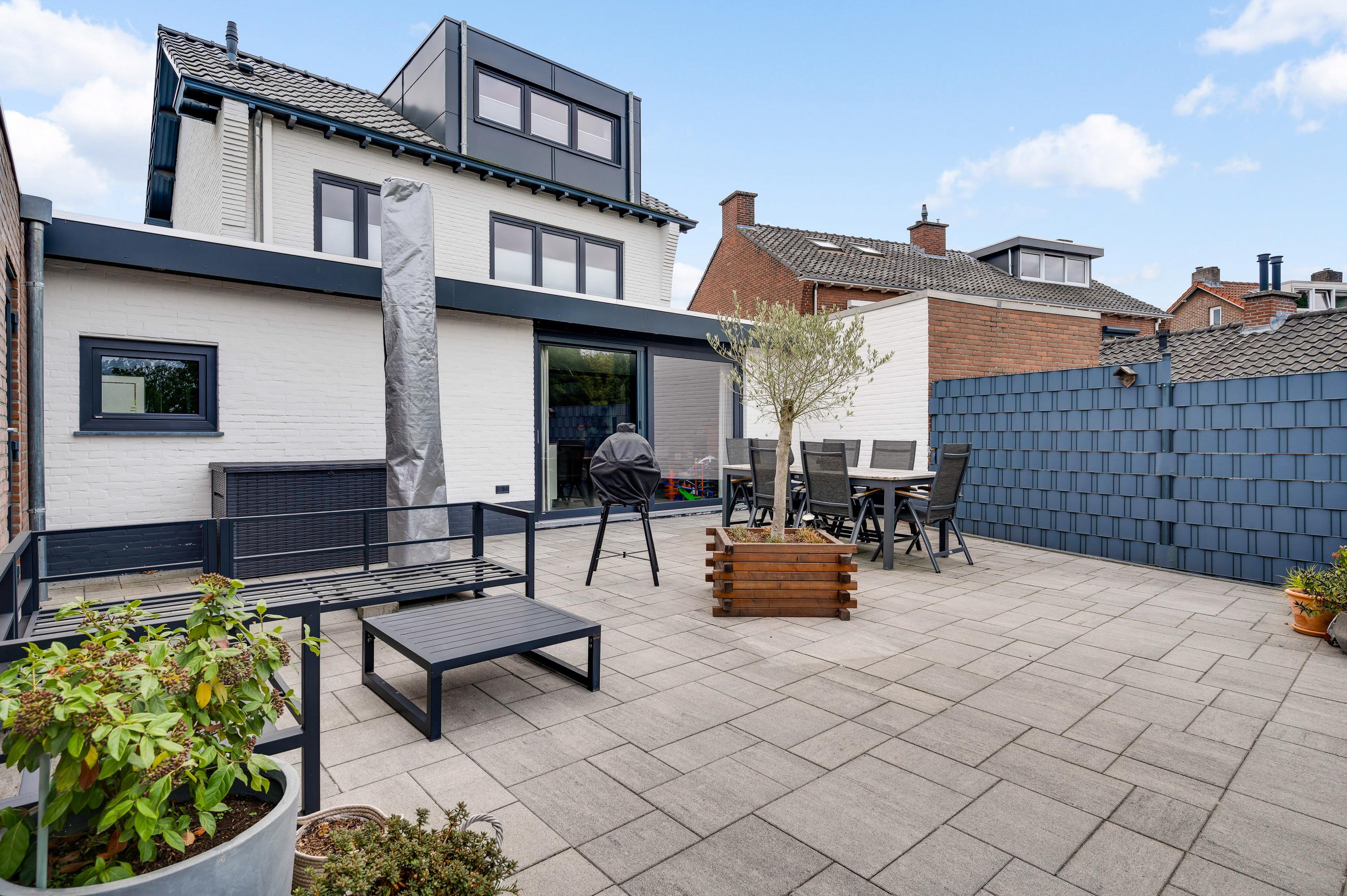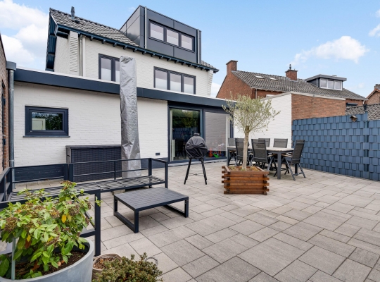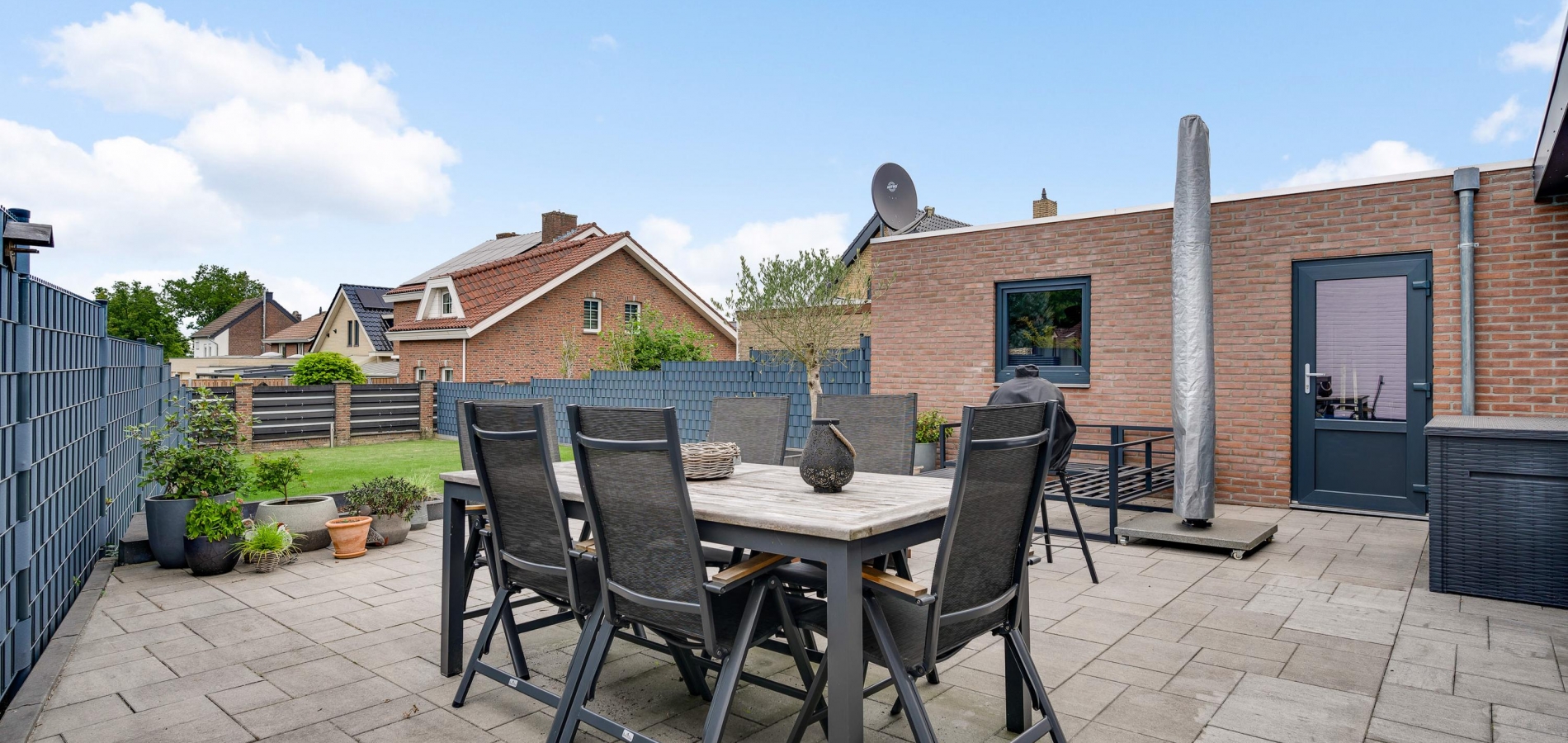Deze fantastische woning heeft niet zomaar een achtertuin, maar een hele diepe tuin met een groot terras waar genoeg plek is voor een loungeset en een tafel met stoelen. Het achterste deel van de tuin is ingericht met een gazon, en de erfafscheiding aan drie zijden zorgt voor veel privacy. Ook de voortuin is opnieuw aangelegd, met onderhoudsvriendelijke beplanting en grind.