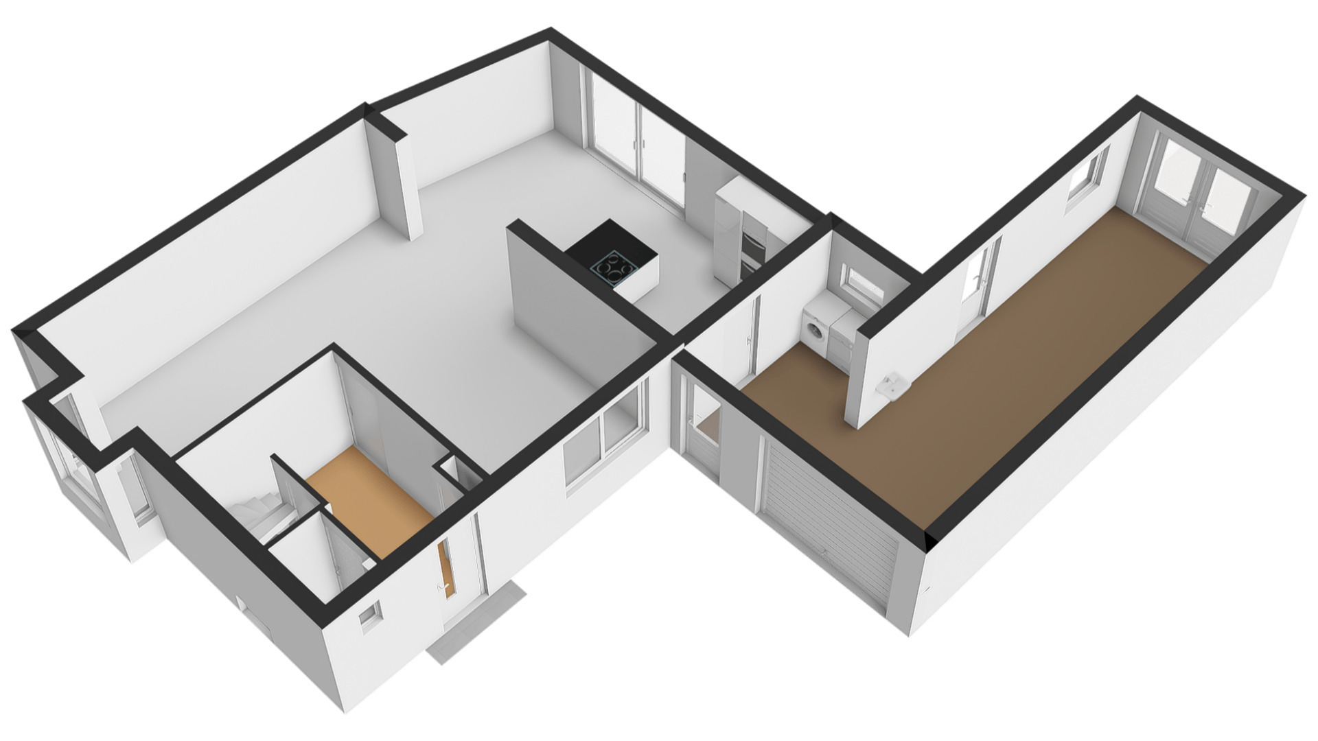 Vanuit de keuken heeft u toegang tot de bijkeuken, met de opstelling van de wasapparatuur. Aansluitend is de circa 9.50 meter lange garage, met een sectionaalpoort aan de voorzijde en dubbele deuren naar de achtertuin.