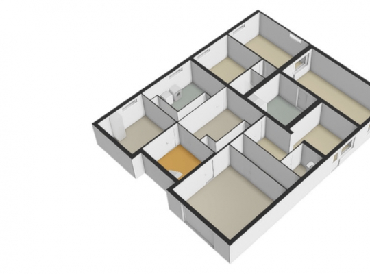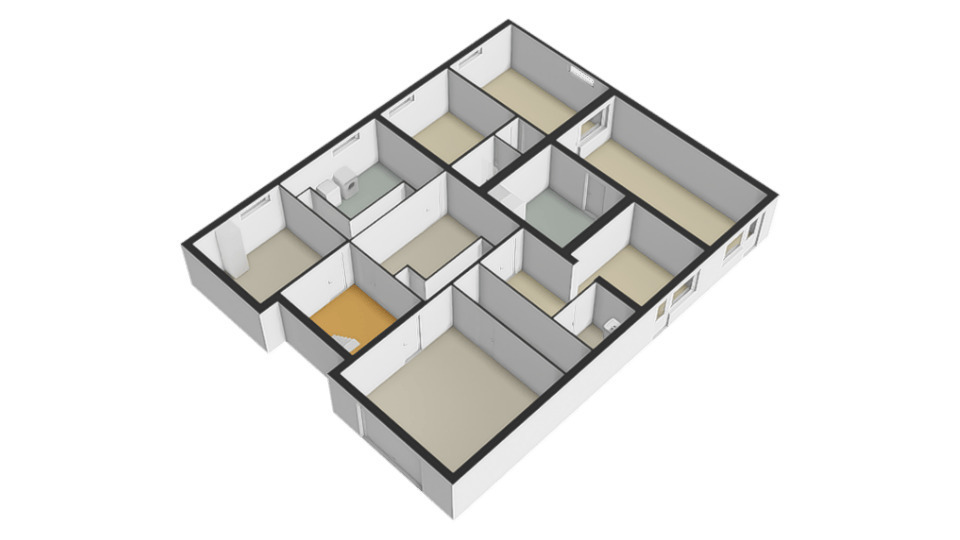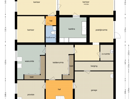 Het achterste deel van het souterrain is zeer geschikt voor een zakelijke invulling, en als gastenverblijf/inpandig appartement. De praktijkruimte (circa 16 m2) heeft een eigen entree en in de naastgelegen cv-ruimte is de opstelling van de HR-ketel (Valliant, 2023, eigendom). Verder zijn er drie kantoorruimtes, een kantine en een badkamer, klaar voor een nieuwe invulling. Kantoor I (circa 6,86 x 3,12) heeft, net als de praktijkruimte, een eigen entree. Aansluitend zijn de inpandige kantine (circa 3,35 x 3,67) en kantoor II (circa 4,93 x 3,30) met prachtig uitzicht aan twee zijden. Kantoor III (circa 3,42 x 3,32) bevindt zich naast de badkamer die is ingedeeld met een douche, toilet en een wastafel.