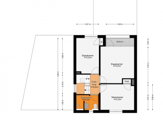 Vanaf de overloop zijn drie ruime slaapkamers en de badkamer te bereiken. Aan de voorzijde is slaapkamer I (circa 3,67 x 2,81), in gebruik als sportkamer. Slaapkamer II (circa 4,03 x 3,67 inclusief inbouwkast van kamer I) met loggia, hordeur en airco is, net als slaapkamer III (circa 3,90 x 2,47) aan de achterzijde van deze ruime woning.